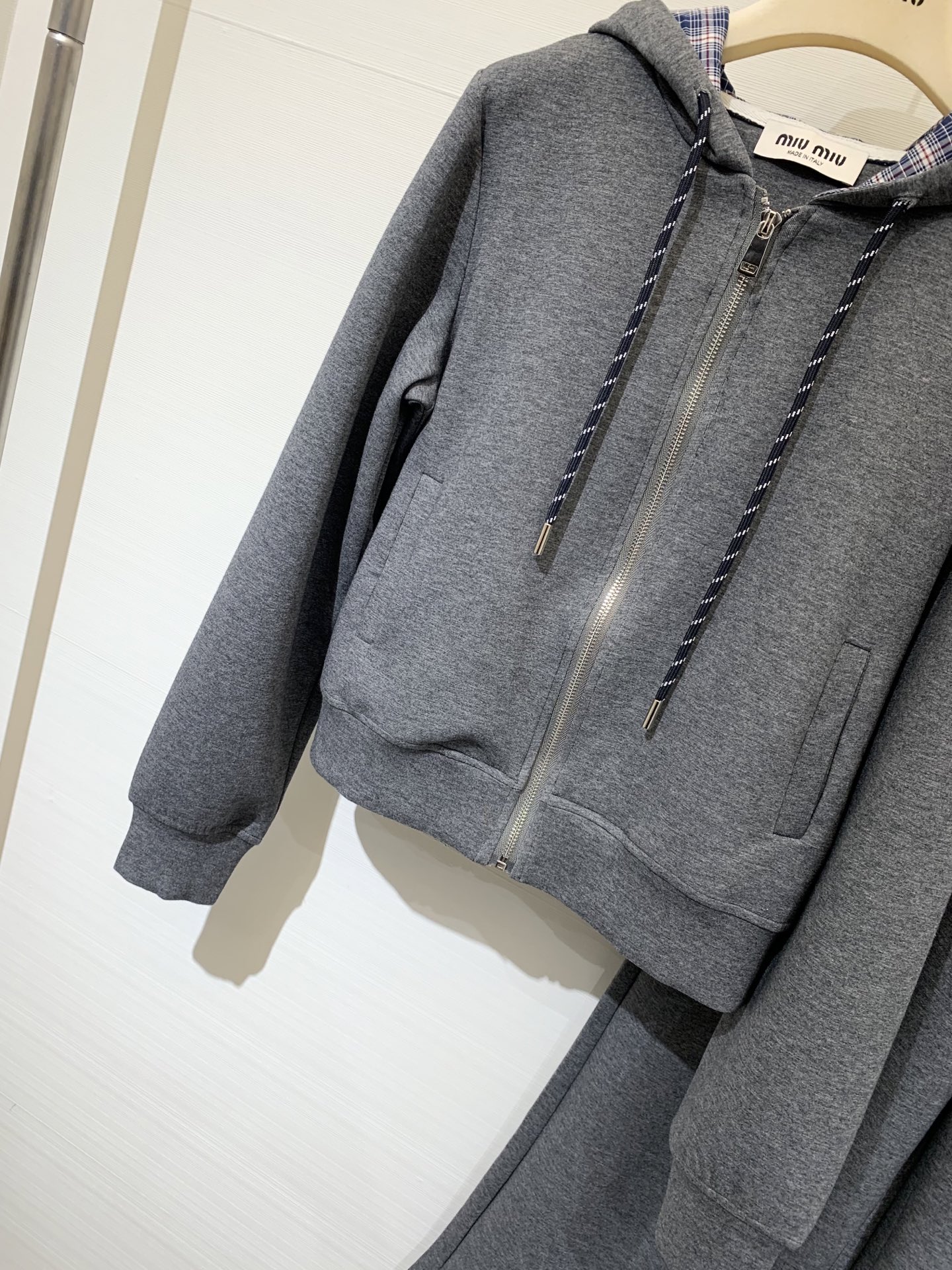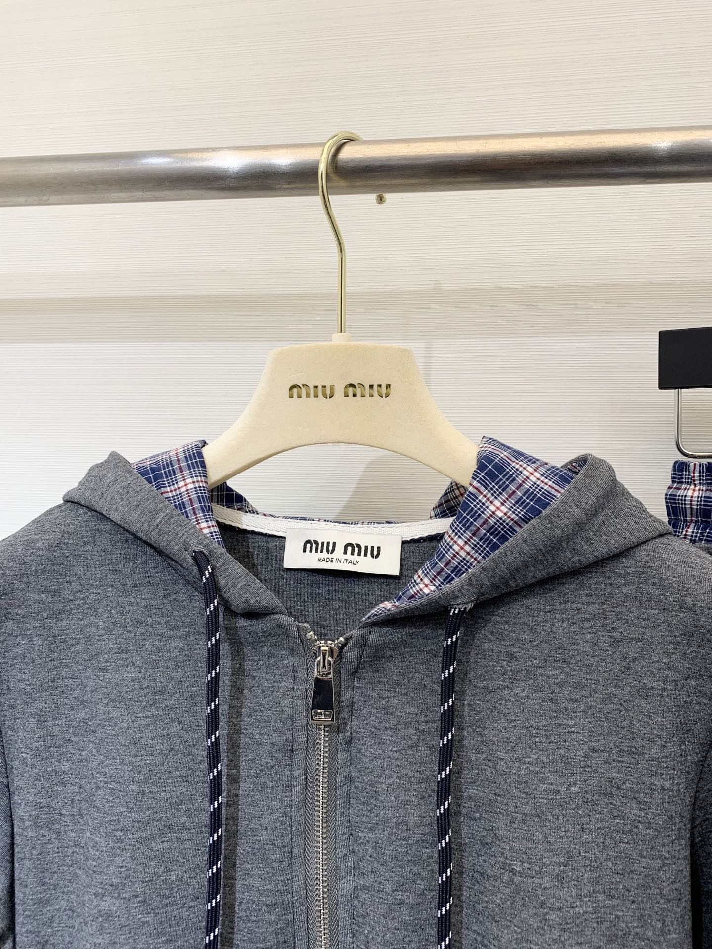 这款衣服是AAAAA 1:1 质量 (非常棒). 使用了和原版一模一样的材料. 商标部分也保持了和缪缪/Miu Miu一样. 图片拍摄是实物衣服拍摄, 您所收到的实物保证和我们图片一模一样.