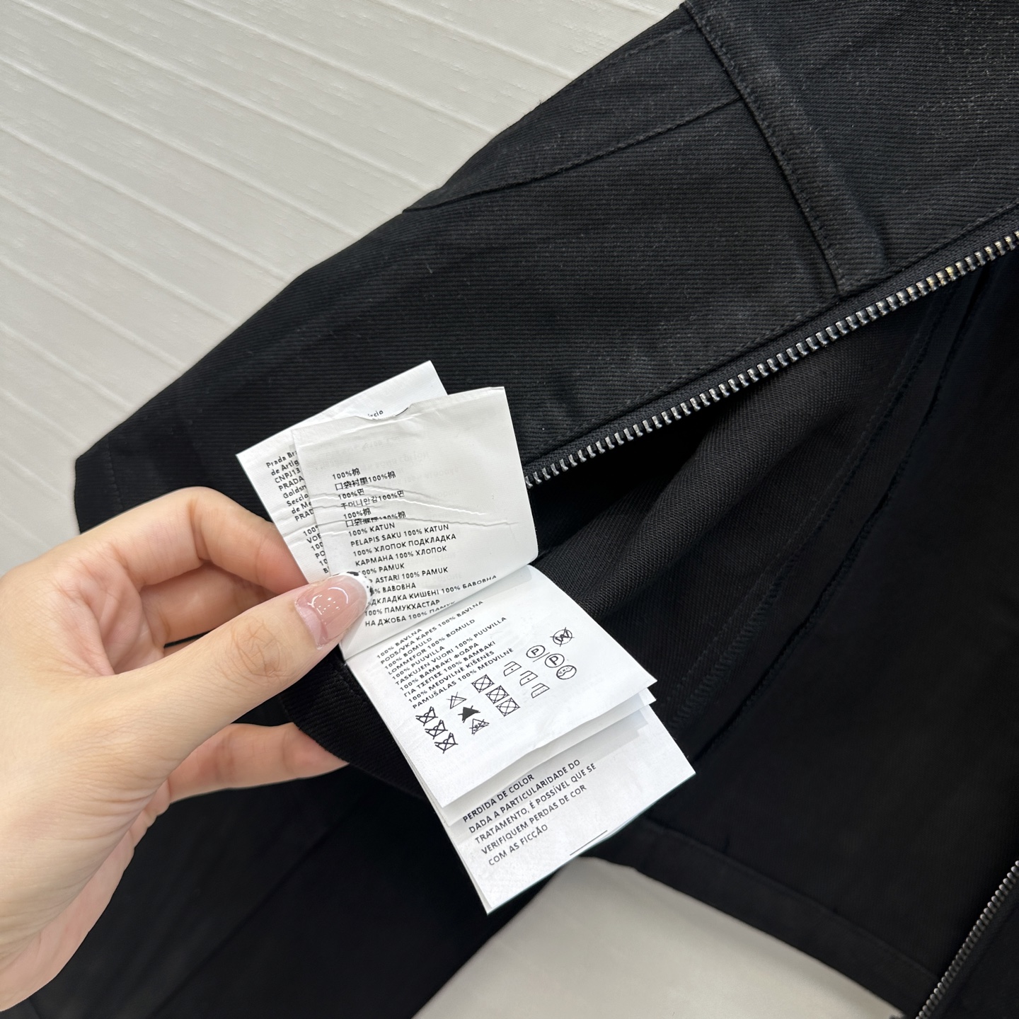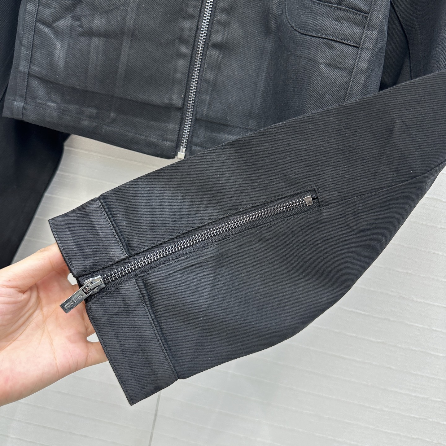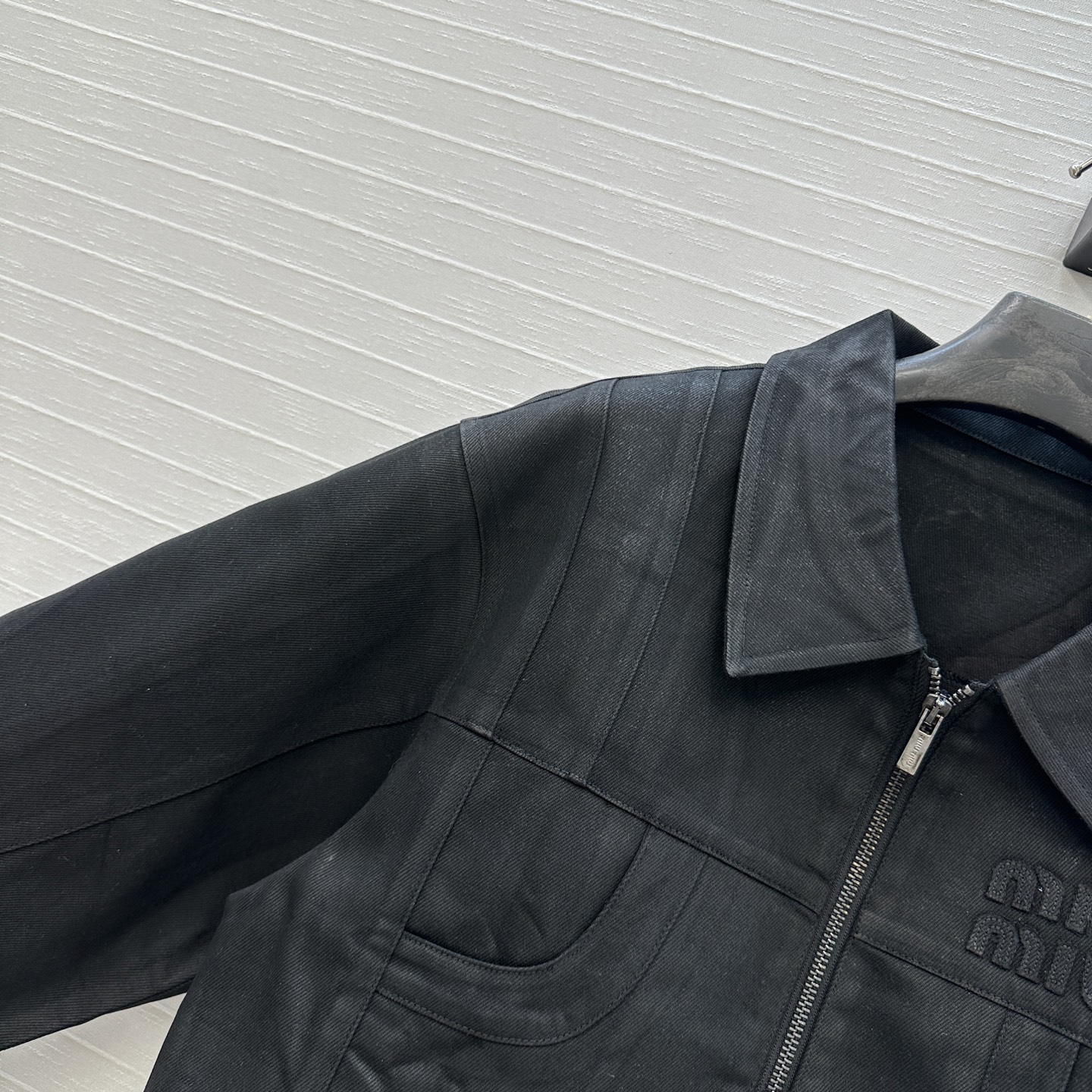 这款衣服是AAAAA 1:1 质量 (非常棒). 使用了和原版一模一样的材料. 商标部分也保持了和缪缪/Miu Miu一样. 图片拍摄是实物衣服拍摄, 您所收到的实物保证和我们图片一模一样.