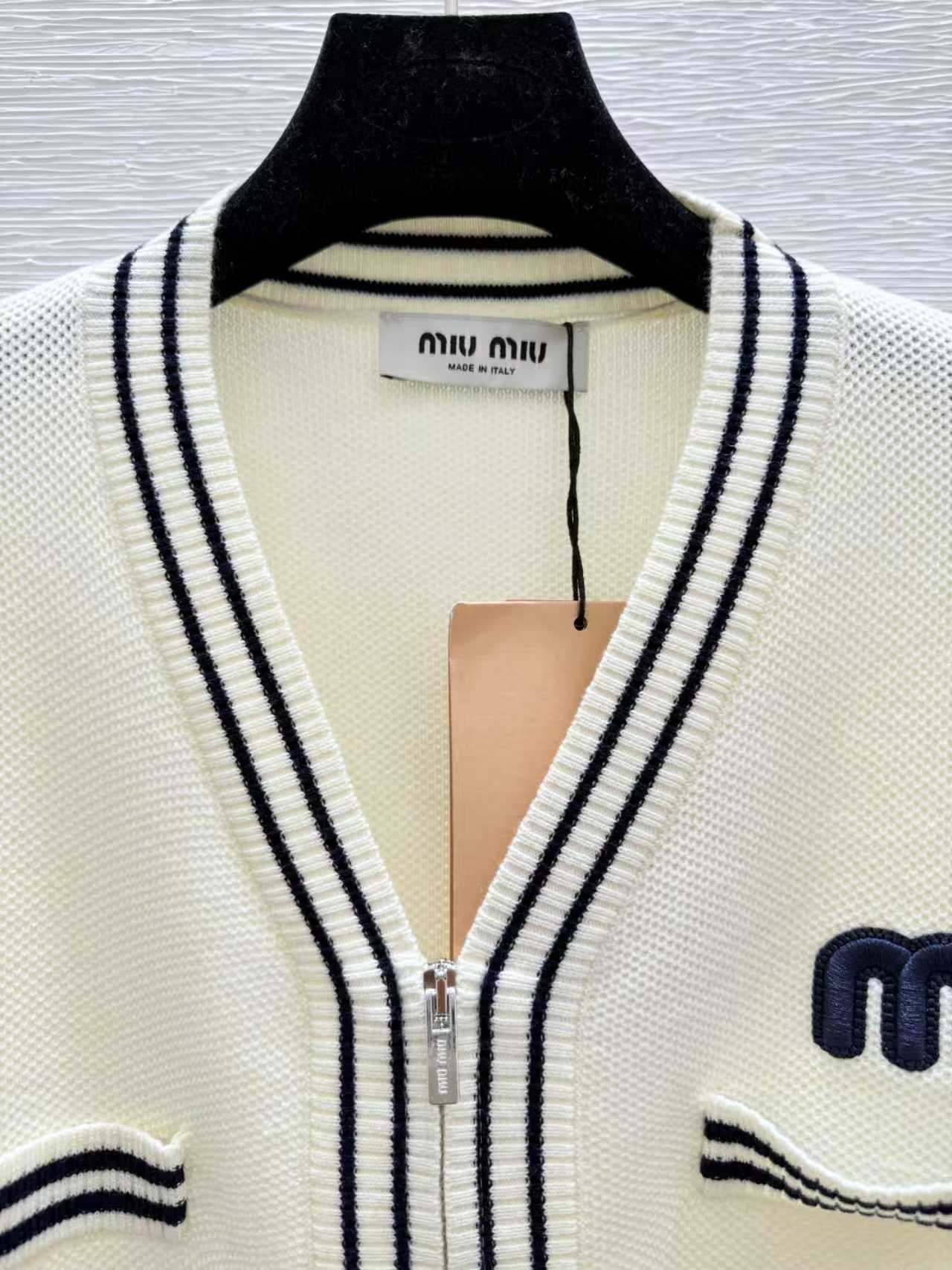 这款衣服是AAAAA 1:1 质量 (非常棒). 使用了和原版一模一样的材料. 商标部分也保持了和缪缪/Miu Miu一样. 图片拍摄是实物衣服拍摄, 您所收到的实物保证和我们图片一模一样.