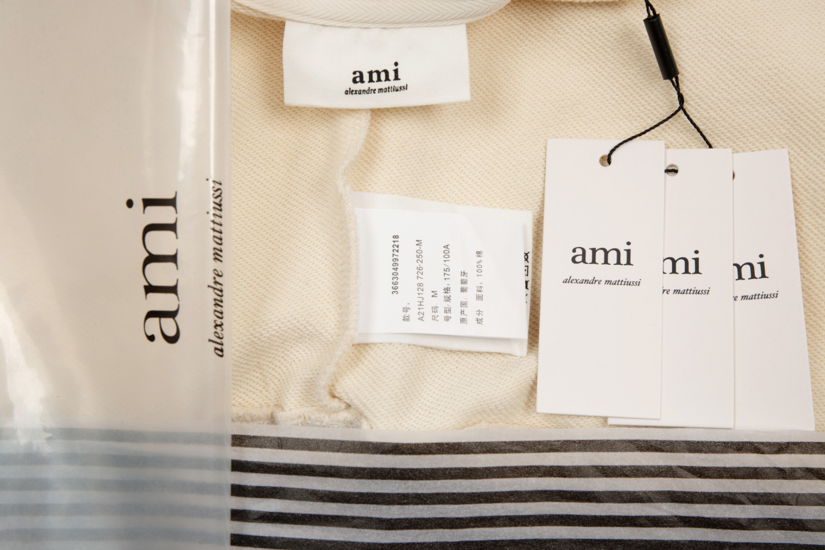 这款衣服是AAAAA 1:1 质量 (非常棒). 使用了和原版一模一样的材料. 商标部分也保持了和Ami一样. 图片拍摄是实物衣服拍摄, 您所收到的实物保证和我们图片一模一样.
