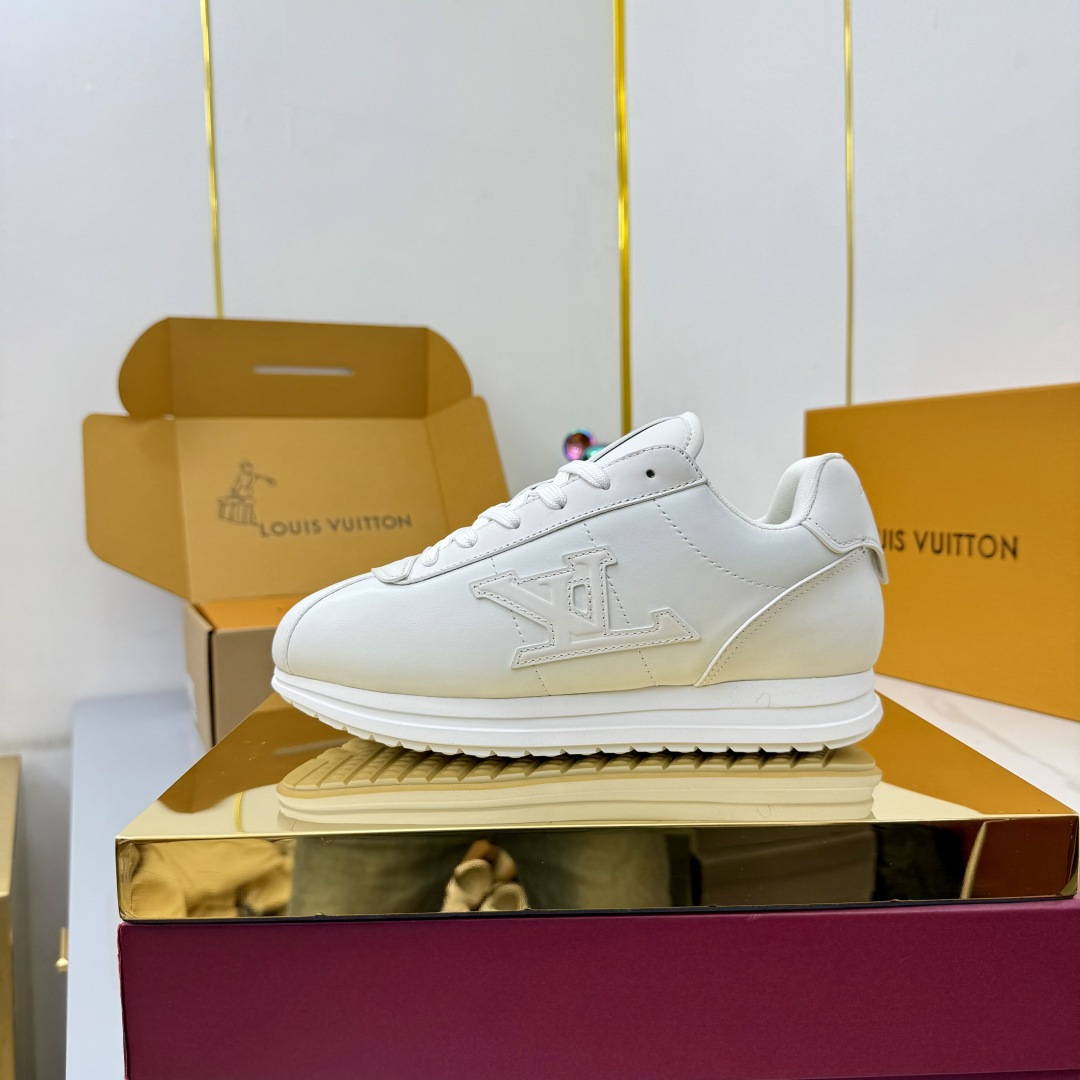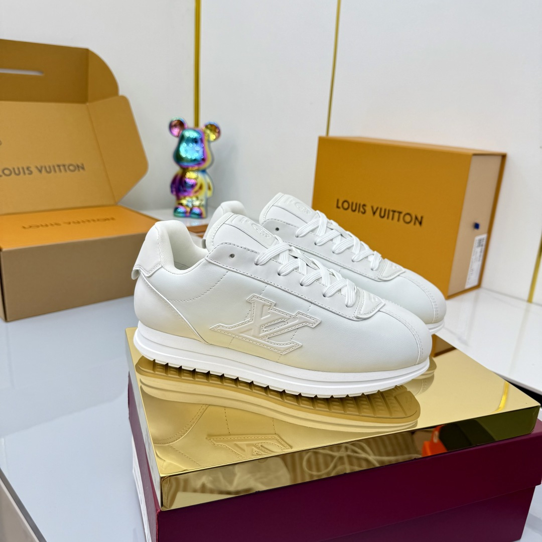 这款鞋子是AAAAA 1:1 质量 (非常棒). 使用了和原版一模一样的材料. 商标部分也保持了和路易威登/Louis Vuitton一样. 图片拍摄是实物鞋子拍摄, 您所收到的实物保证和我们图片一模一样.