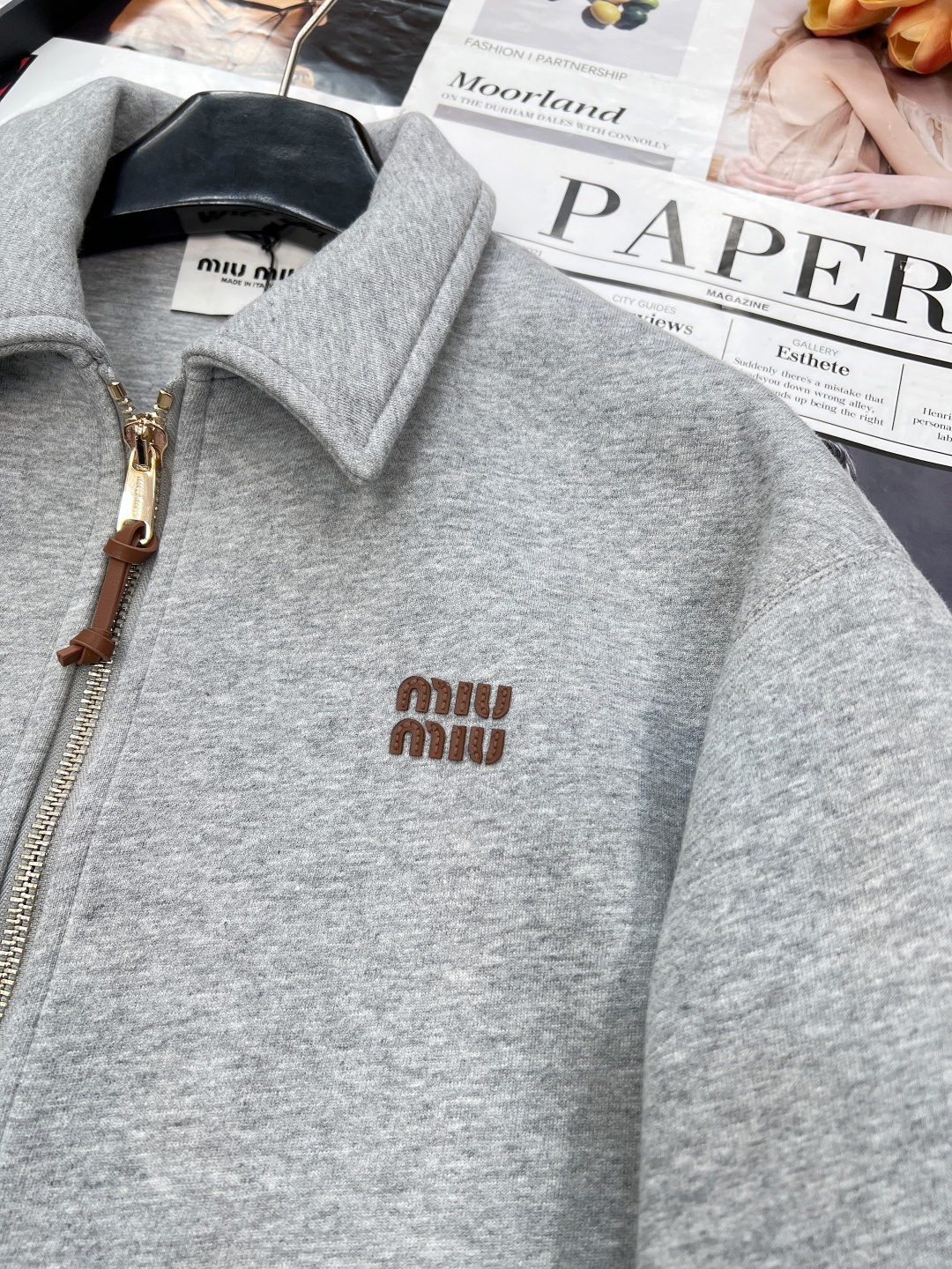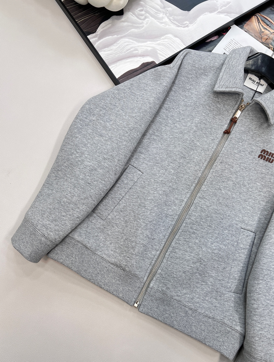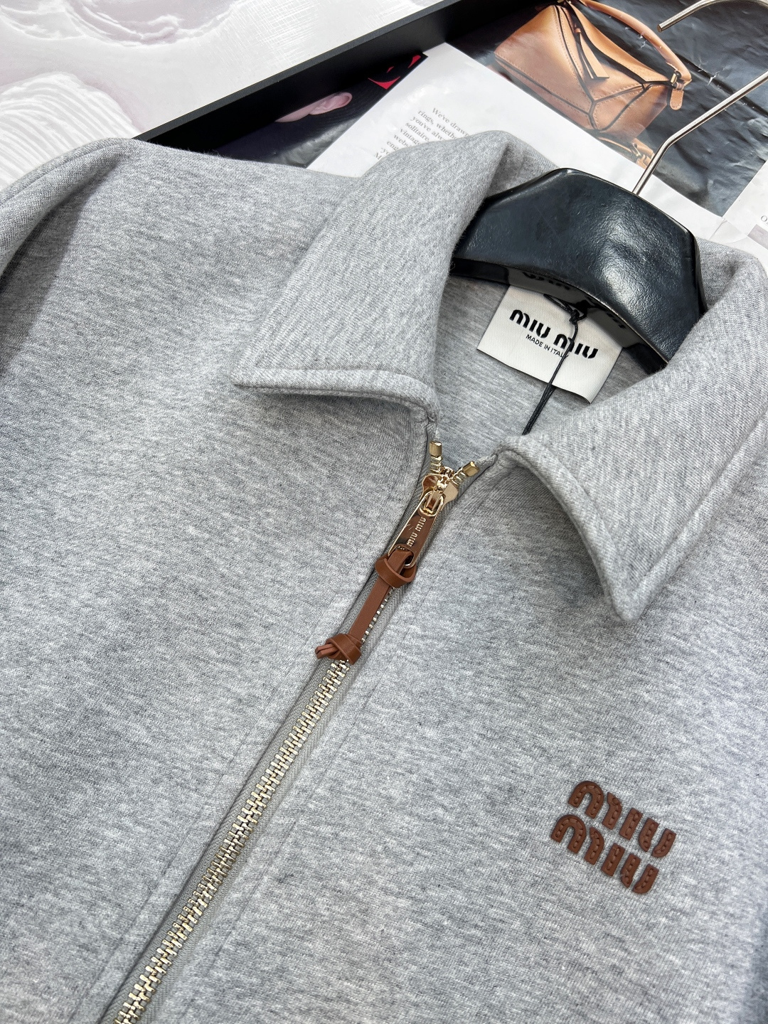 这款衣服是AAAAA 1:1 质量 (非常棒). 使用了和原版一模一样的材料. 商标部分也保持了和缪缪/Miu Miu一样. 图片拍摄是实物衣服拍摄, 您所收到的实物保证和我们图片一模一样.