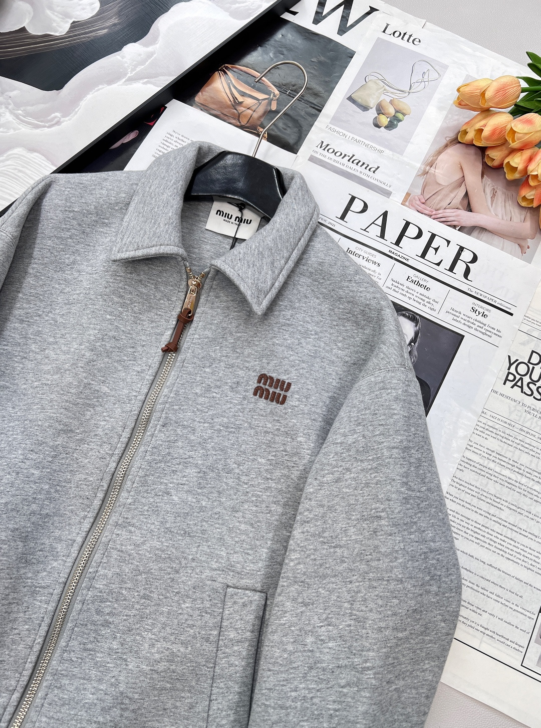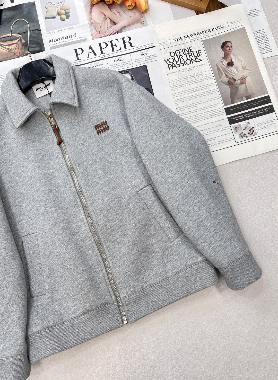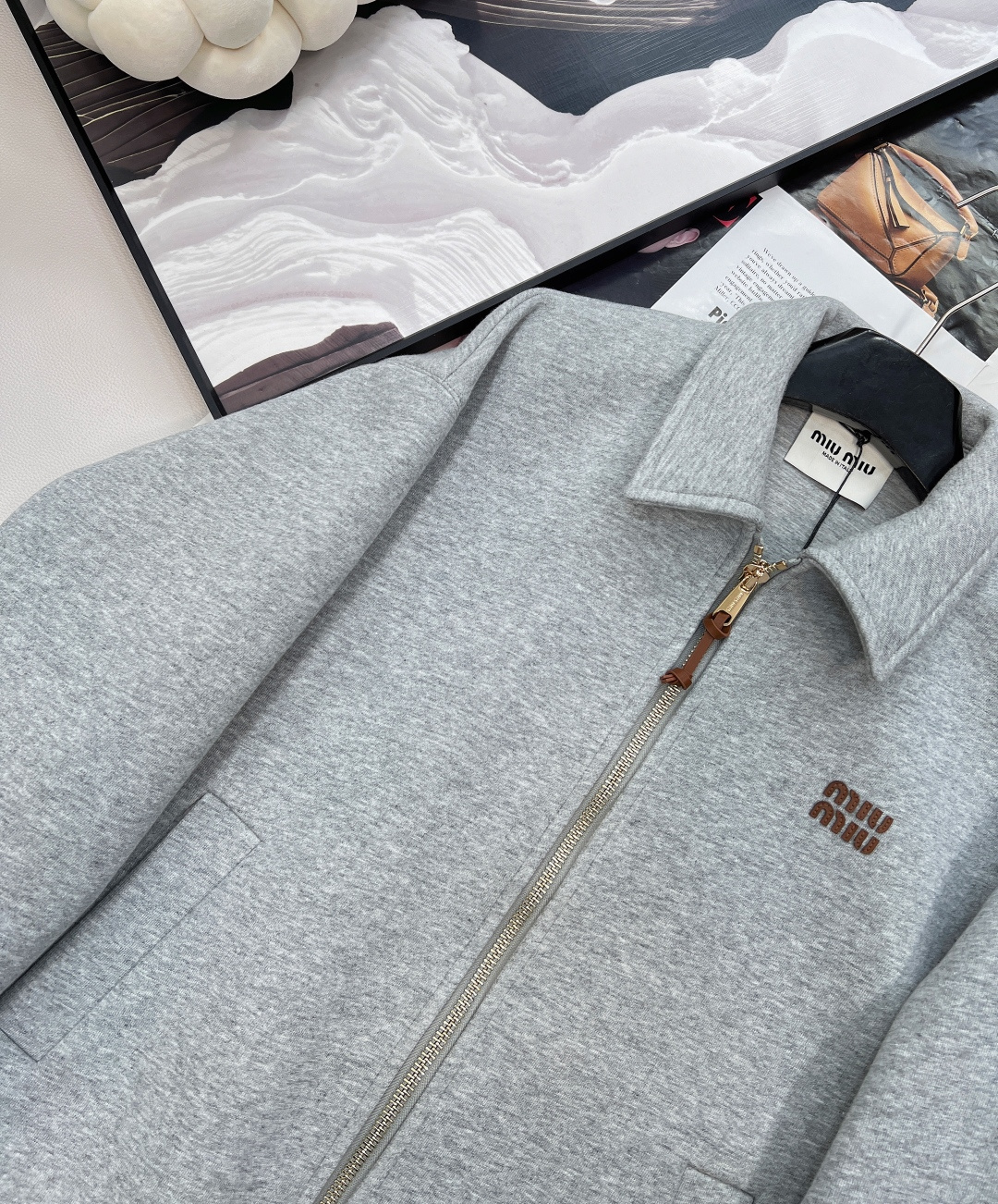 这款衣服是AAAAA 1:1 质量 (非常棒). 使用了和原版一模一样的材料. 商标部分也保持了和缪缪/Miu Miu一样. 图片拍摄是实物衣服拍摄, 您所收到的实物保证和我们图片一模一样.