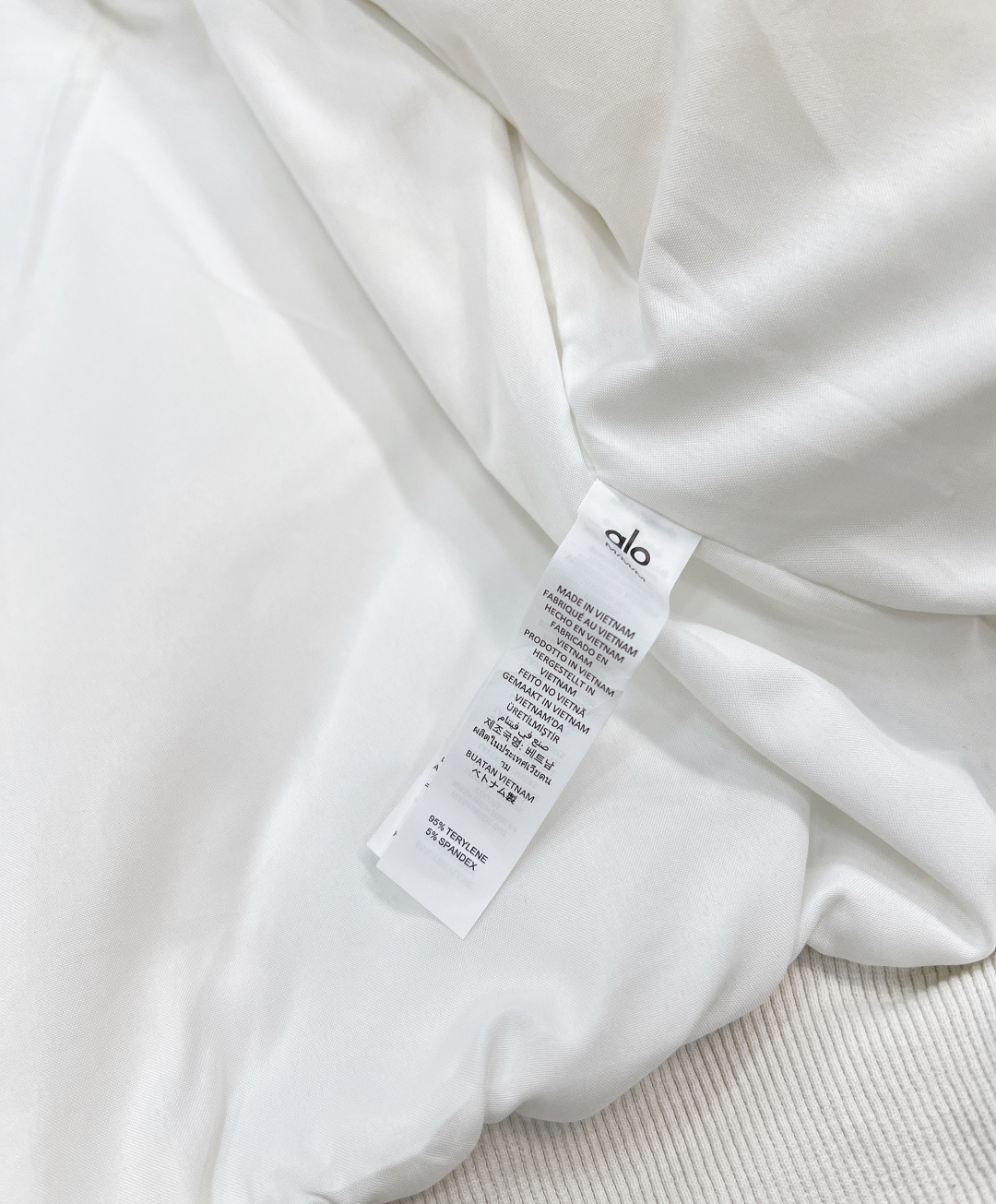 这款衣服是AAAAA 1:1 质量 (非常棒). 使用了和原版一模一样的材料. 商标部分也保持了和Alo Yoga一样. 图片拍摄是实物衣服拍摄, 您所收到的实物保证和我们图片一模一样.