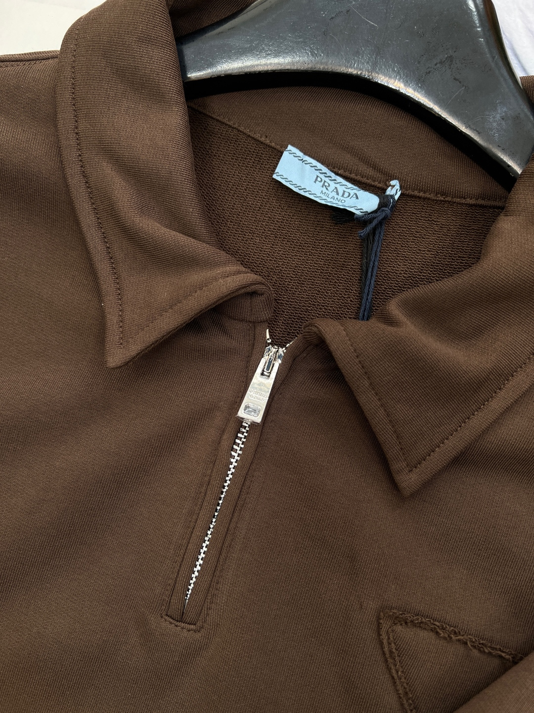 这款衣服是AAAAA 1:1 质量 (非常棒). 使用了和原版一模一样的材料. 商标部分也保持了和普拉达/Prada一样. 图片拍摄是实物衣服拍摄, 您所收到的实物保证和我们图片一模一样.