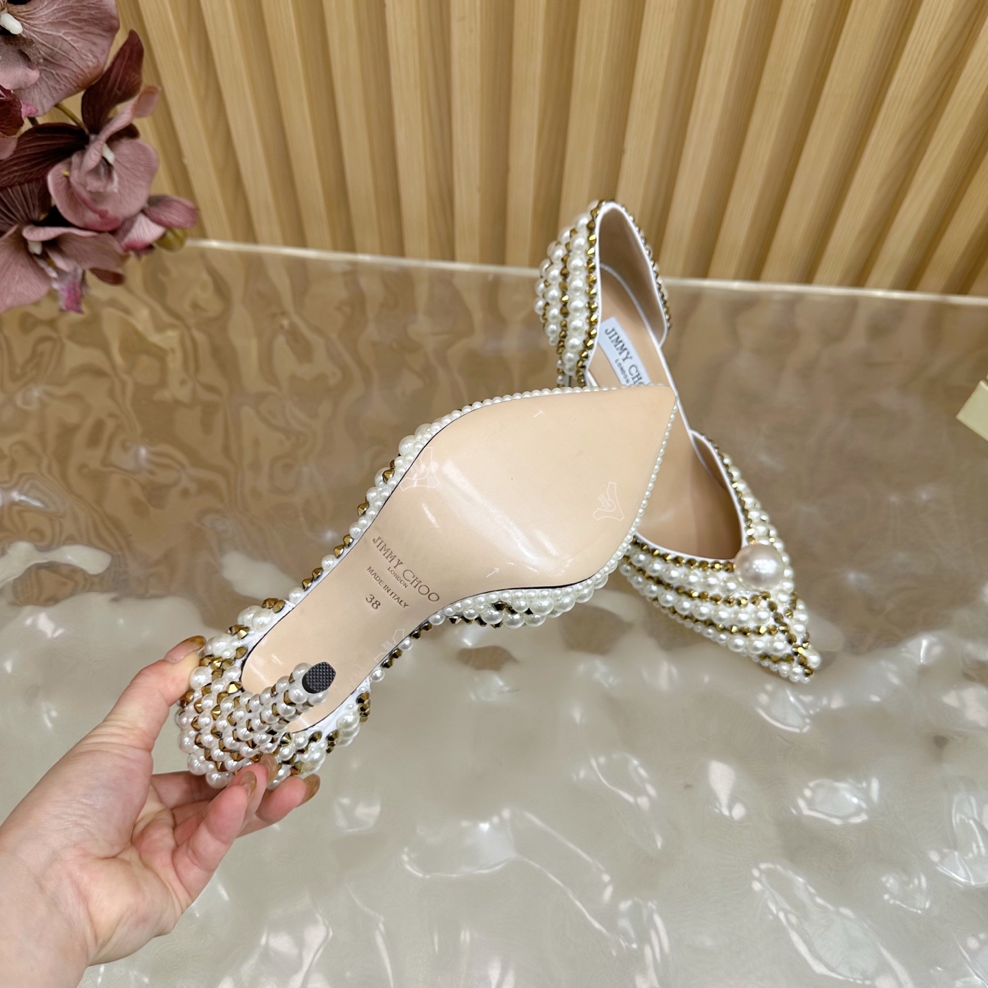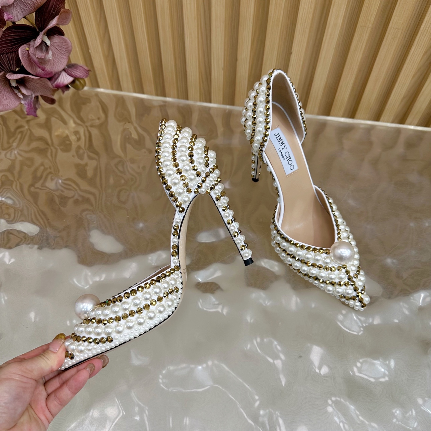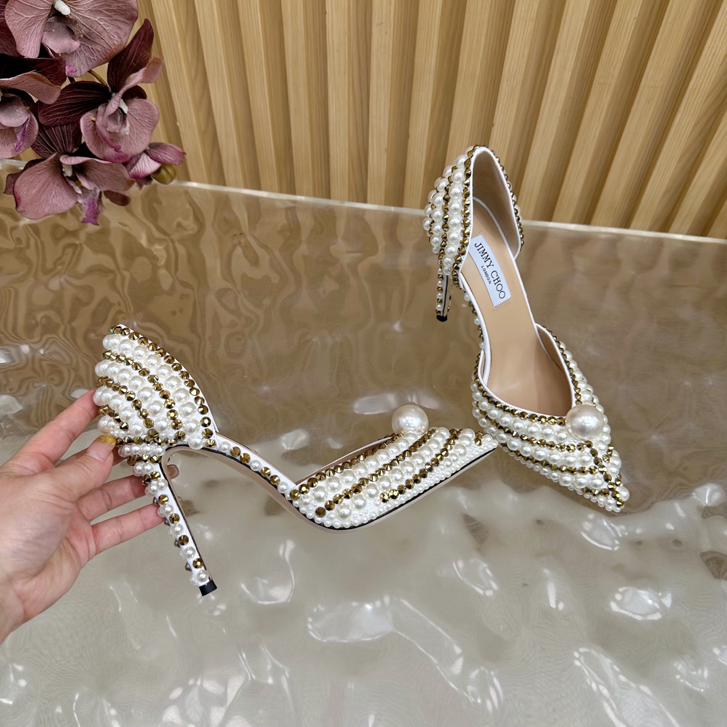 这款鞋子是AAAAA 1:1 质量 (非常棒). 使用了和原版一模一样的材料. 商标部分也保持了和吉米乔/JIMMY CHOO一样. 图片拍摄是实物鞋子拍摄, 您所收到的实物保证和我们图片一模一样.