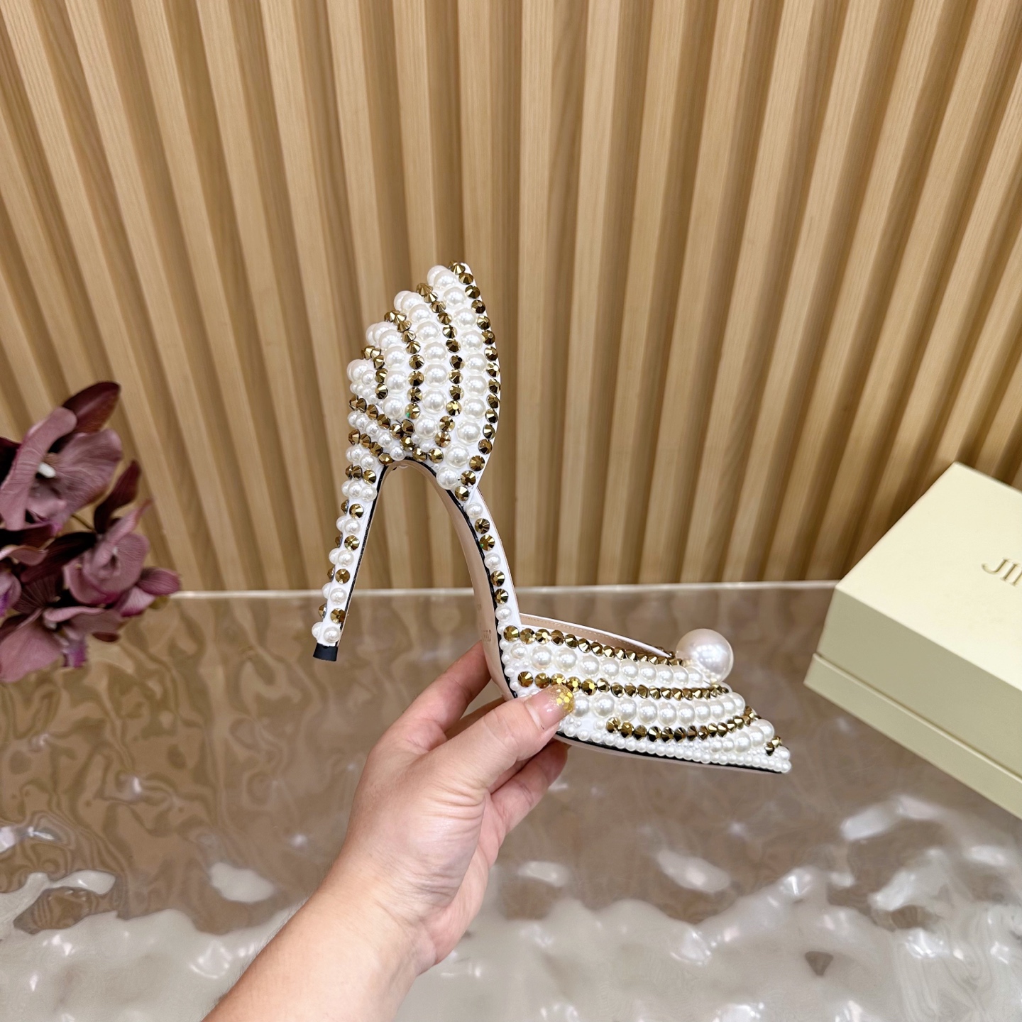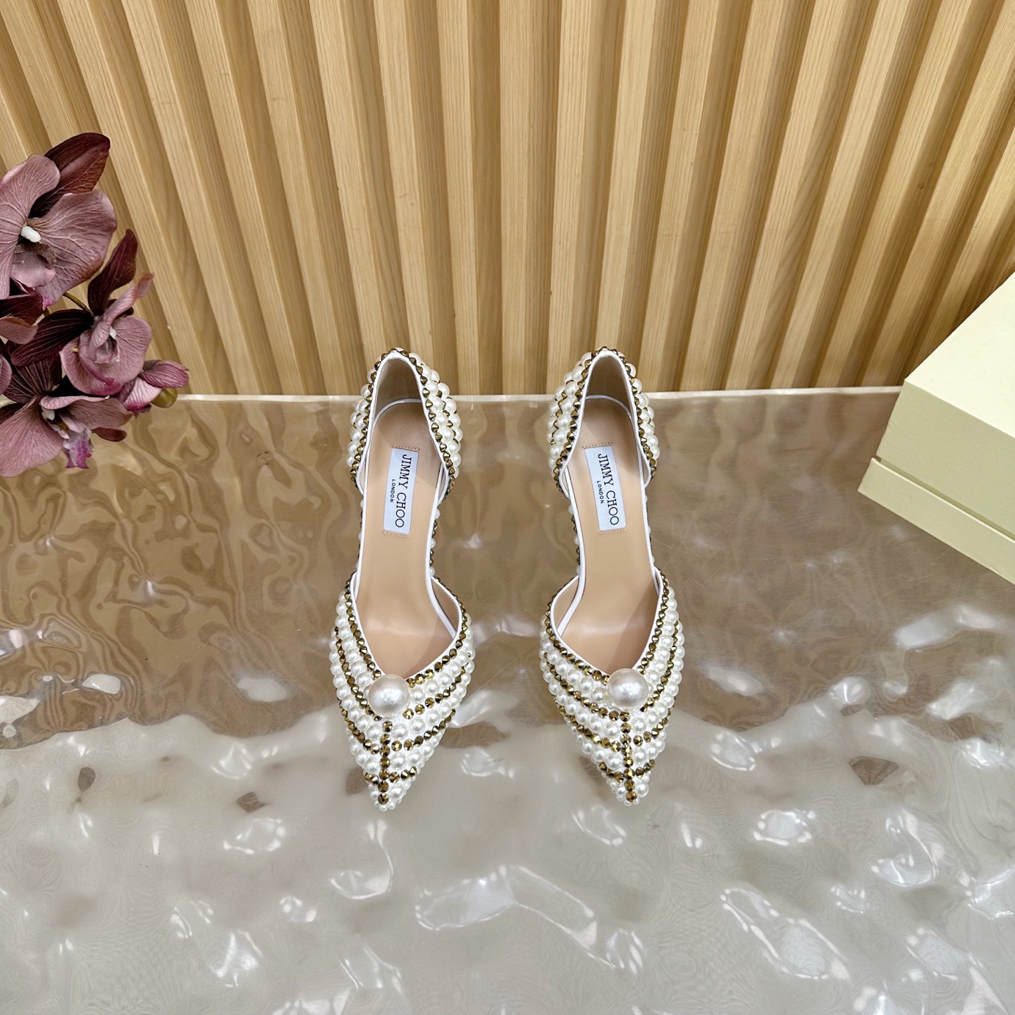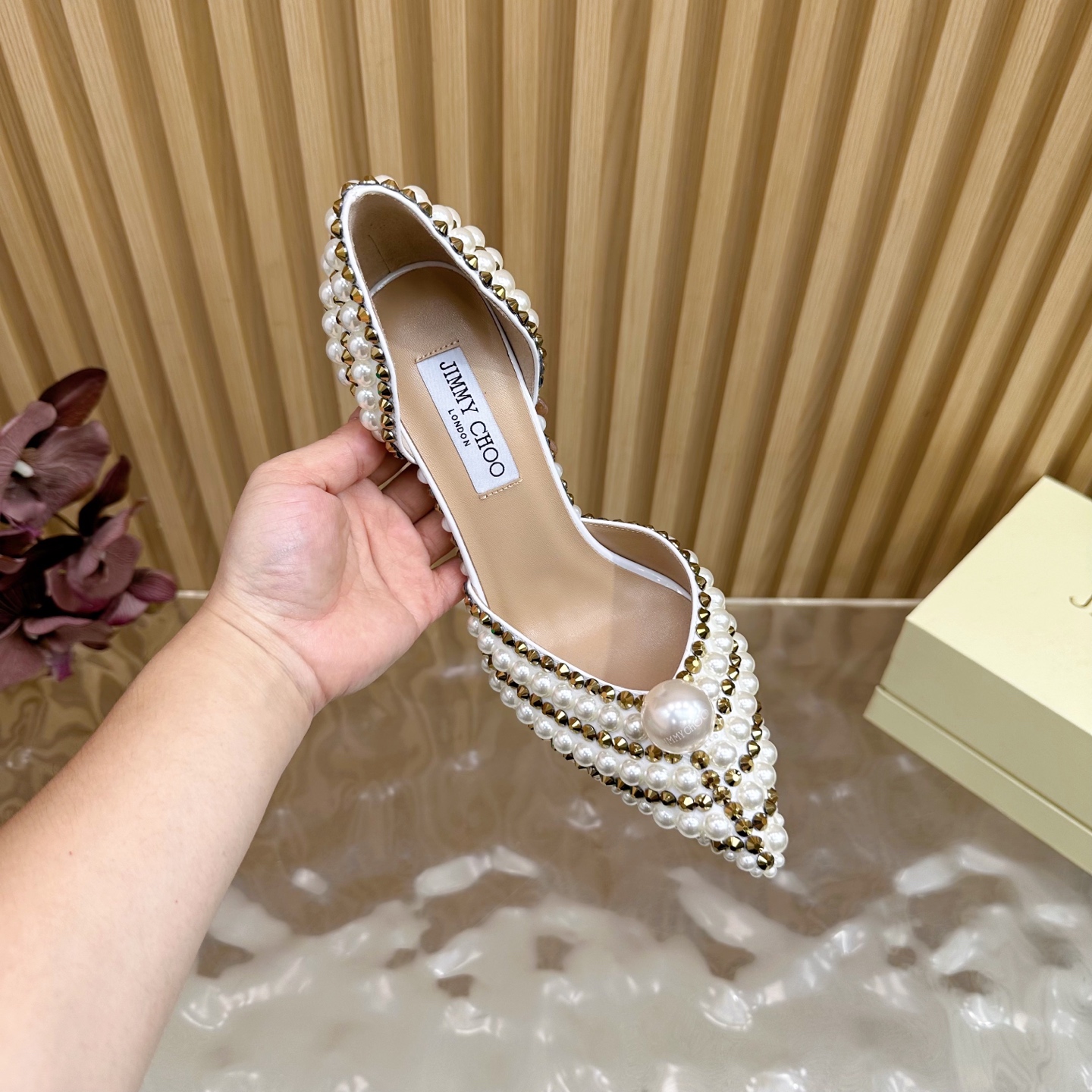 这款鞋子是AAAAA 1:1 质量 (非常棒). 使用了和原版一模一样的材料. 商标部分也保持了和吉米乔/JIMMY CHOO一样. 图片拍摄是实物鞋子拍摄, 您所收到的实物保证和我们图片一模一样.
