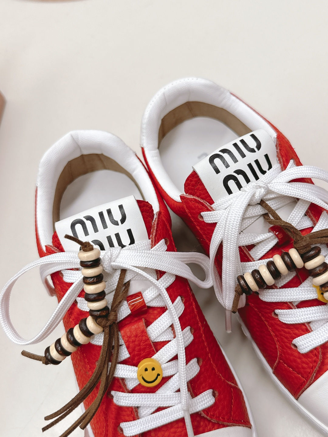 这款鞋子是AAAAA 1:1 质量 (非常棒). 使用了和原版一模一样的材料. 商标部分也保持了和缪缪/Miu Miu一样. 图片拍摄是实物鞋子拍摄, 您所收到的实物保证和我们图片一模一样.