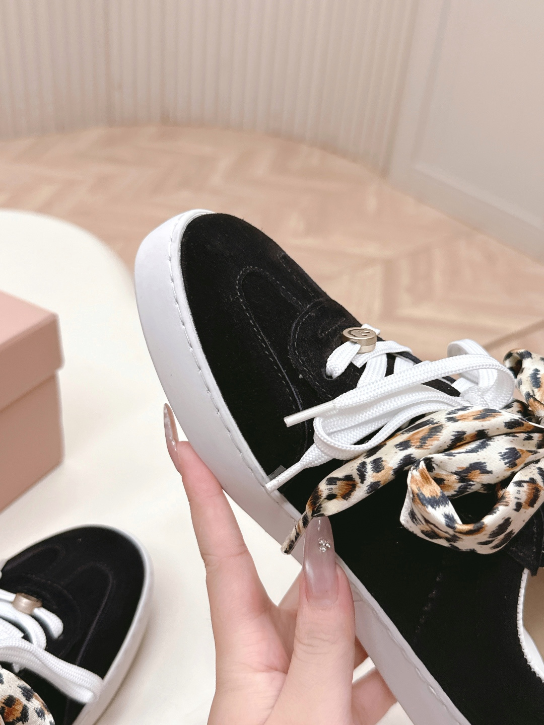 这款鞋子是AAAAA 1:1 质量 (非常棒). 使用了和原版一模一样的材料. 商标部分也保持了和缪缪/Miu Miu一样. 图片拍摄是实物鞋子拍摄, 您所收到的实物保证和我们图片一模一样.