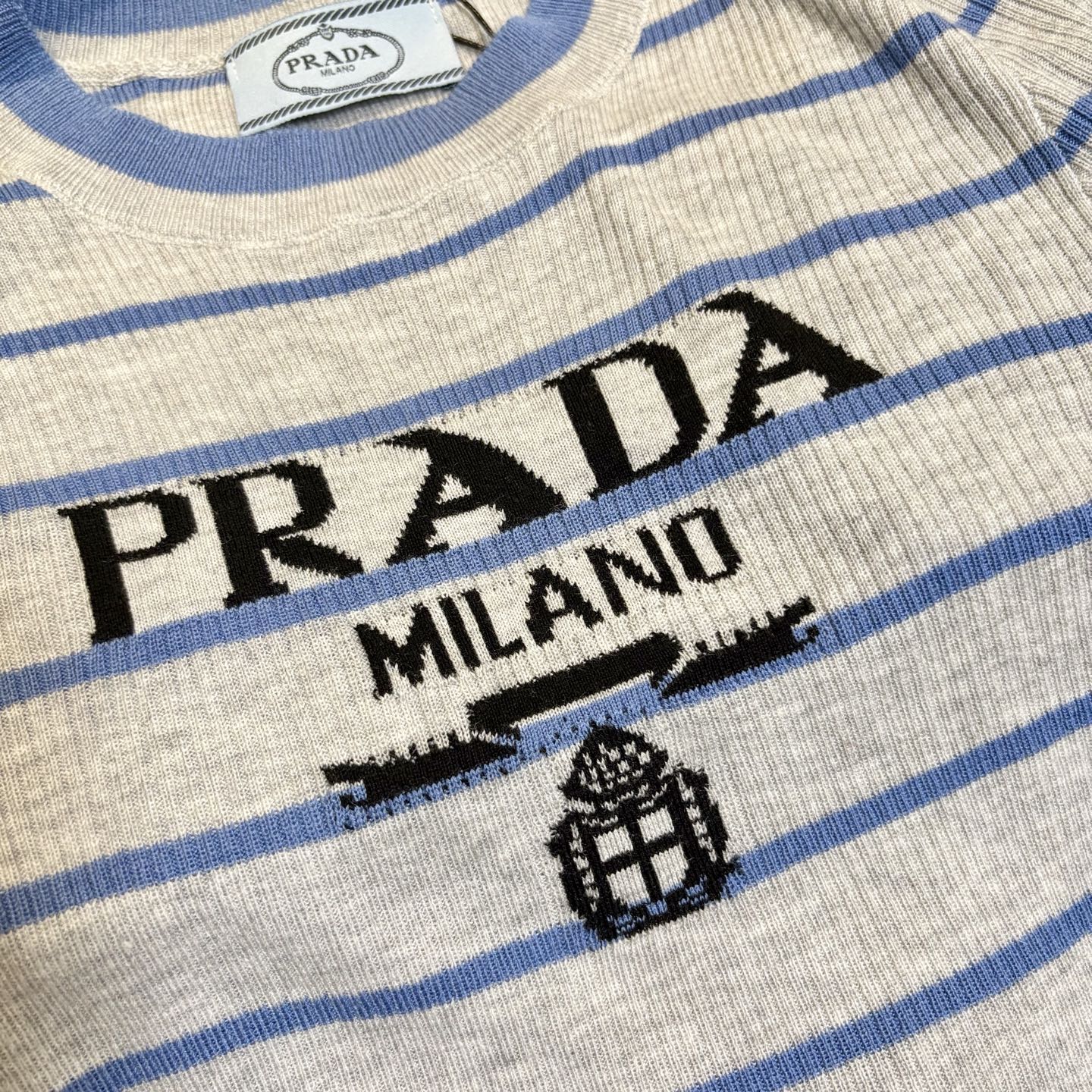 这款衣服是AAAAA 1:1 质量 (非常棒). 使用了和原版一模一样的材料. 商标部分也保持了和普拉达/Prada一样. 图片拍摄是实物衣服拍摄, 您所收到的实物保证和我们图片一模一样.