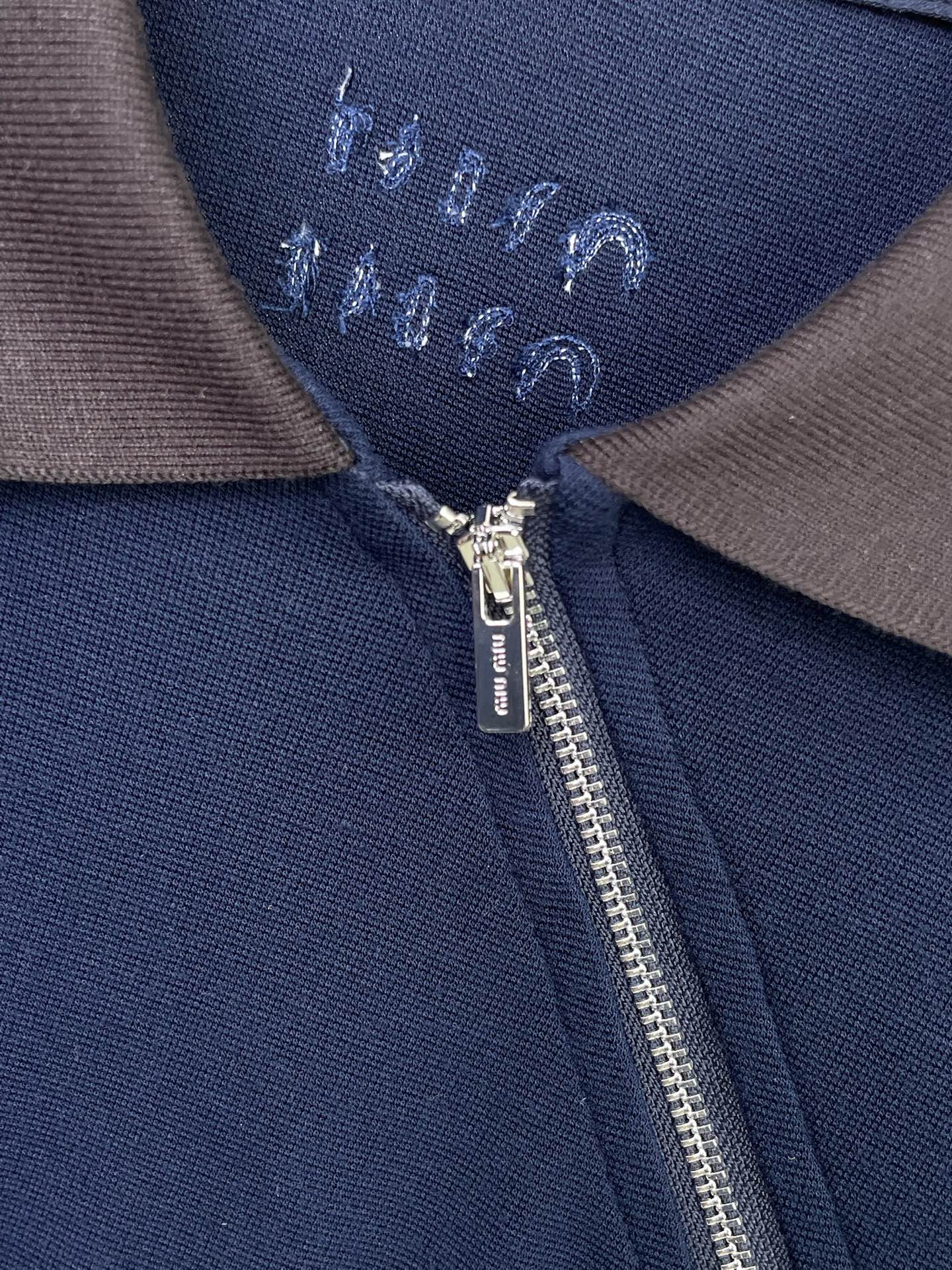这款衣服是AAAAA 1:1 质量 (非常棒). 使用了和原版一模一样的材料. 商标部分也保持了和缪缪/Miu Miu一样. 图片拍摄是实物衣服拍摄, 您所收到的实物保证和我们图片一模一样.
