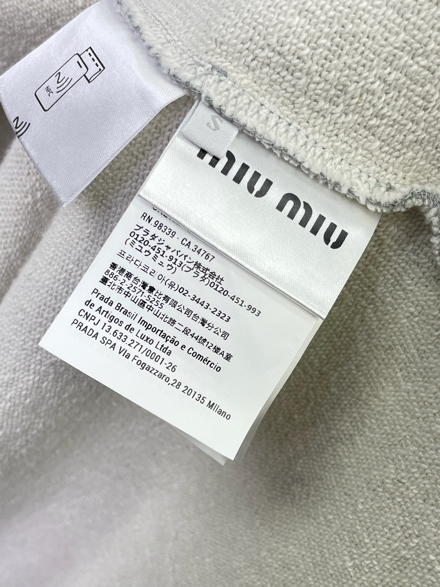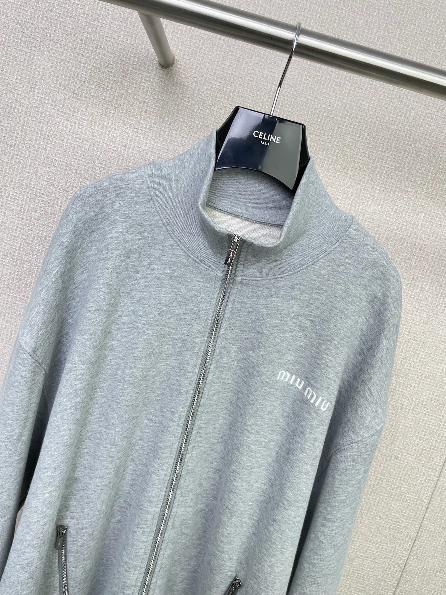 这款衣服是AAAAA 1:1 质量 (非常棒). 使用了和原版一模一样的材料. 商标部分也保持了和缪缪/Miu Miu一样. 图片拍摄是实物衣服拍摄, 您所收到的实物保证和我们图片一模一样.