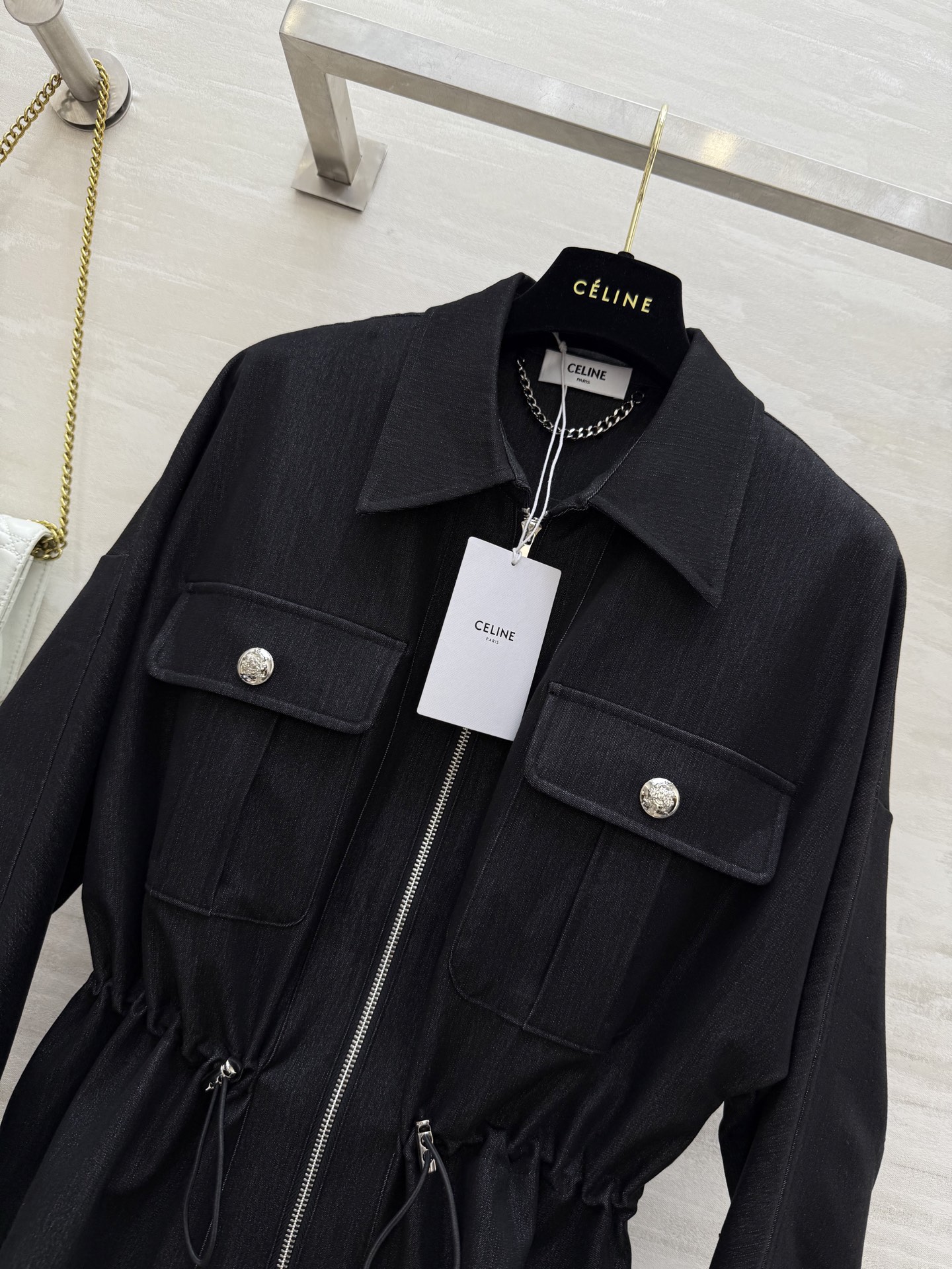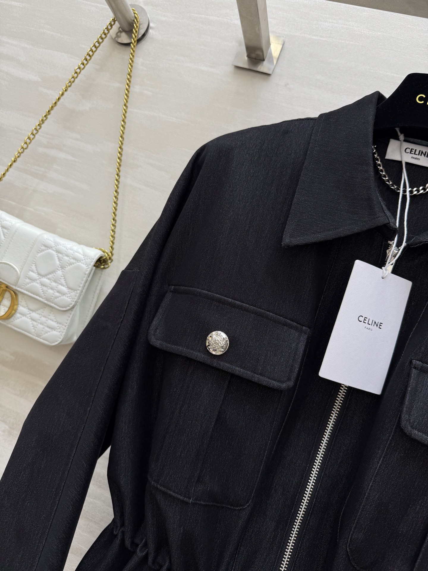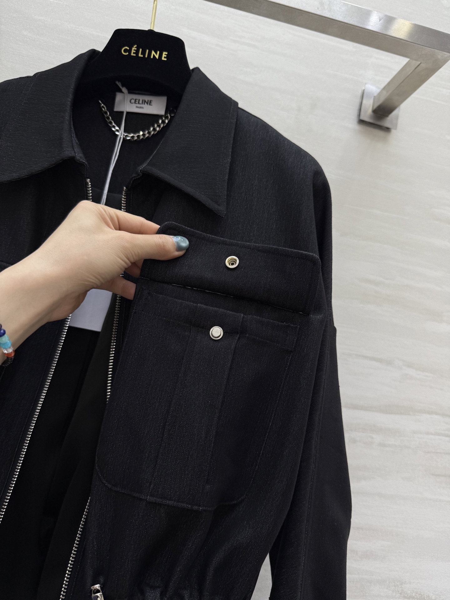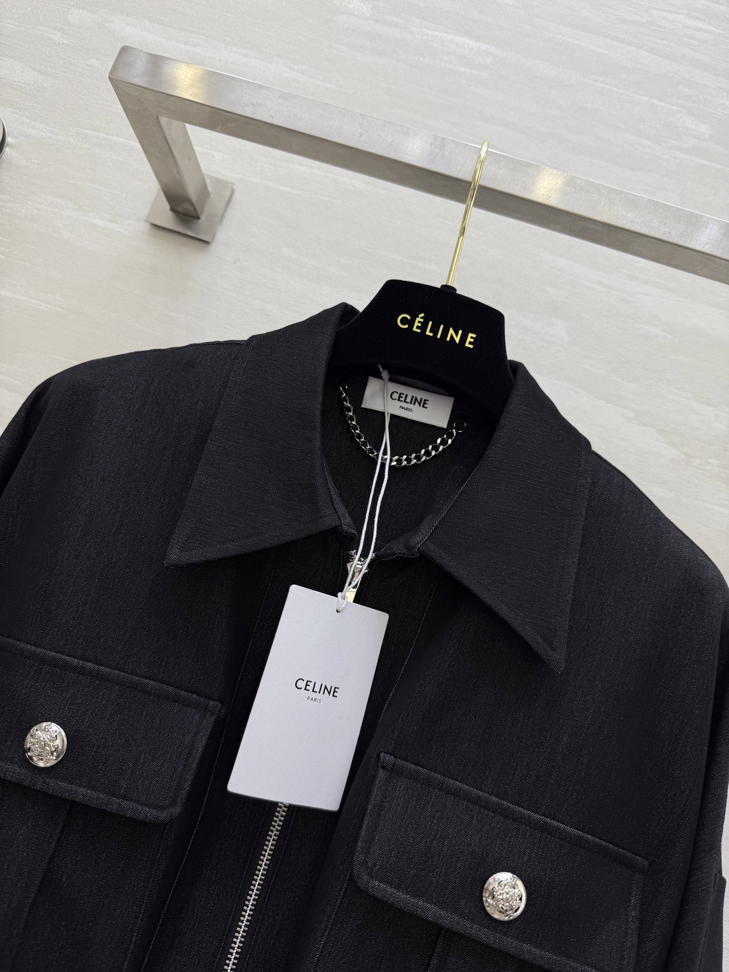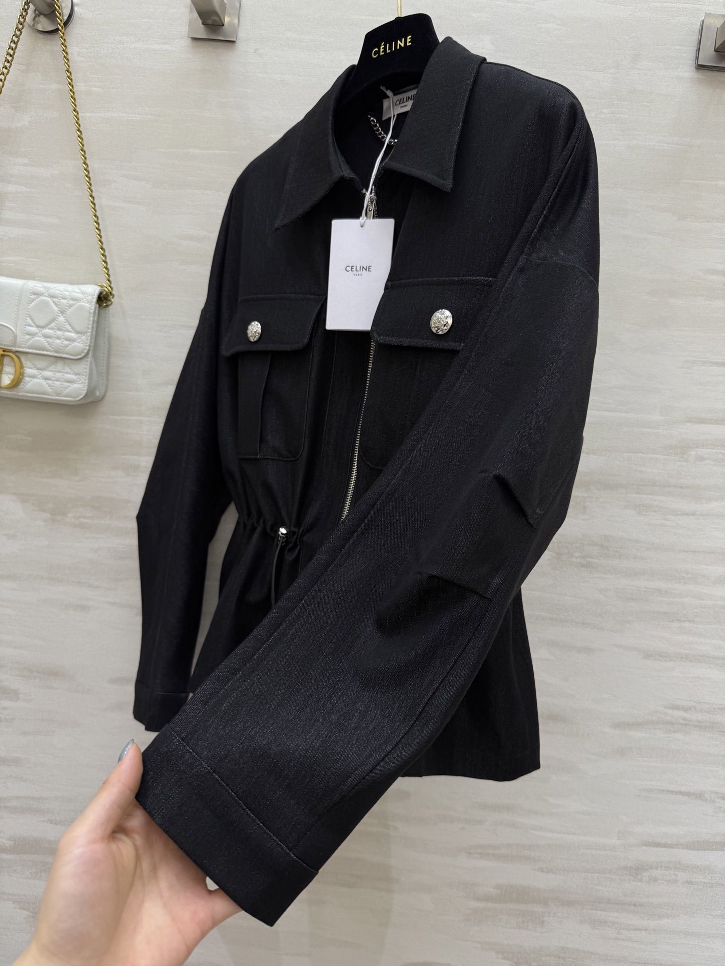 这款衣服是AAAAA 1:1 质量 (非常棒). 使用了和原版一模一样的材料. 商标部分也保持了和思琳/Celine一样. 图片拍摄是实物衣服拍摄, 您所收到的实物保证和我们图片一模一样.