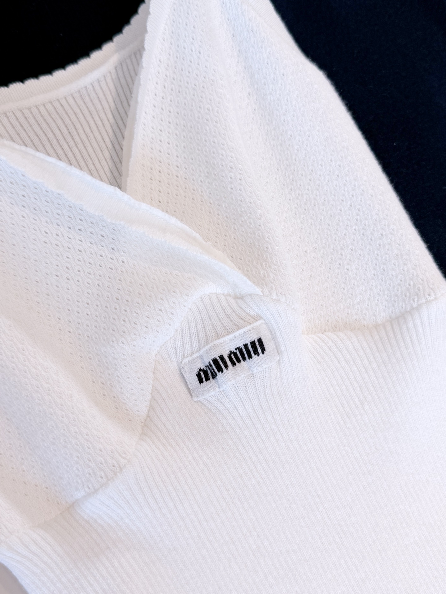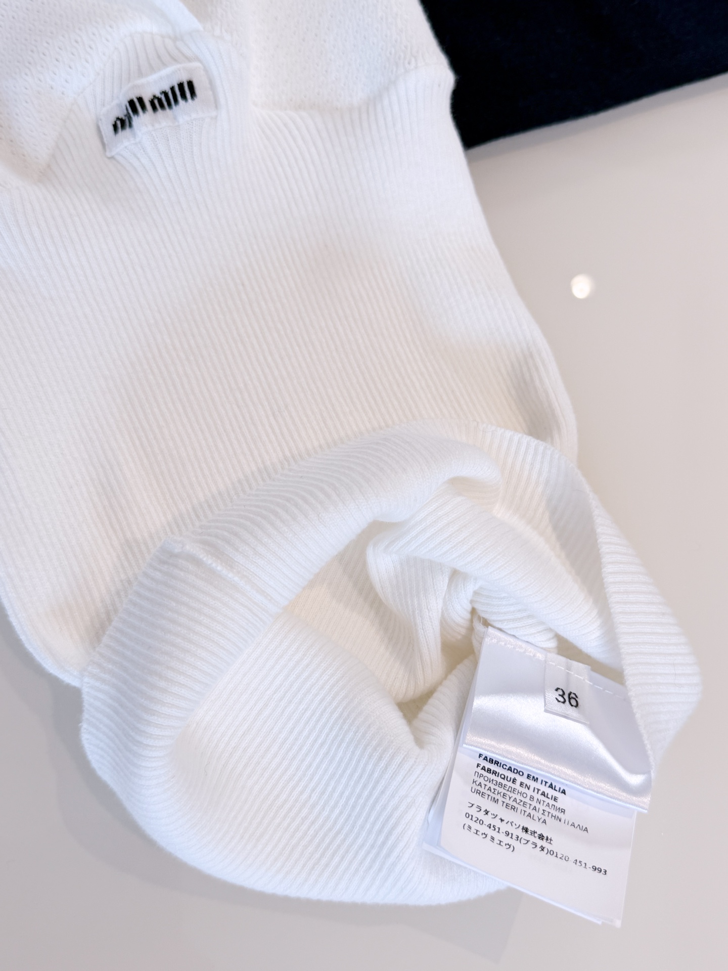 这款衣服是AAAAA 1:1 质量 (非常棒). 使用了和原版一模一样的材料. 商标部分也保持了和缪缪/Miu Miu一样. 图片拍摄是实物衣服拍摄, 您所收到的实物保证和我们图片一模一样.