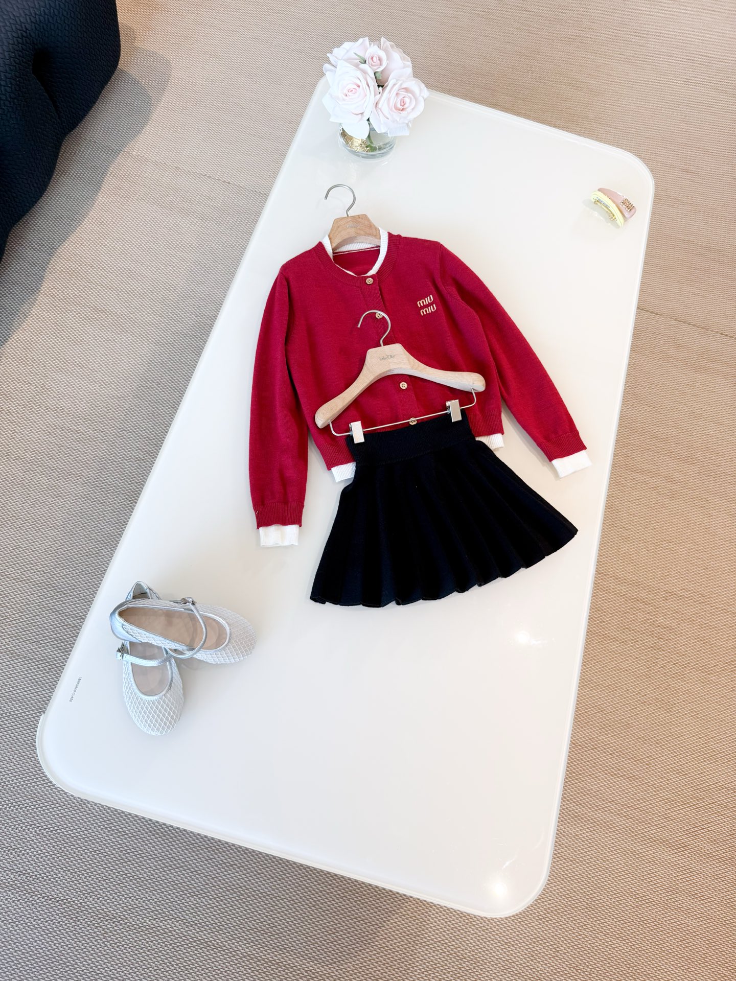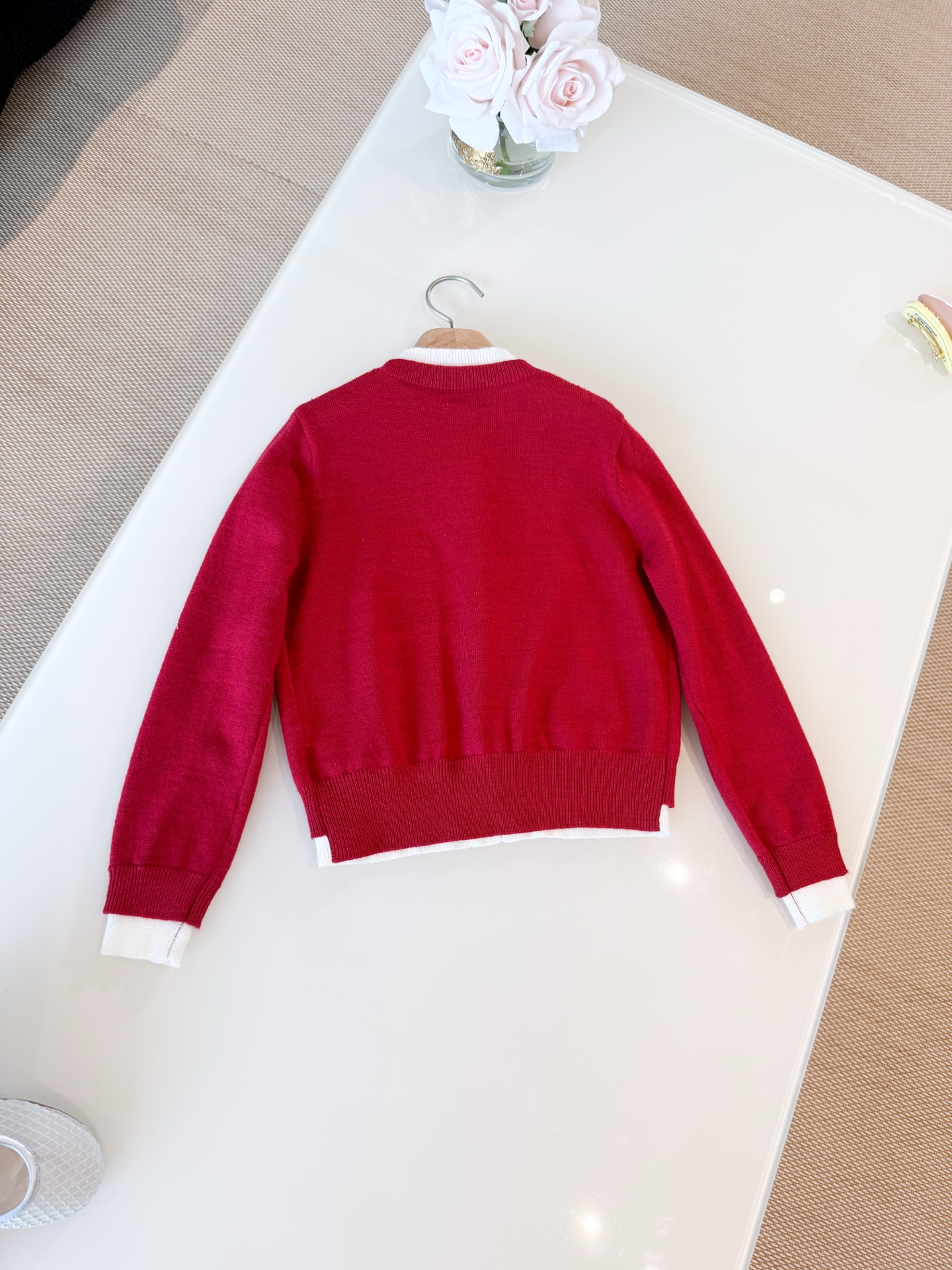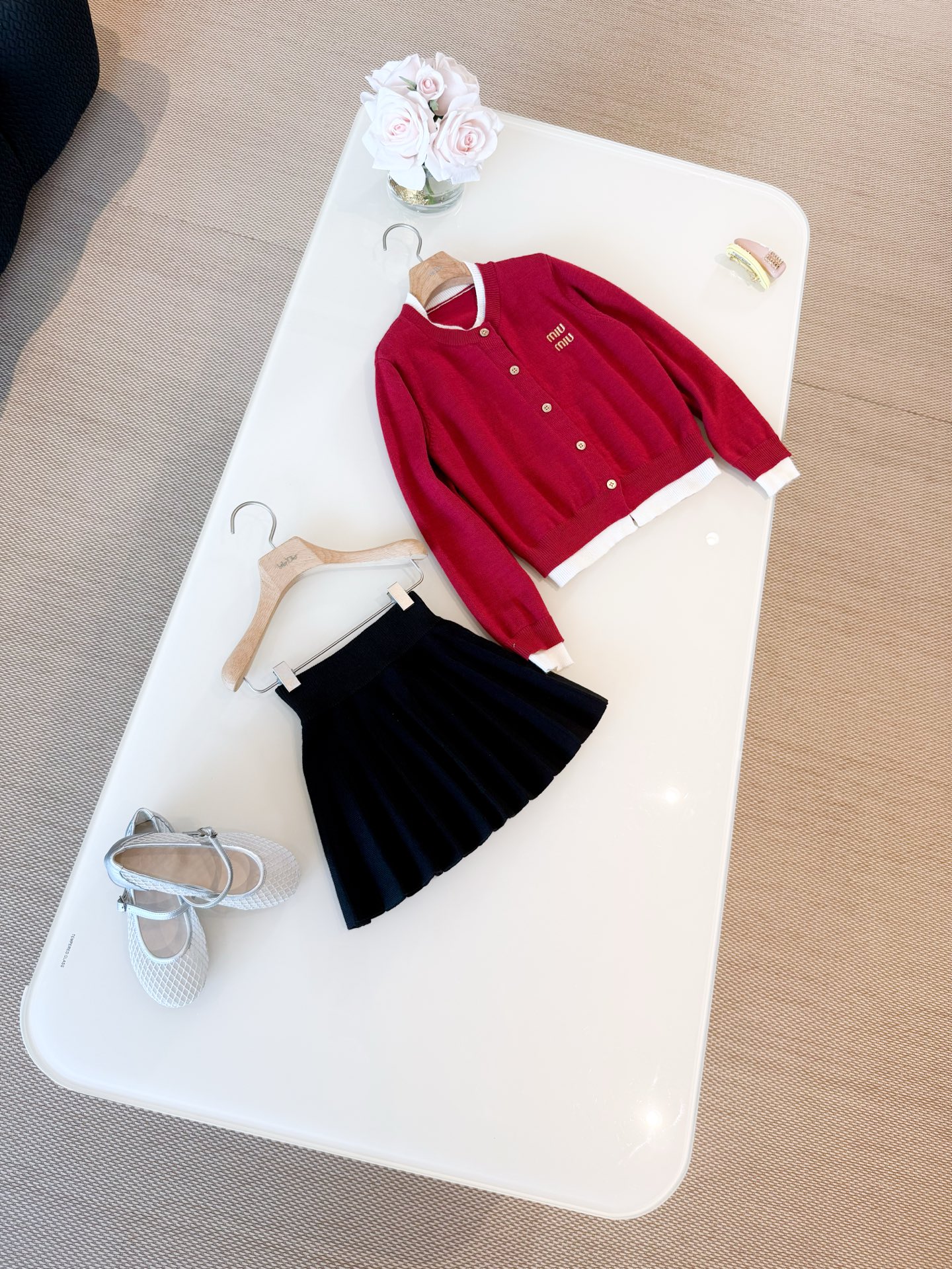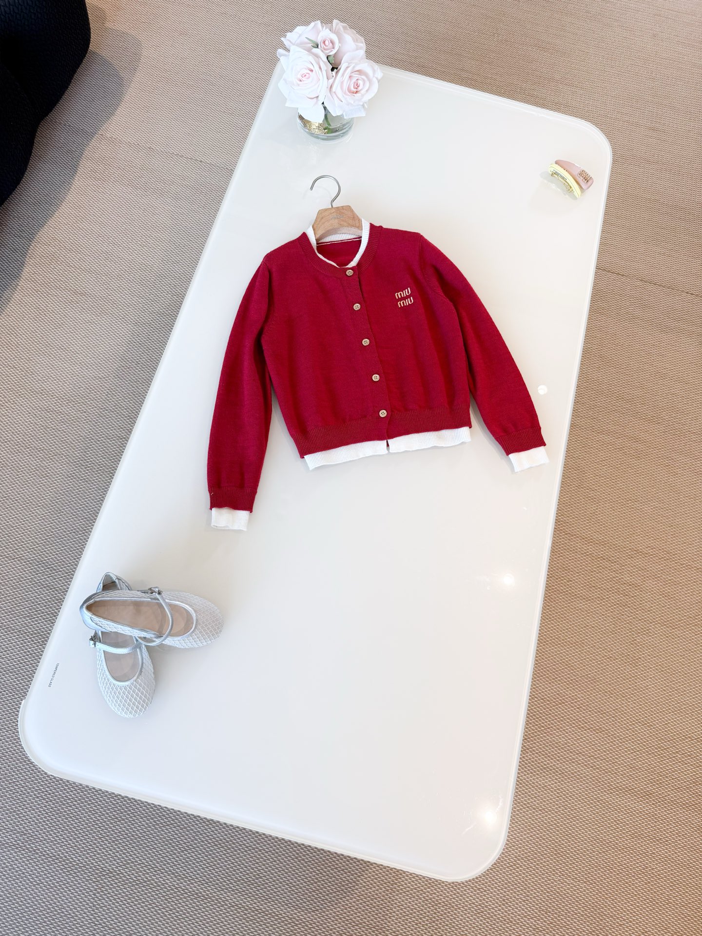 这款衣服是AAAAA 1:1 质量 (非常棒). 使用了和原版一模一样的材料. 商标部分也保持了和缪缪/Miu Miu一样. 图片拍摄是实物衣服拍摄, 您所收到的实物保证和我们图片一模一样.