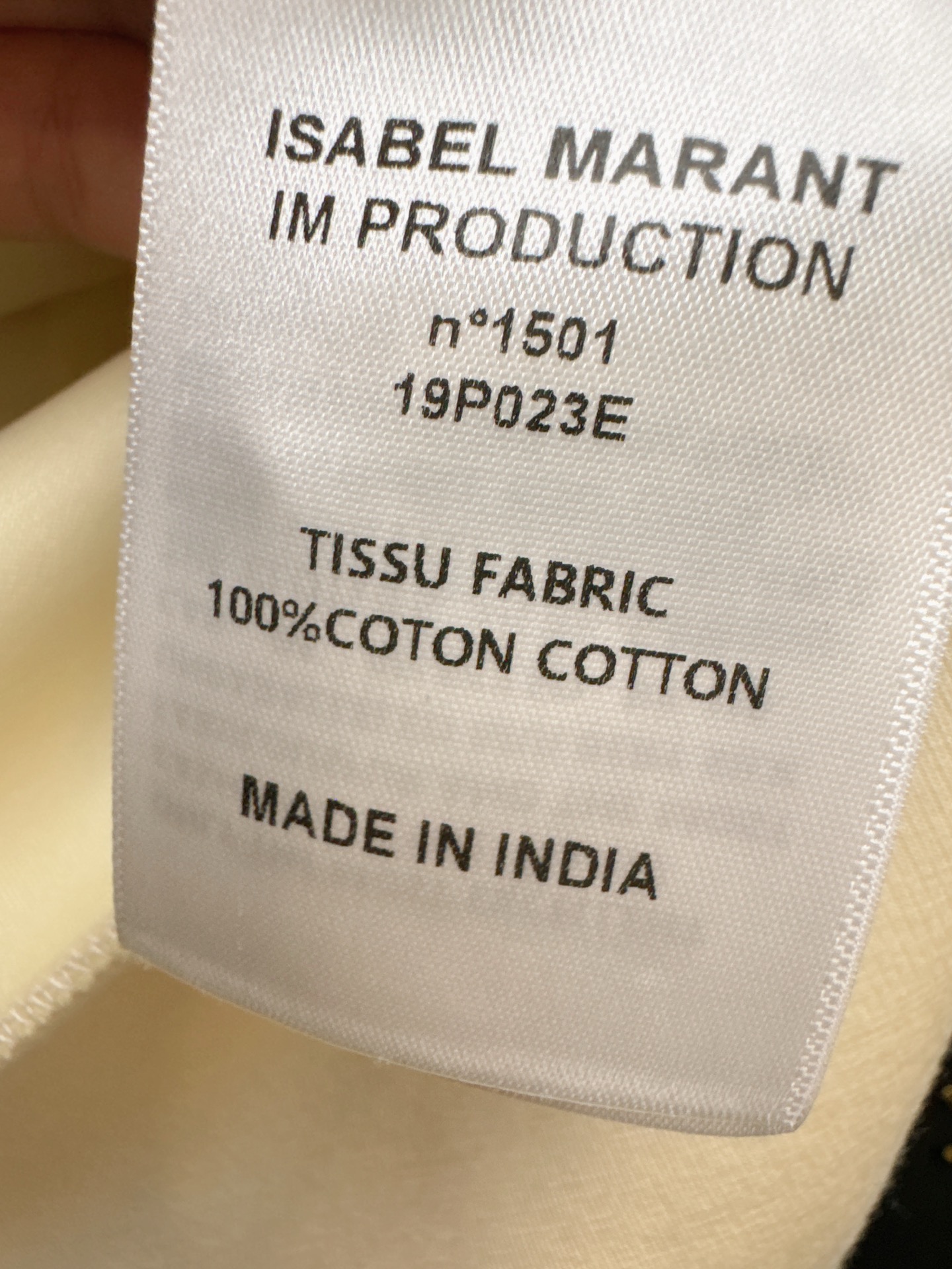 这款衣服是AAAAA 1:1 质量 (非常棒). 使用了和原版一模一样的材料. 商标部分也保持了和伊莎贝尔·马兰特/Isabel Marant一样. 图片拍摄是实物衣服拍摄, 您所收到的实物保证和我们图片一模一样.