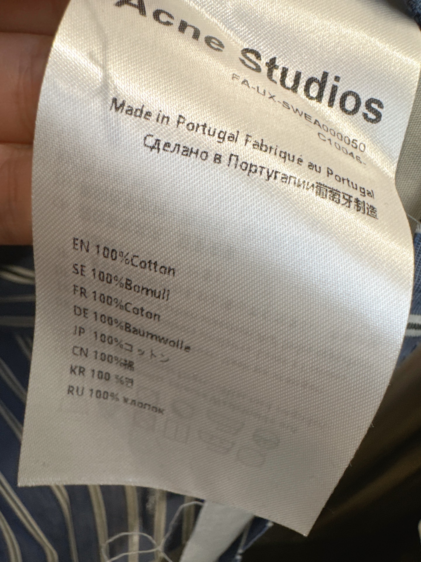 这款衣服是AAAAA 1:1 质量 (非常棒). 使用了和原版一模一样的材料. 商标部分也保持了和Acne一样. 图片拍摄是实物衣服拍摄, 您所收到的实物保证和我们图片一模一样.