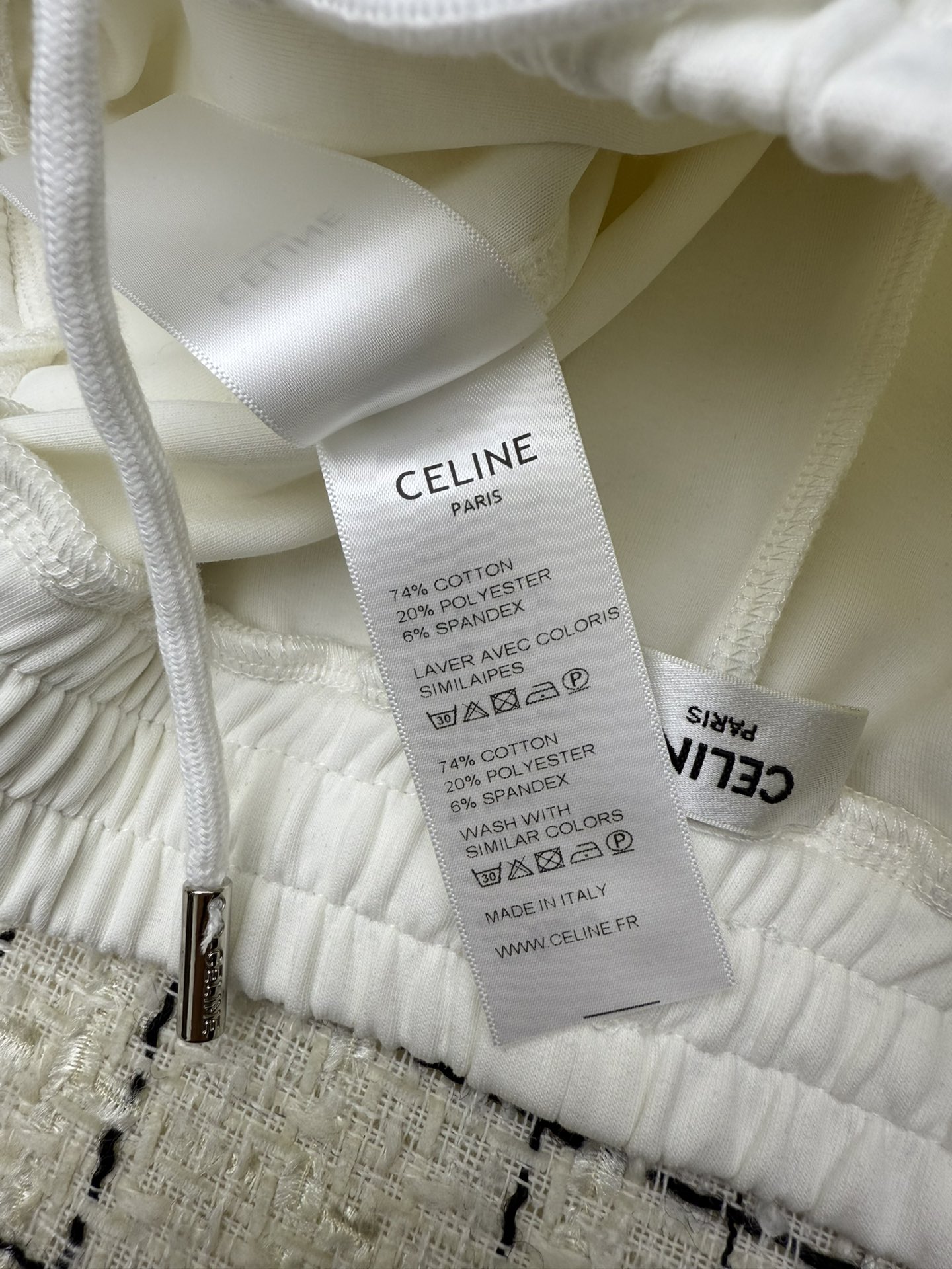 这款衣服是AAAAA 1:1 质量 (非常棒). 使用了和原版一模一样的材料. 商标部分也保持了和思琳/Celine一样. 图片拍摄是实物衣服拍摄, 您所收到的实物保证和我们图片一模一样.