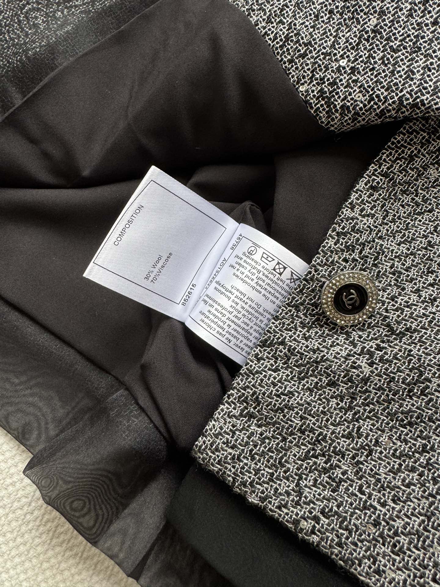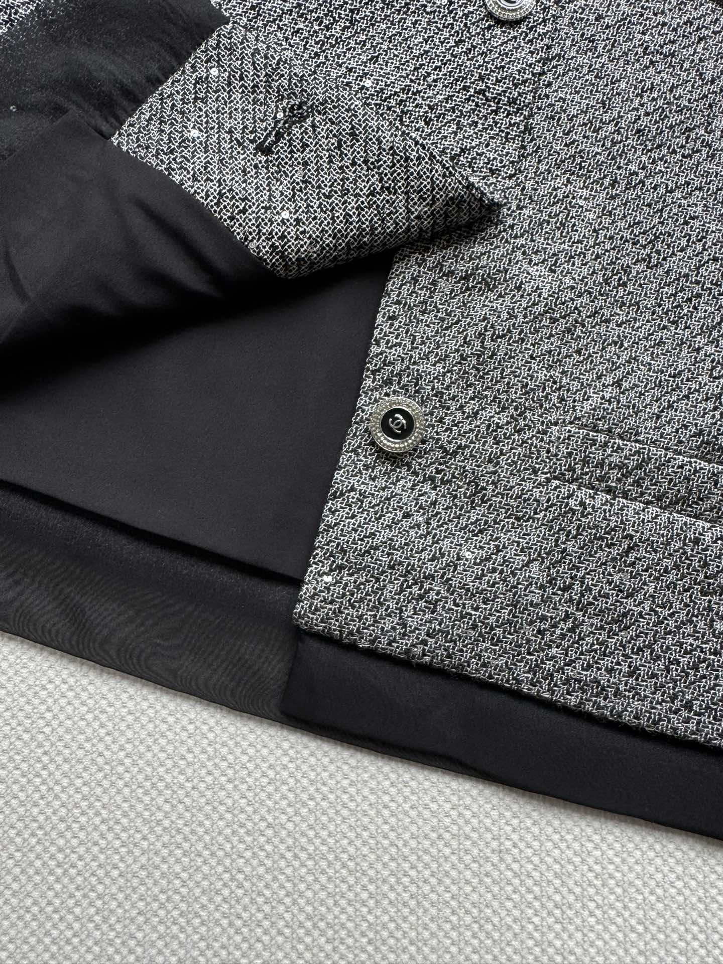 这款衣服是AAAAA 1:1 质量 (非常棒). 使用了和原版一模一样的材料. 商标部分也保持了和香奈儿/Chanel一样. 图片拍摄是实物衣服拍摄, 您所收到的实物保证和我们图片一模一样.