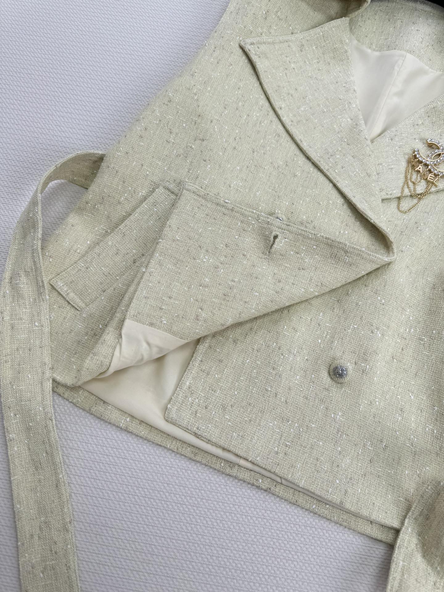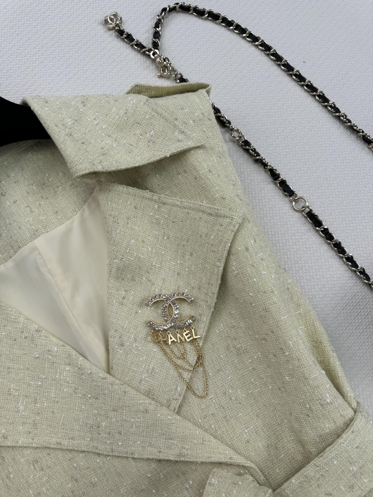 这款衣服是AAAAA 1:1 质量 (非常棒). 使用了和原版一模一样的材料. 商标部分也保持了和香奈儿/Chanel一样. 图片拍摄是实物衣服拍摄, 您所收到的实物保证和我们图片一模一样.