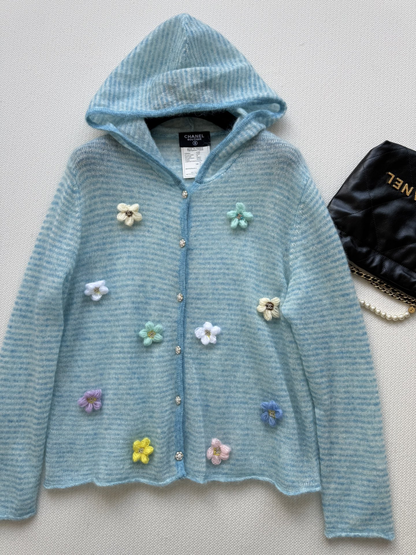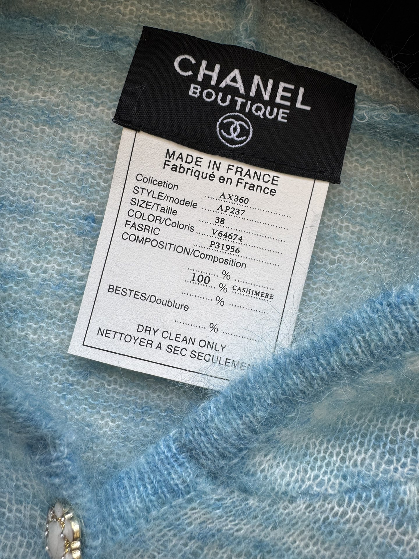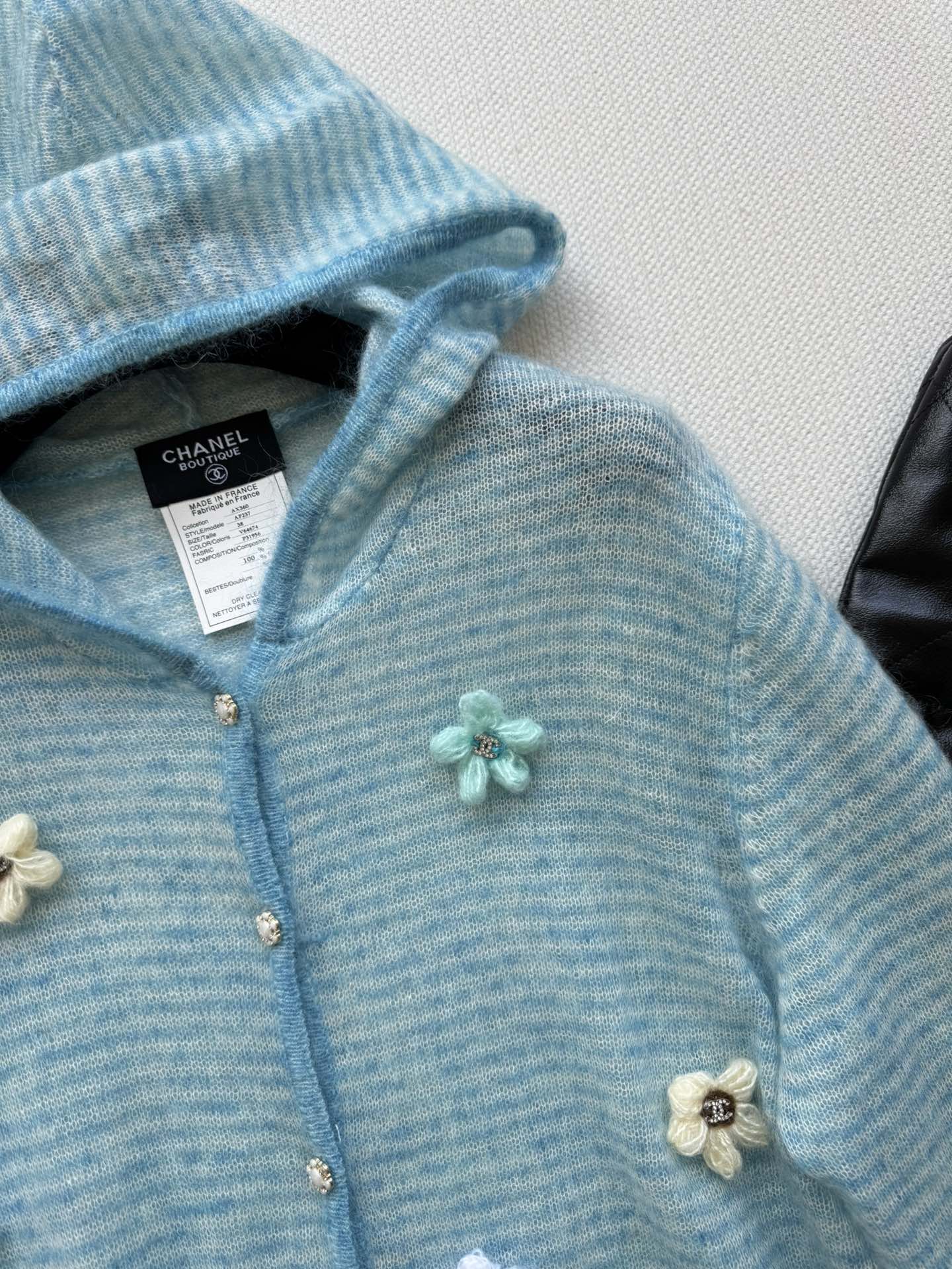 这款衣服是AAAAA 1:1 质量 (非常棒). 使用了和原版一模一样的材料. 商标部分也保持了和香奈儿/Chanel一样. 图片拍摄是实物衣服拍摄, 您所收到的实物保证和我们图片一模一样.