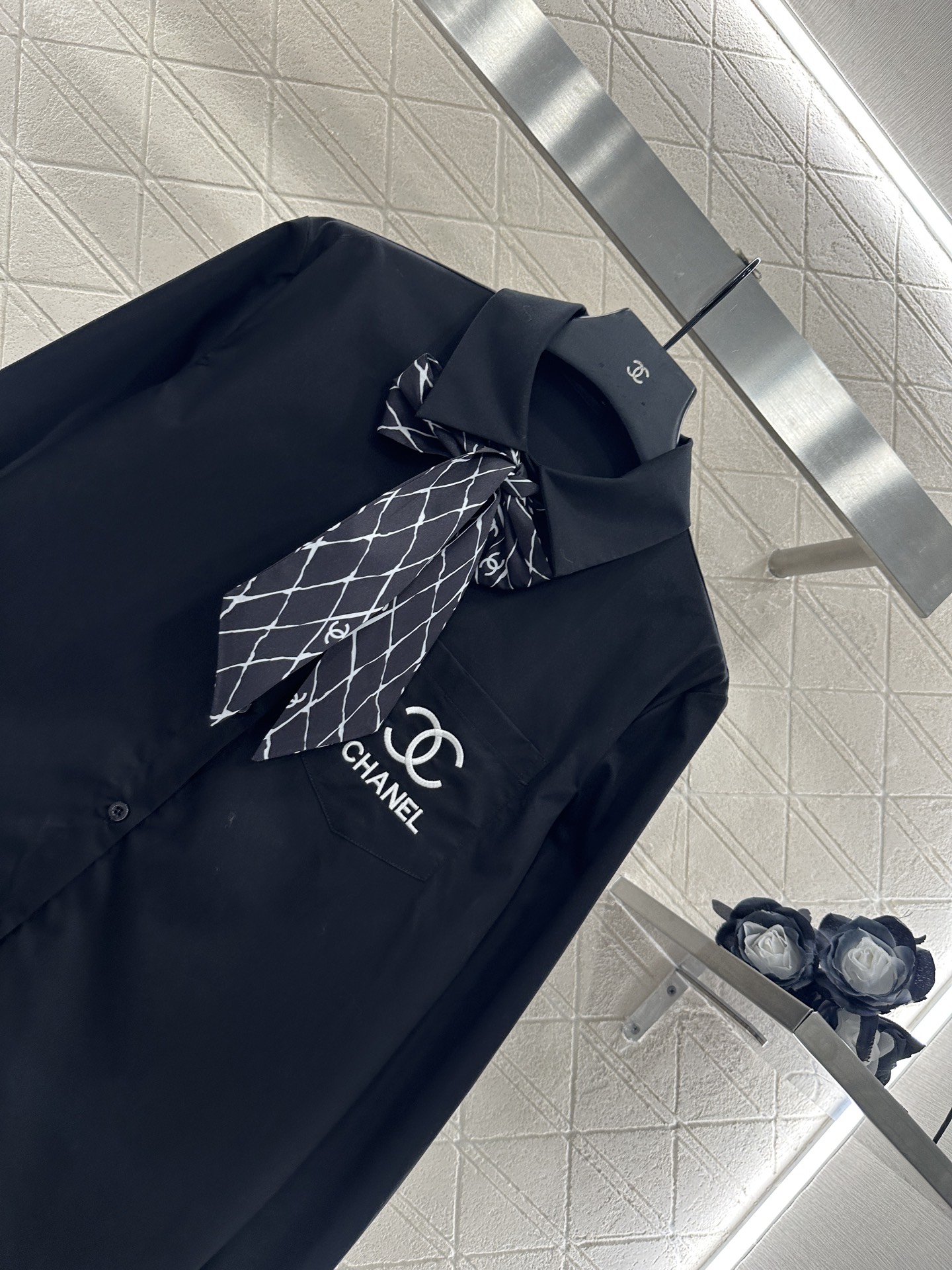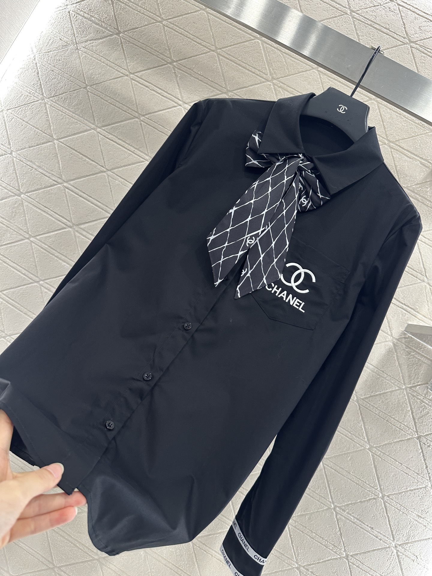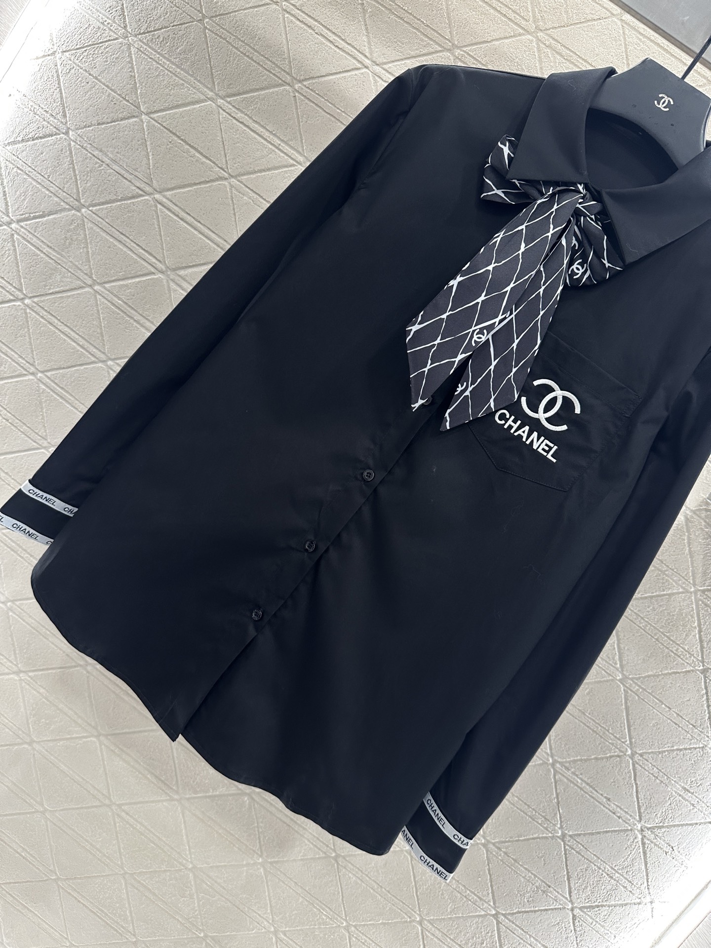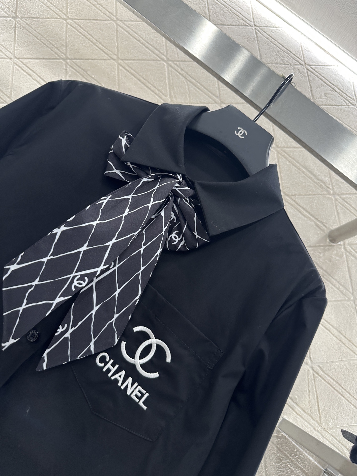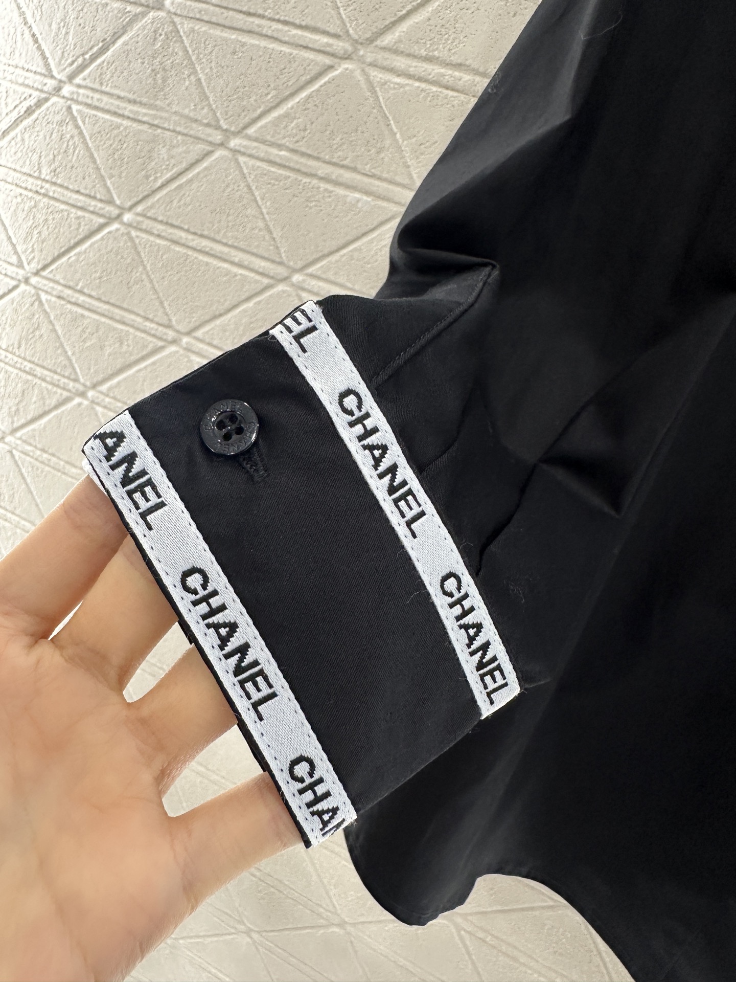 这款衣服是AAAAA 1:1 质量 (非常棒). 使用了和原版一模一样的材料. 商标部分也保持了和香奈儿/Chanel一样. 图片拍摄是实物衣服拍摄, 您所收到的实物保证和我们图片一模一样.