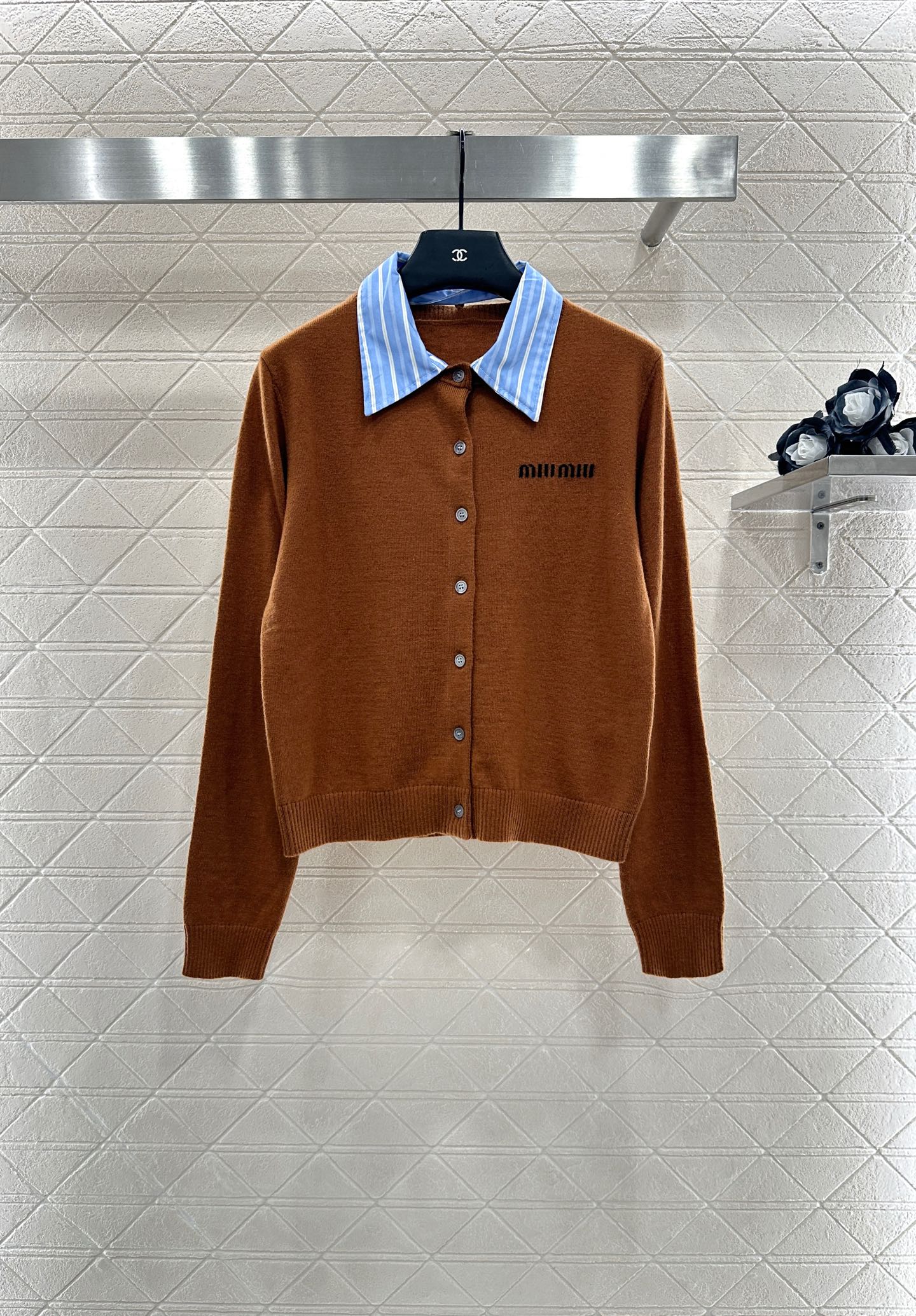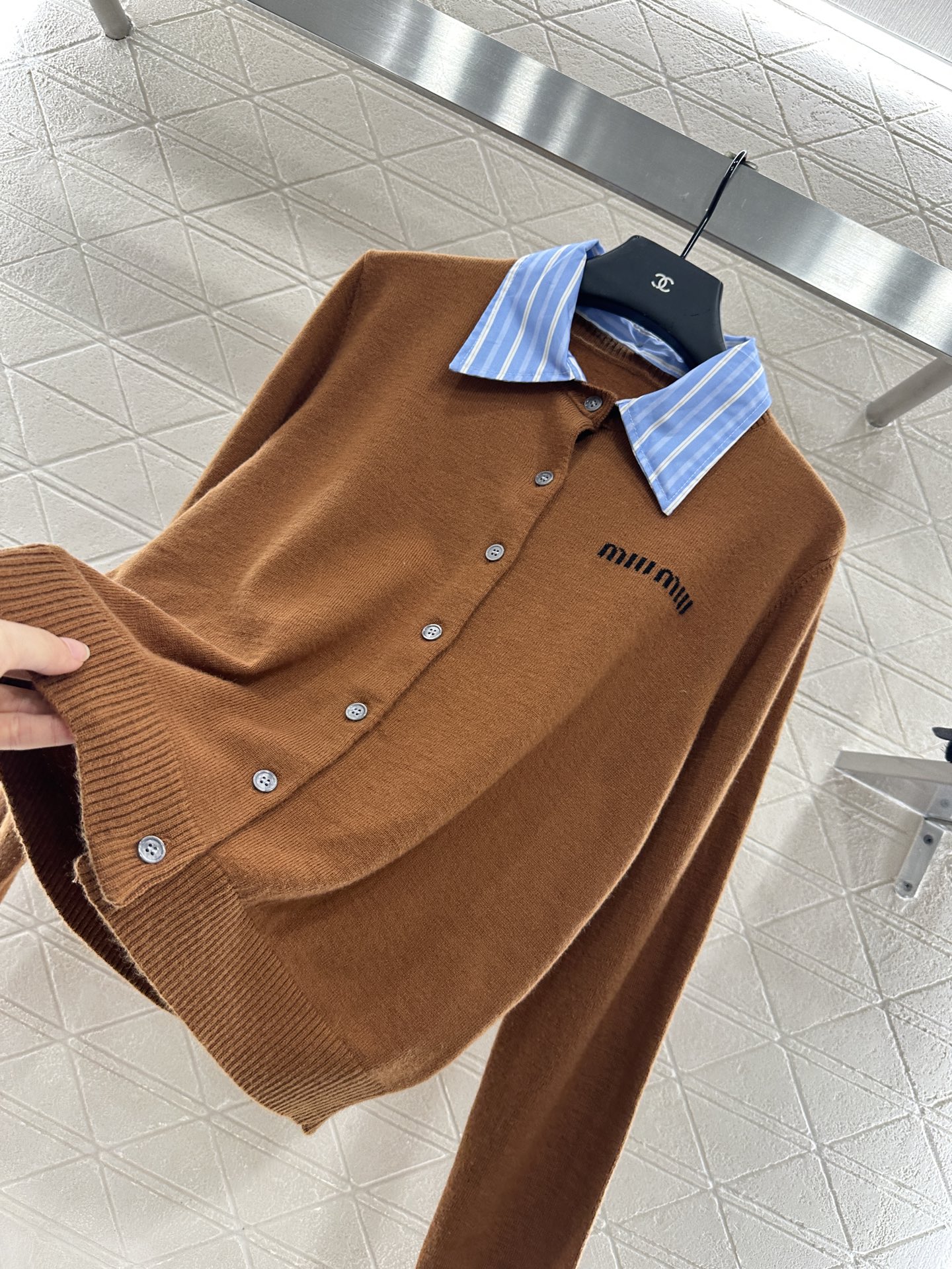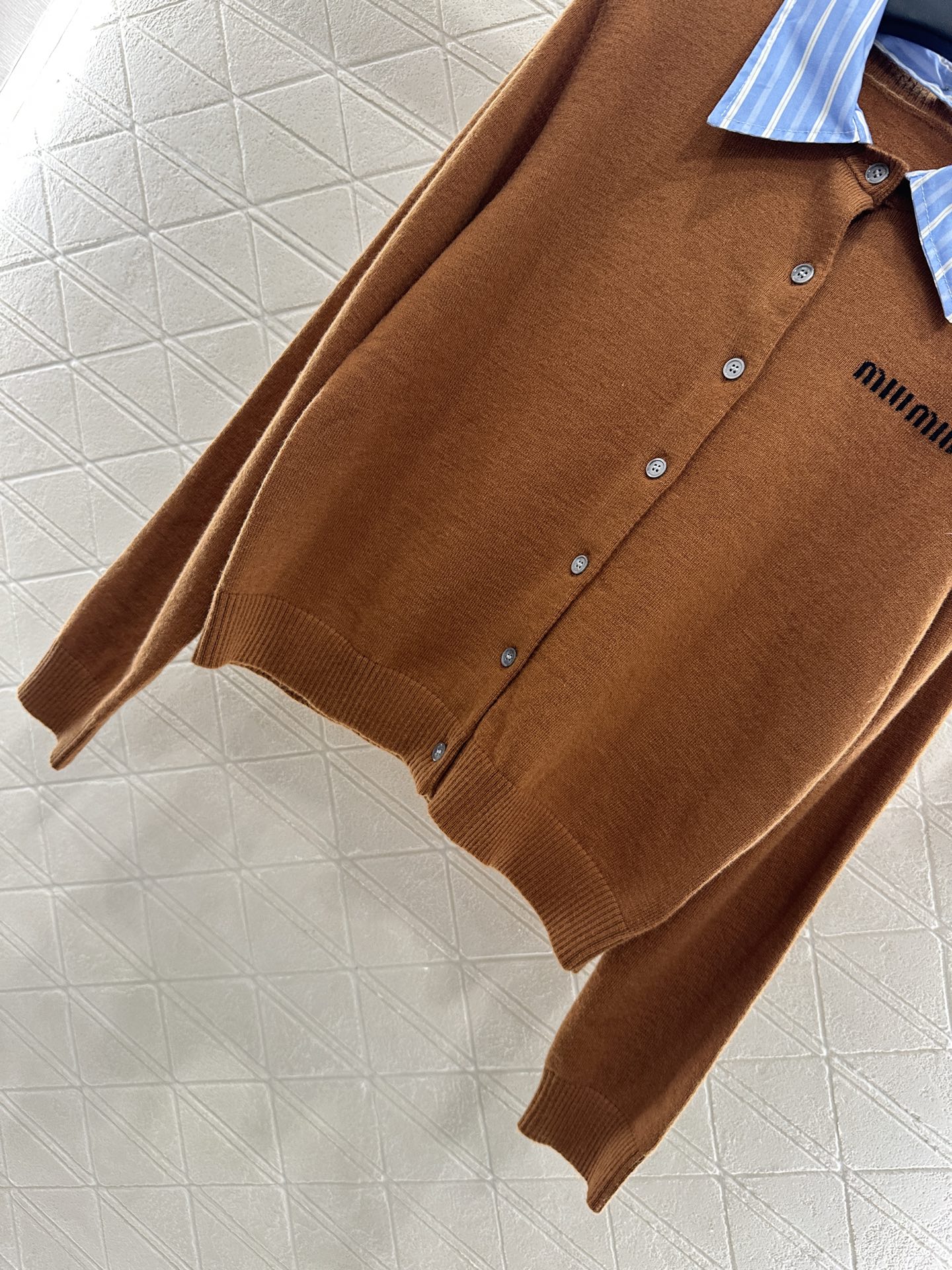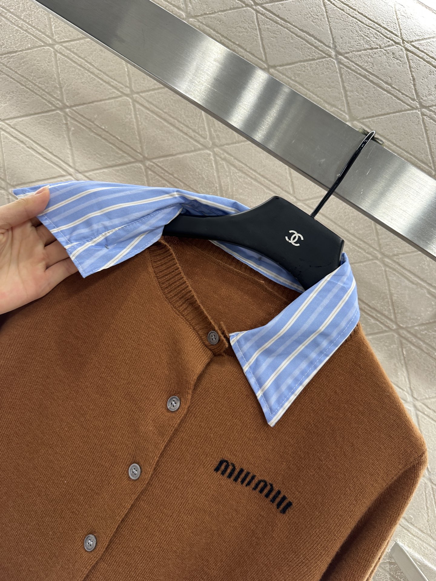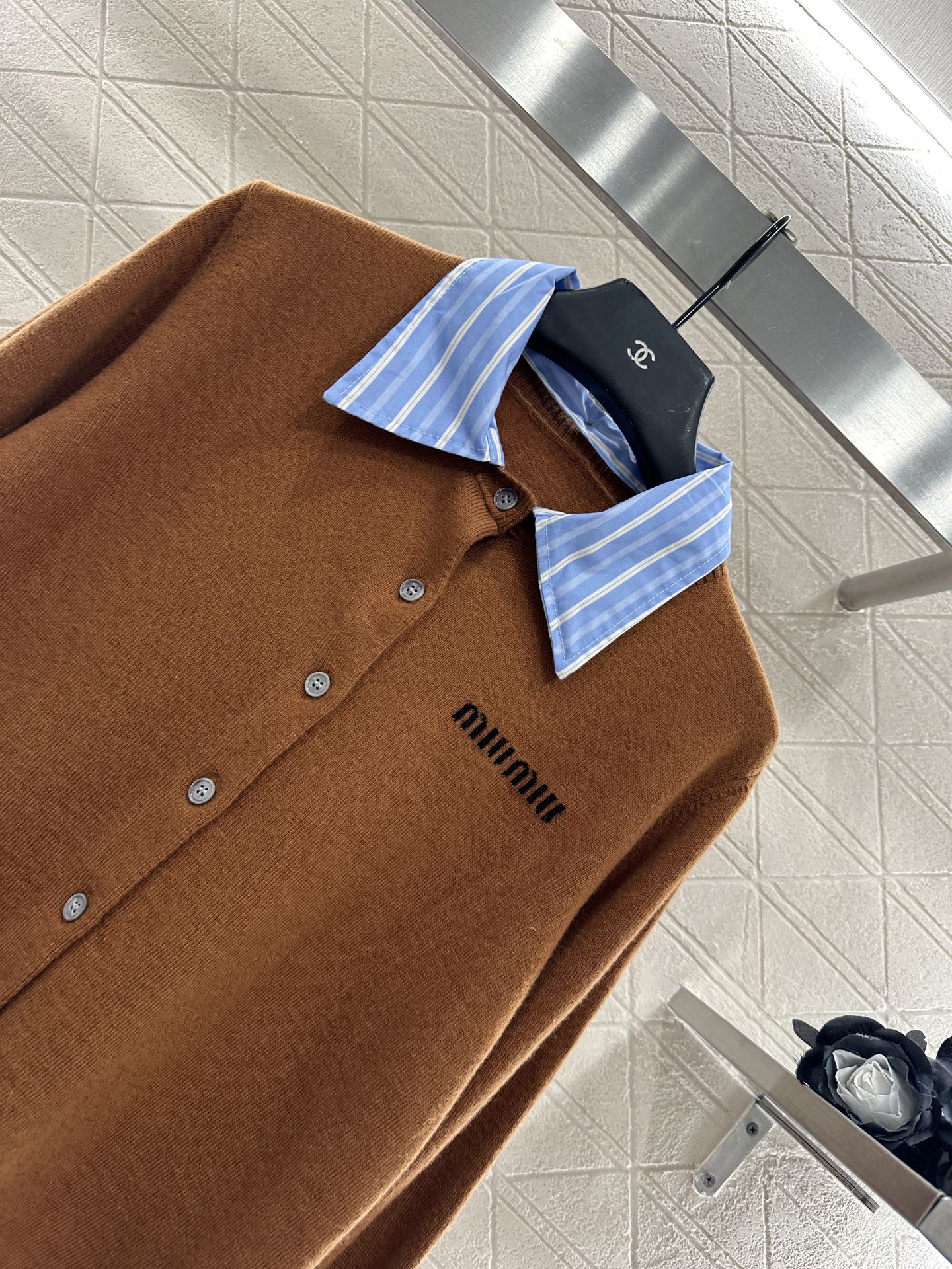 这款衣服是AAAAA 1:1 质量 (非常棒). 使用了和原版一模一样的材料. 商标部分也保持了和缪缪/Miu Miu一样. 图片拍摄是实物衣服拍摄, 您所收到的实物保证和我们图片一模一样.