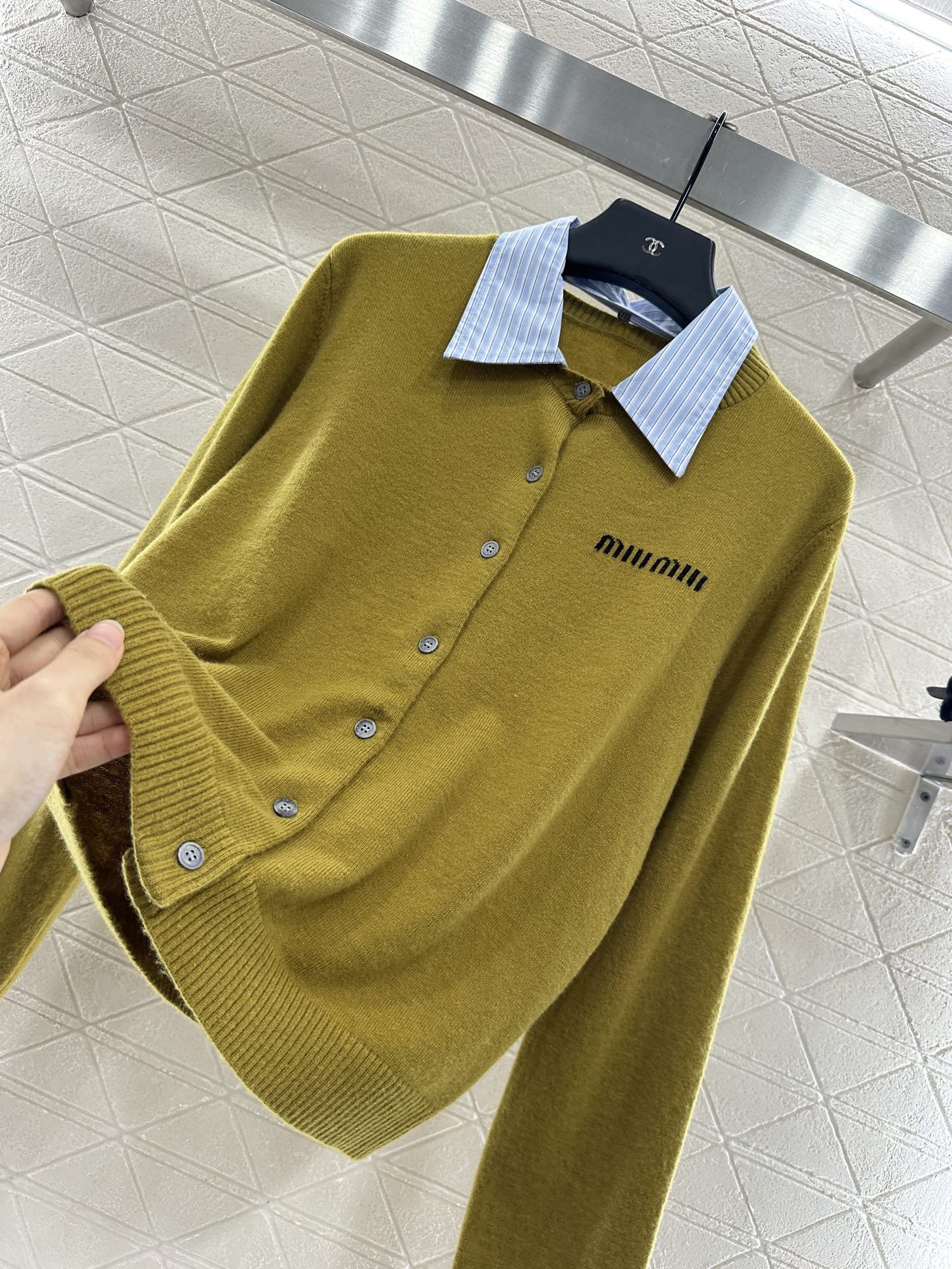 这款衣服是AAAAA 1:1 质量 (非常棒). 使用了和原版一模一样的材料. 商标部分也保持了和缪缪/Miu Miu一样. 图片拍摄是实物衣服拍摄, 您所收到的实物保证和我们图片一模一样.