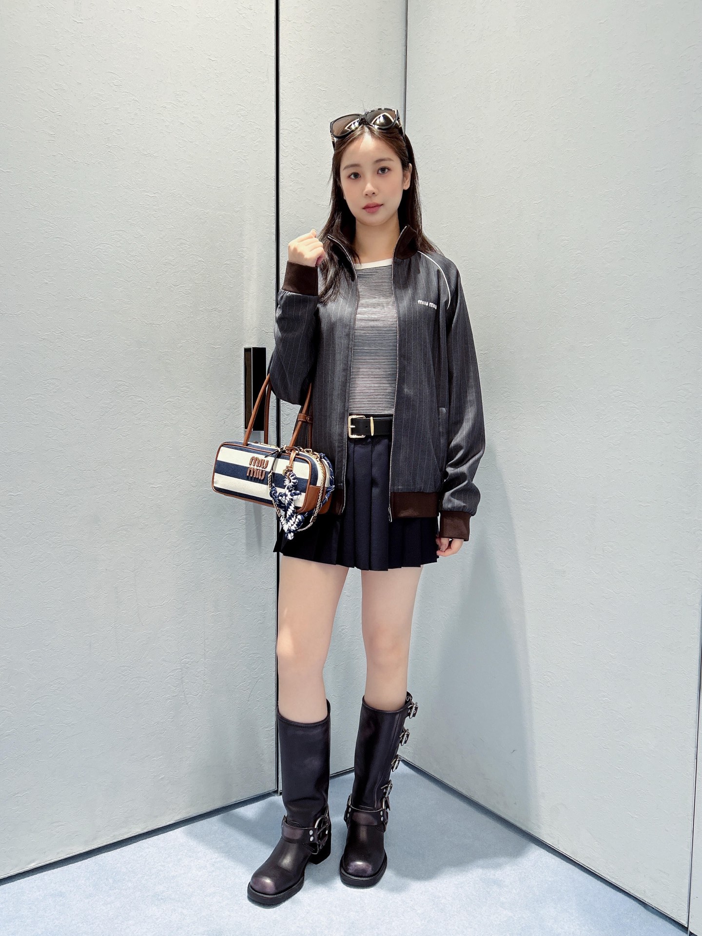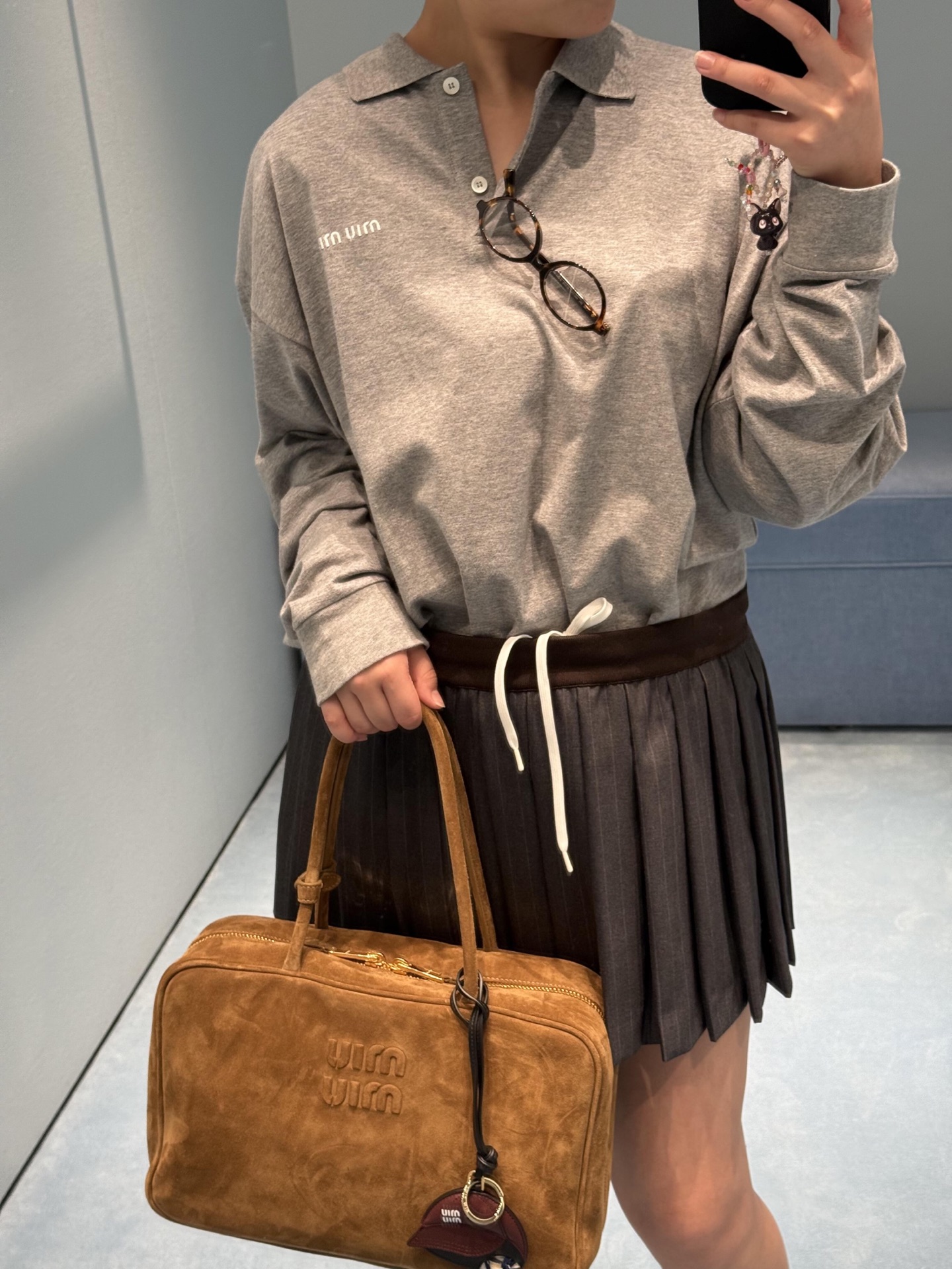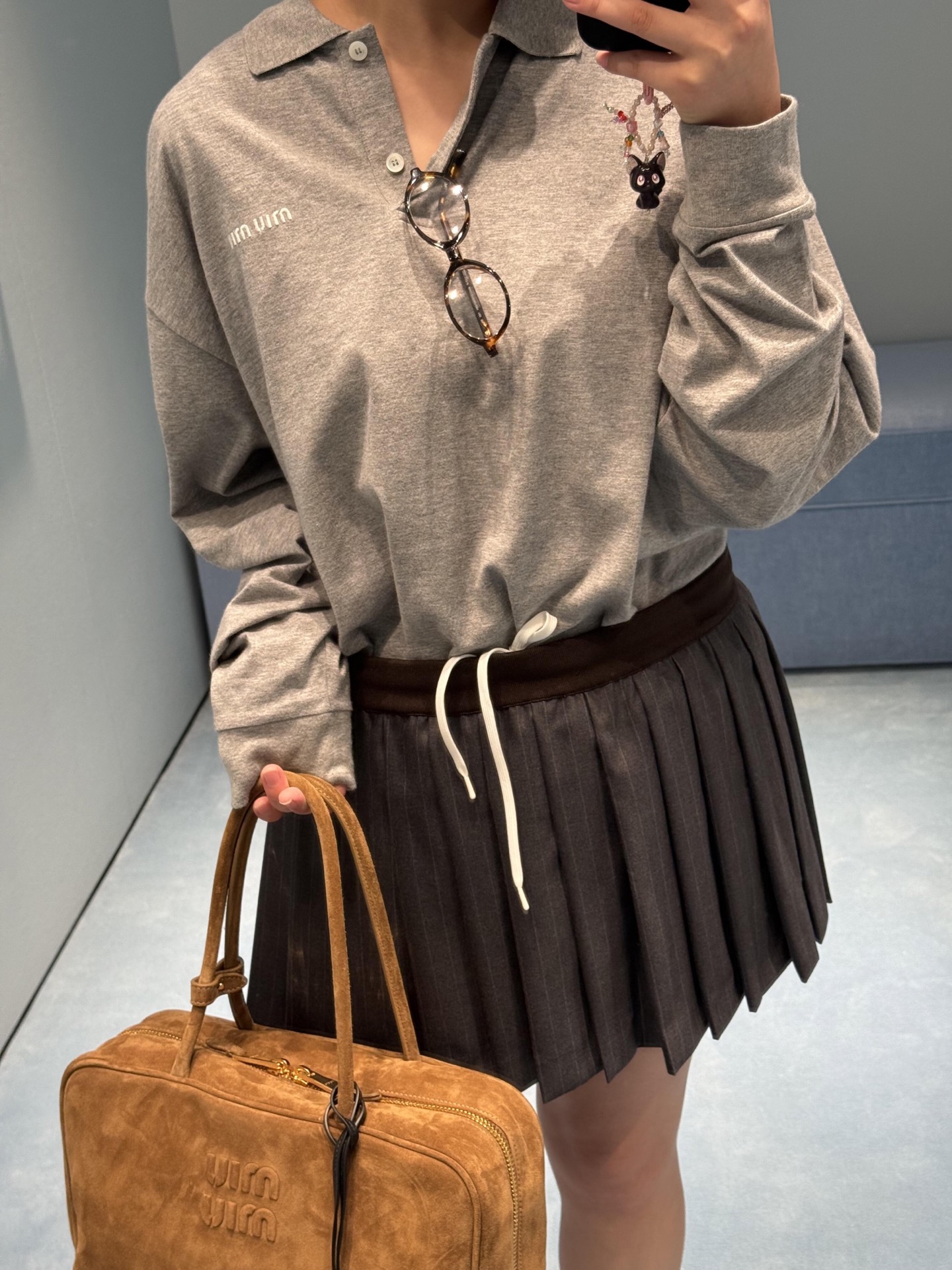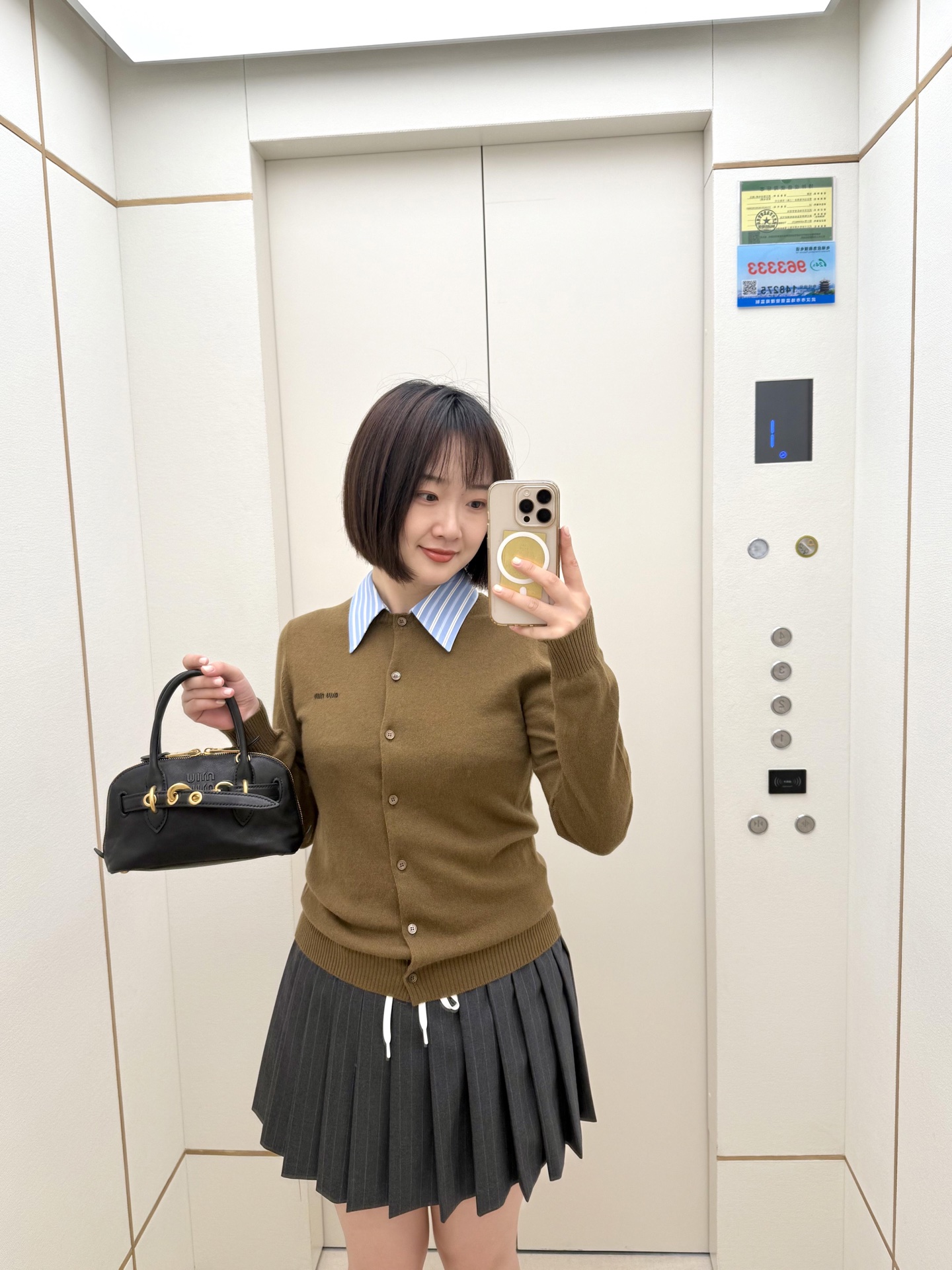 这款衣服是AAAAA 1:1 质量 (非常棒). 使用了和原版一模一样的材料. 商标部分也保持了和缪缪/Miu Miu一样. 图片拍摄是实物衣服拍摄, 您所收到的实物保证和我们图片一模一样.
