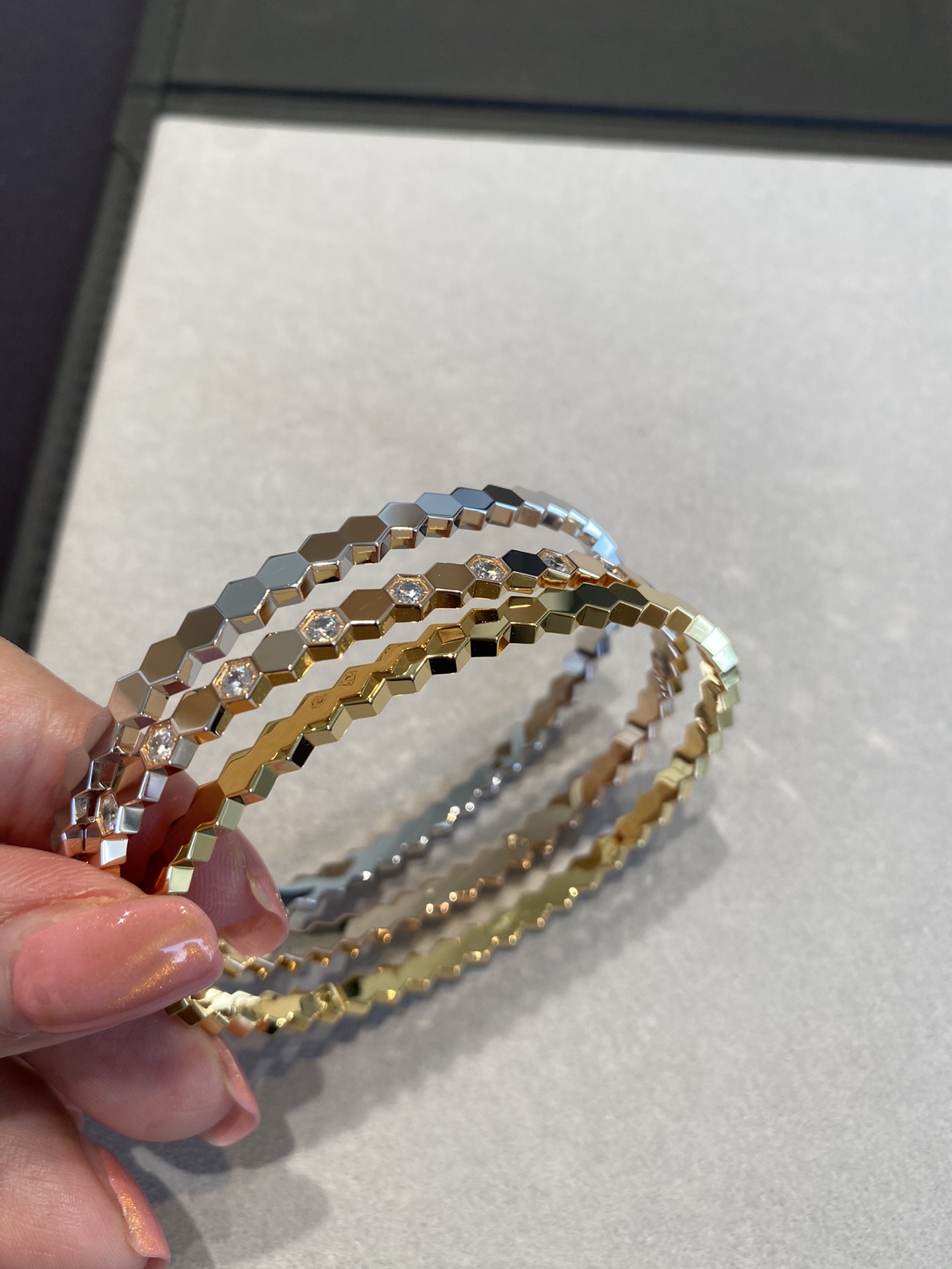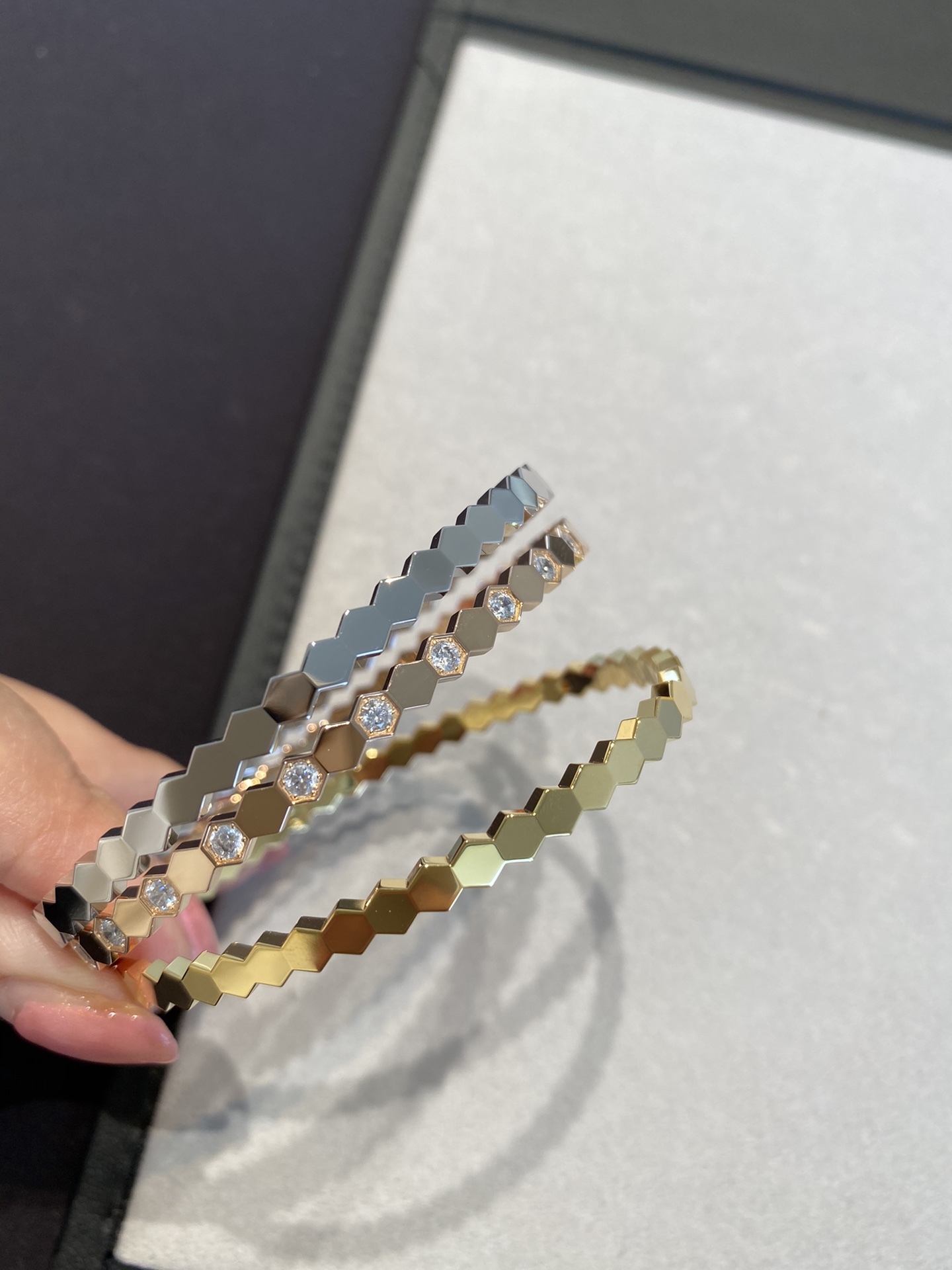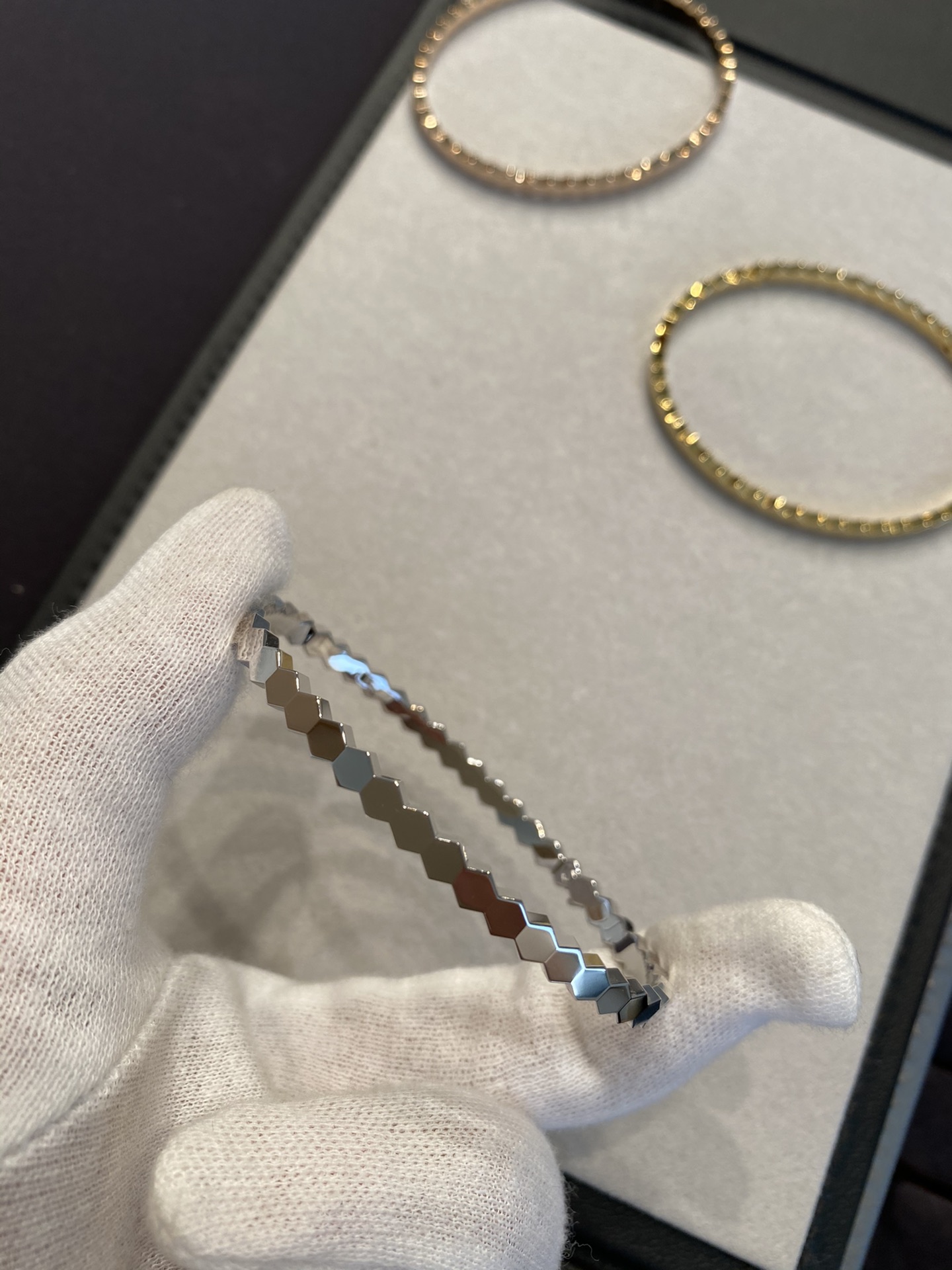 这款首饰是AAAAA 1:1 质量 (非常棒). 使用了和原版一模一样的材料. 商标部分也保持了和Chaumet一样. 图片拍摄是实物首饰拍摄, 您所收到的实物保证和我们图片一模一样.
