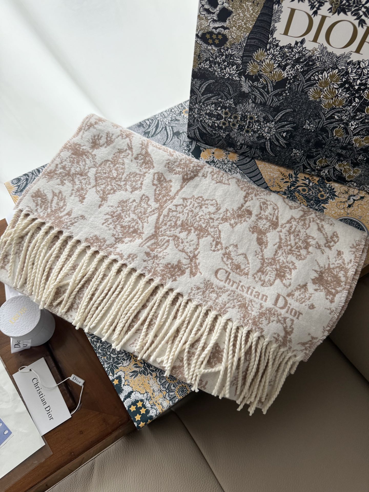 这款围巾是AAAAA 1:1 质量 (非常棒). 使用了和原版一模一样的材料. 商标部分也保持了和迪奥/Dior一样. 图片拍摄是实物围巾拍摄, 您所收到的实物保证和我们图片一模一样.