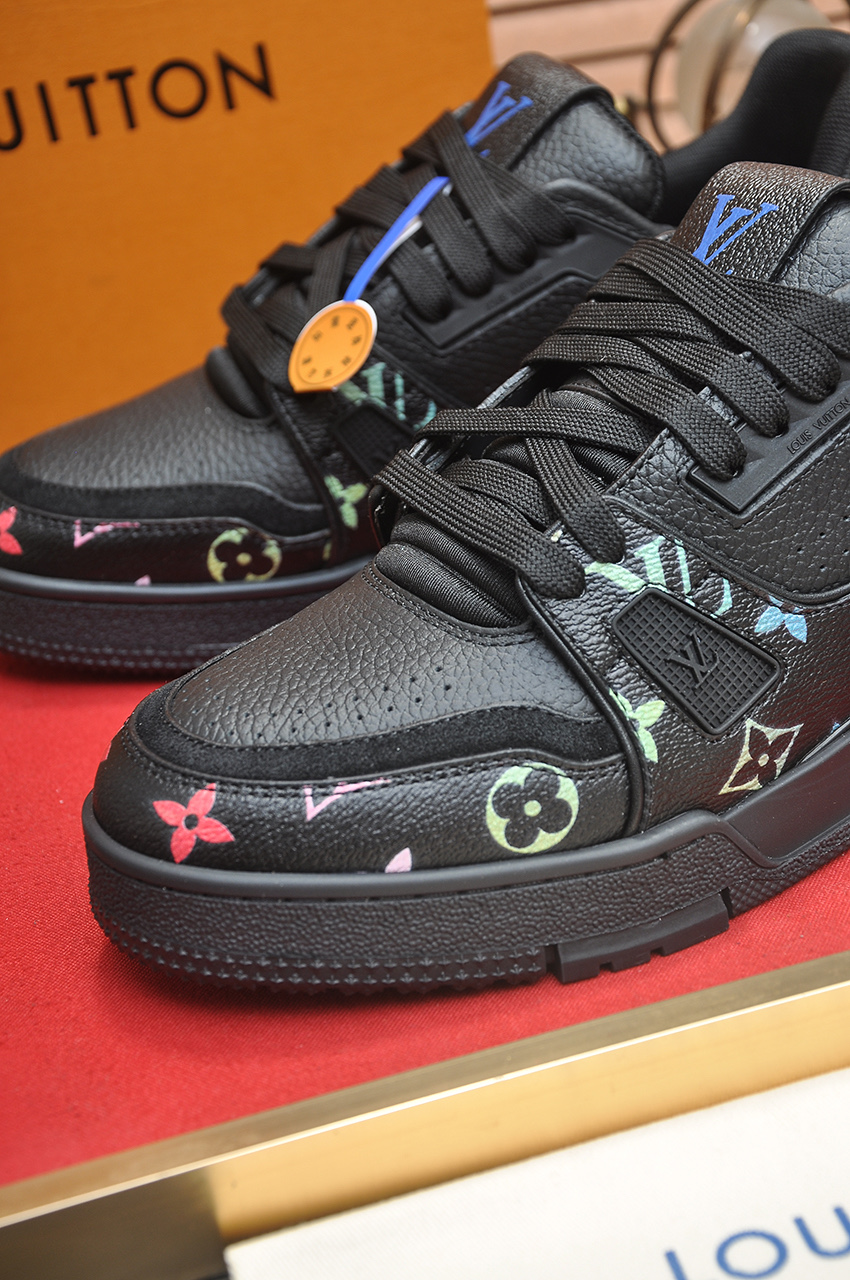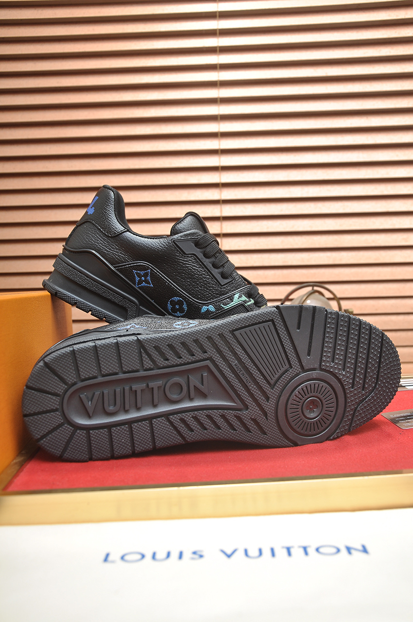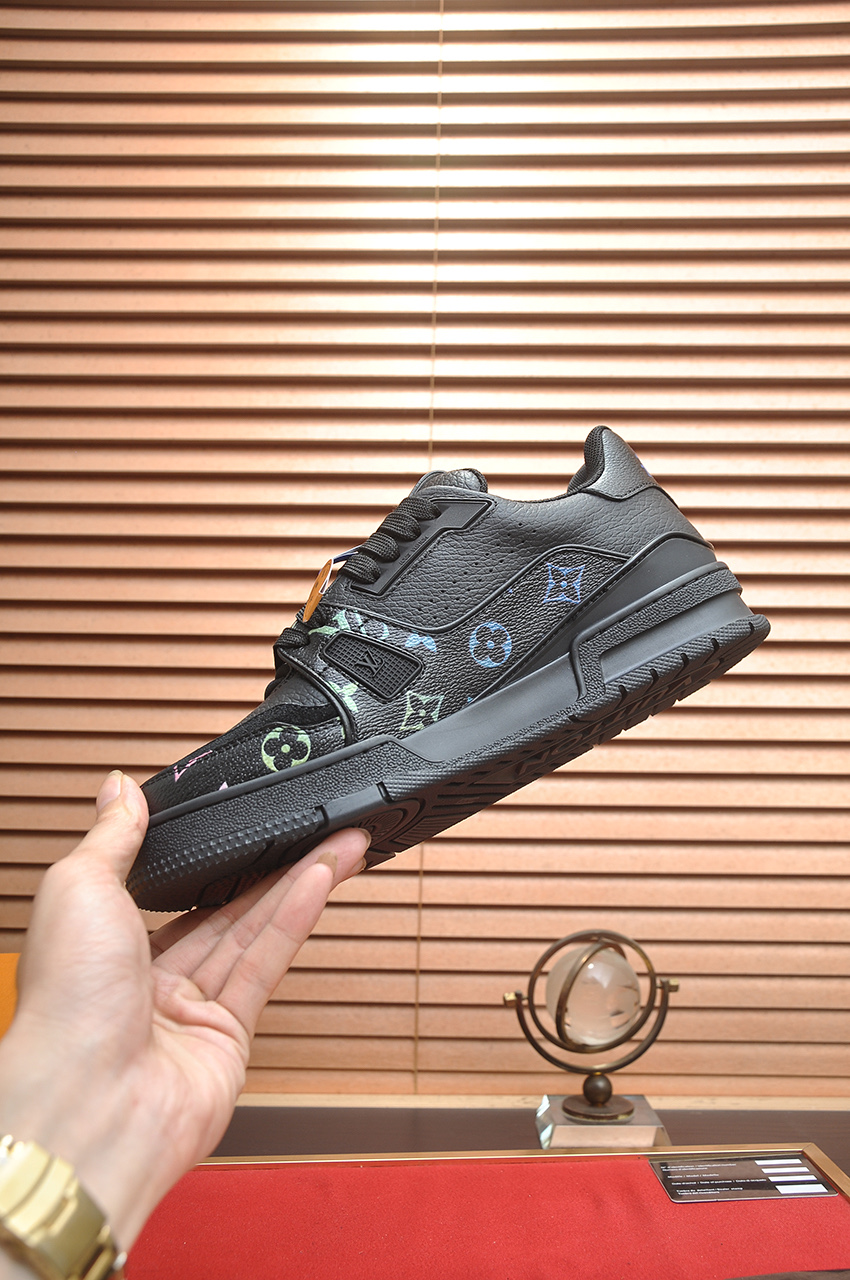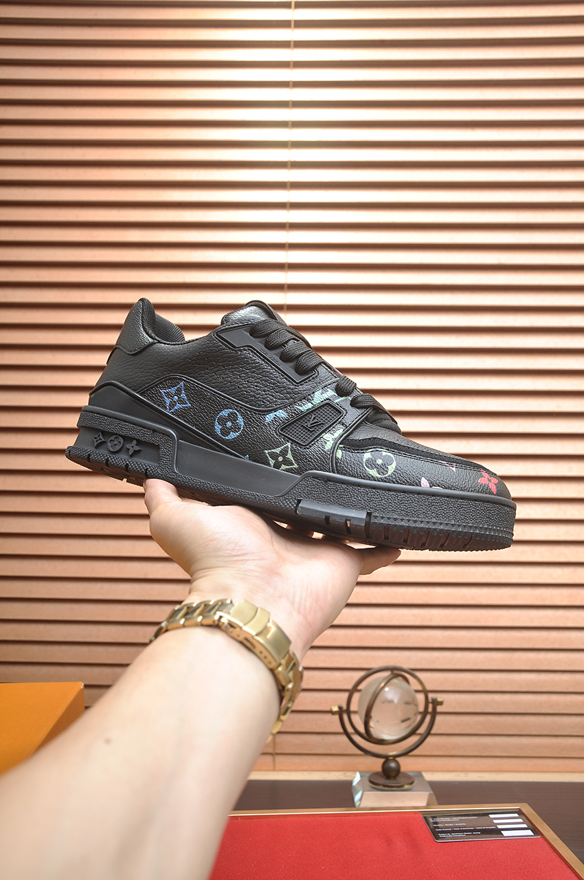 这款鞋子是AAAAA 1:1 质量 (非常棒). 使用了和原版一模一样的材料. 商标部分也保持了和路易威登/Louis Vuitton一样. 图片拍摄是实物鞋子拍摄, 您所收到的实物保证和我们图片一模一样.