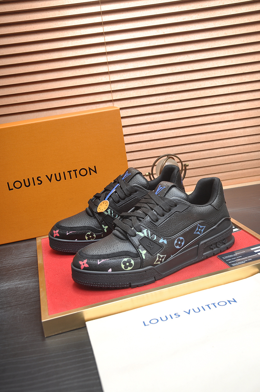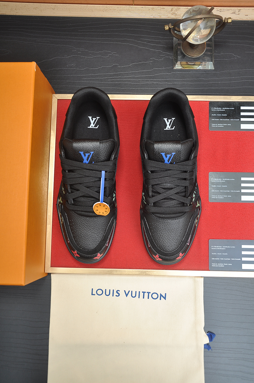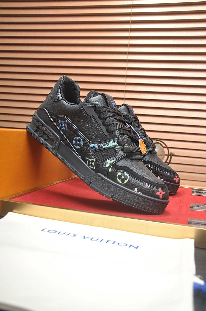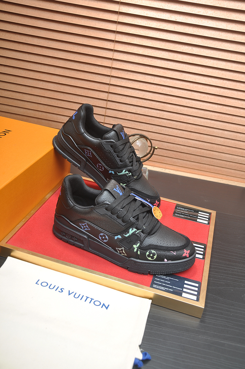 这款鞋子是AAAAA 1:1 质量 (非常棒). 使用了和原版一模一样的材料. 商标部分也保持了和路易威登/Louis Vuitton一样. 图片拍摄是实物鞋子拍摄, 您所收到的实物保证和我们图片一模一样.