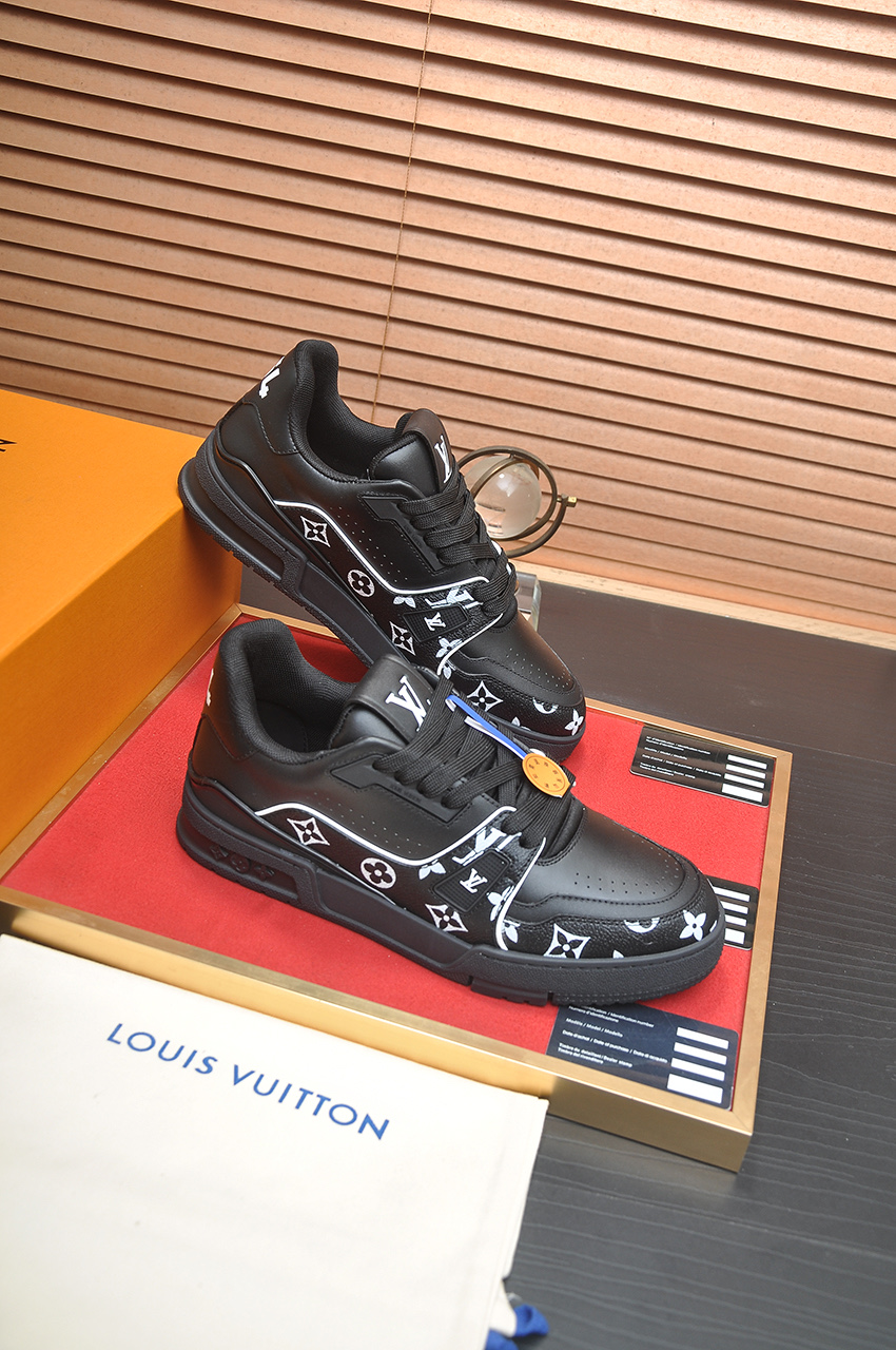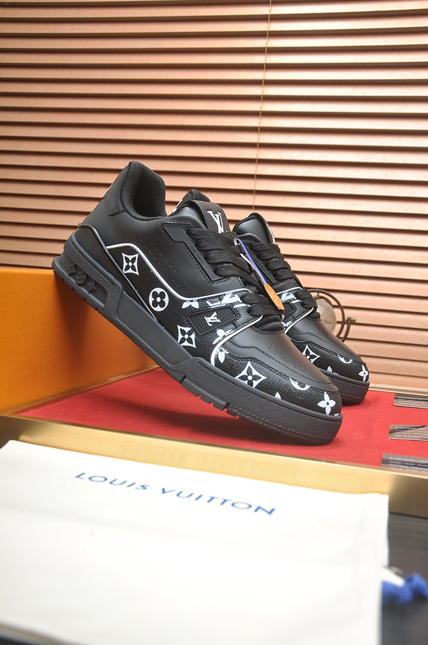 这款鞋子是AAAAA 1:1 质量 (非常棒). 使用了和原版一模一样的材料. 商标部分也保持了和路易威登/Louis Vuitton一样. 图片拍摄是实物鞋子拍摄, 您所收到的实物保证和我们图片一模一样.
