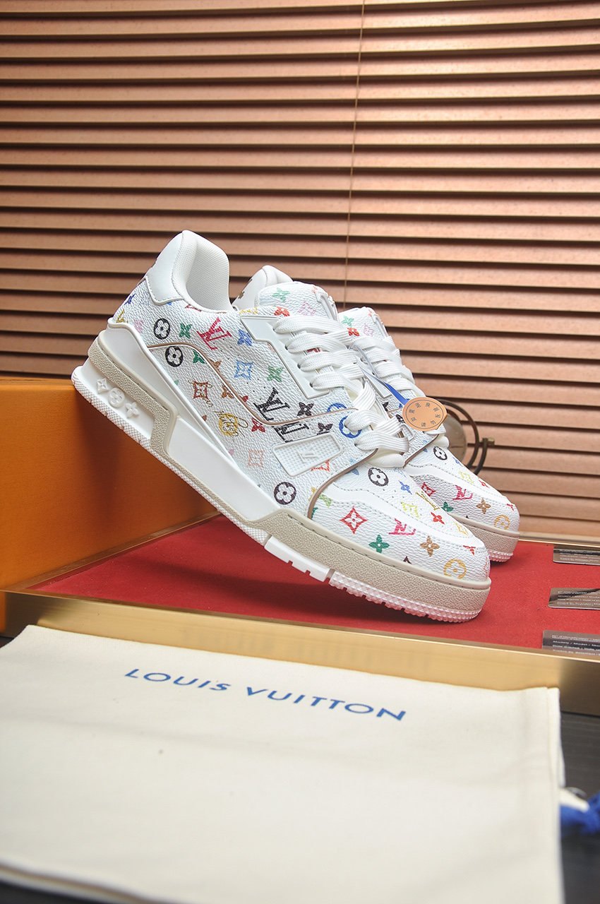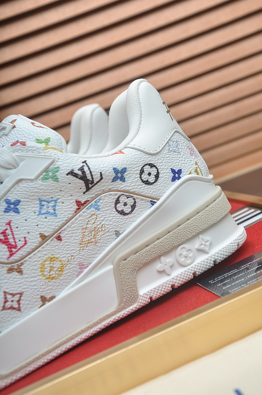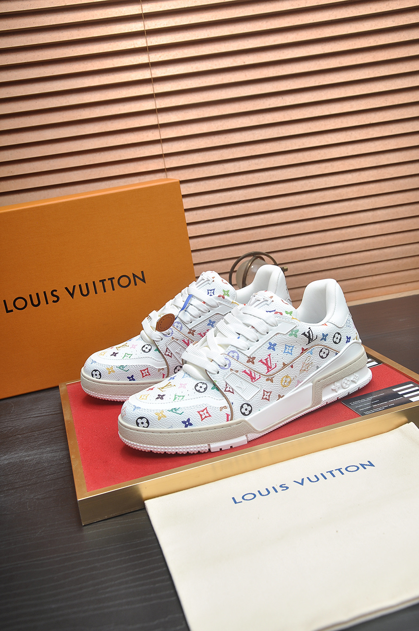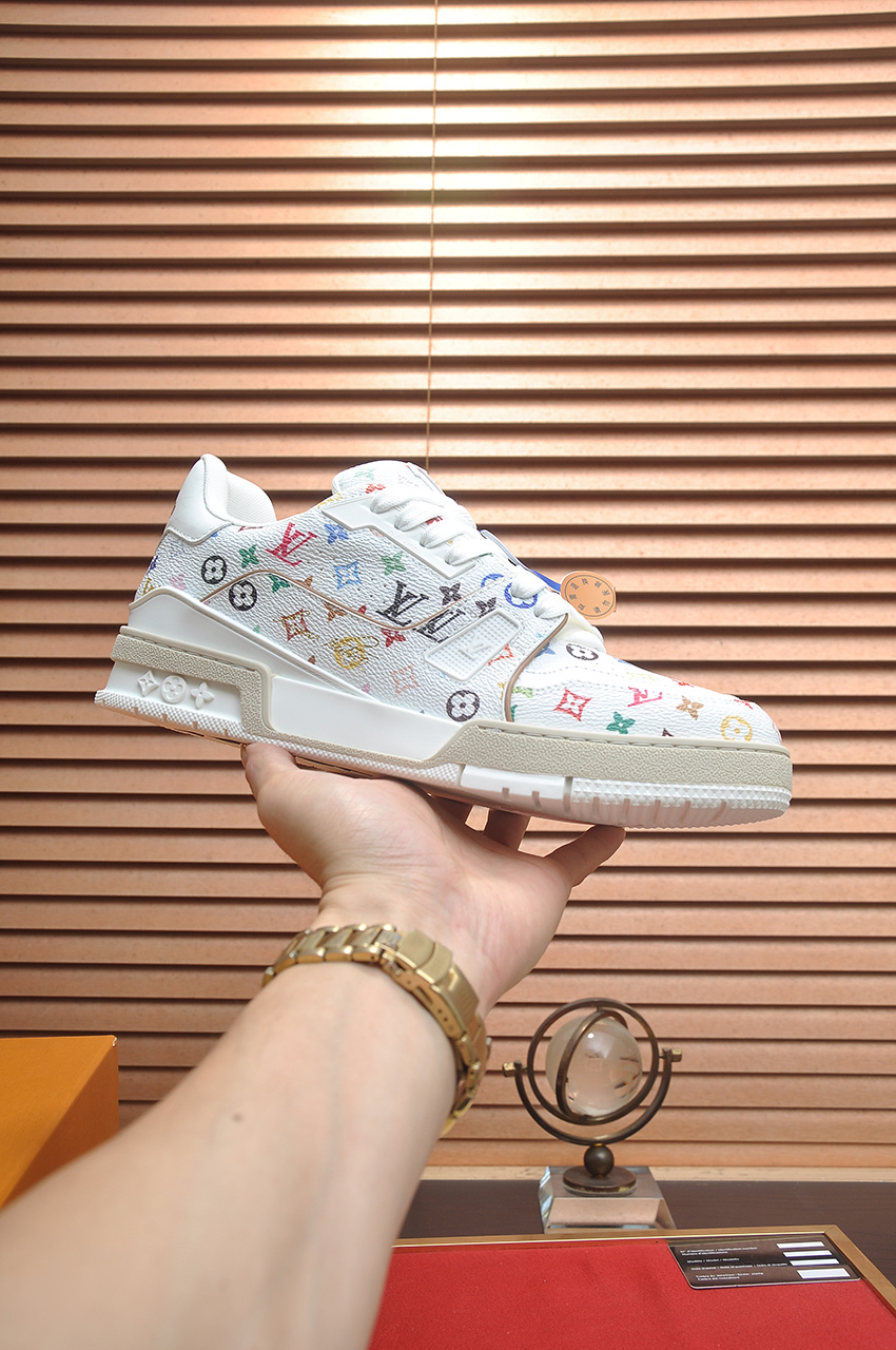 这款鞋子是AAAAA 1:1 质量 (非常棒). 使用了和原版一模一样的材料. 商标部分也保持了和路易威登/Louis Vuitton一样. 图片拍摄是实物鞋子拍摄, 您所收到的实物保证和我们图片一模一样.