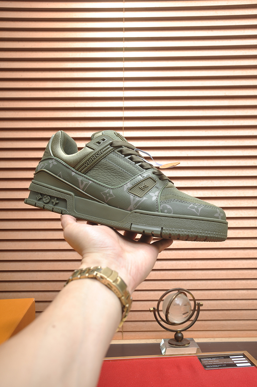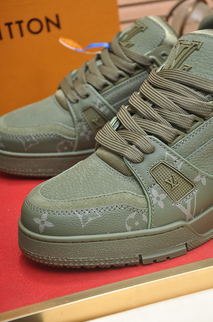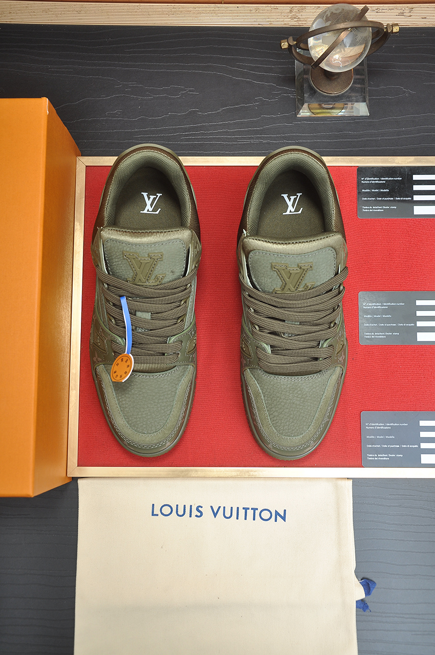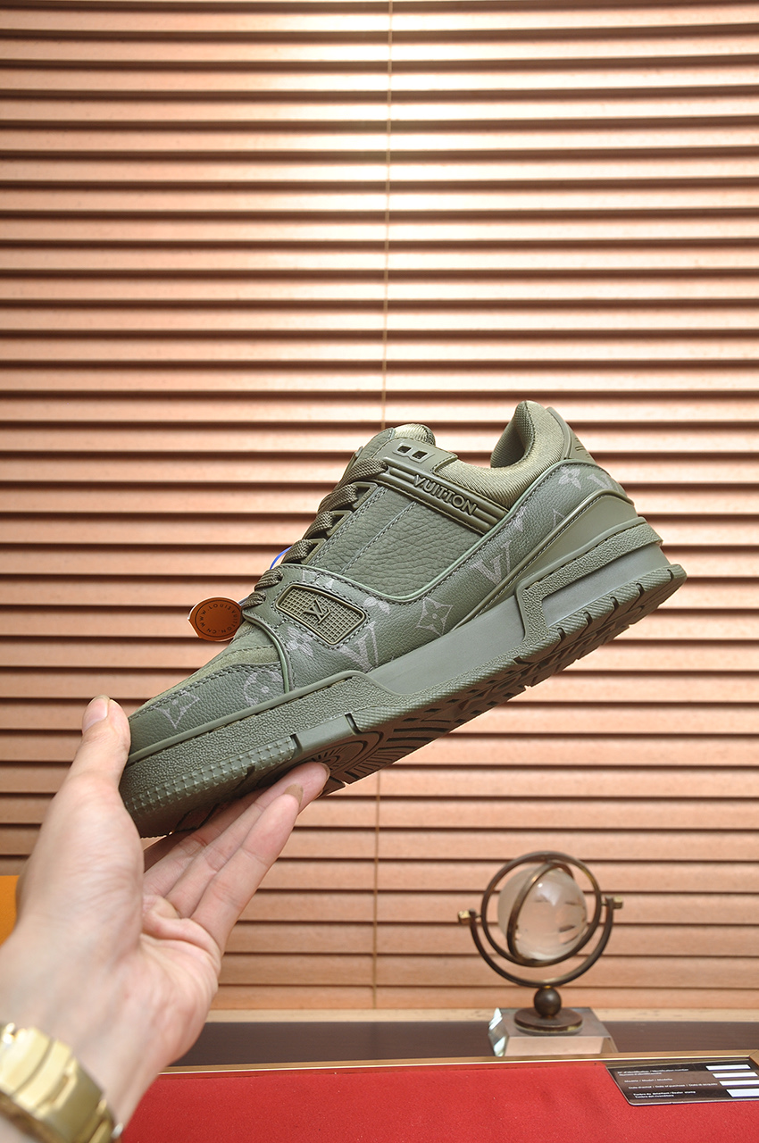 这款鞋子是AAAAA 1:1 质量 (非常棒). 使用了和原版一模一样的材料. 商标部分也保持了和路易威登/Louis Vuitton一样. 图片拍摄是实物鞋子拍摄, 您所收到的实物保证和我们图片一模一样.