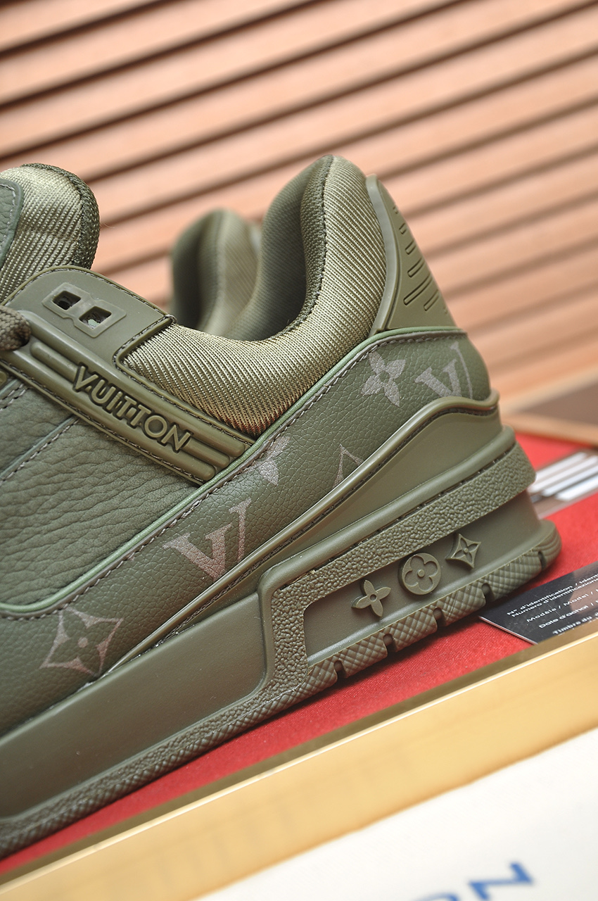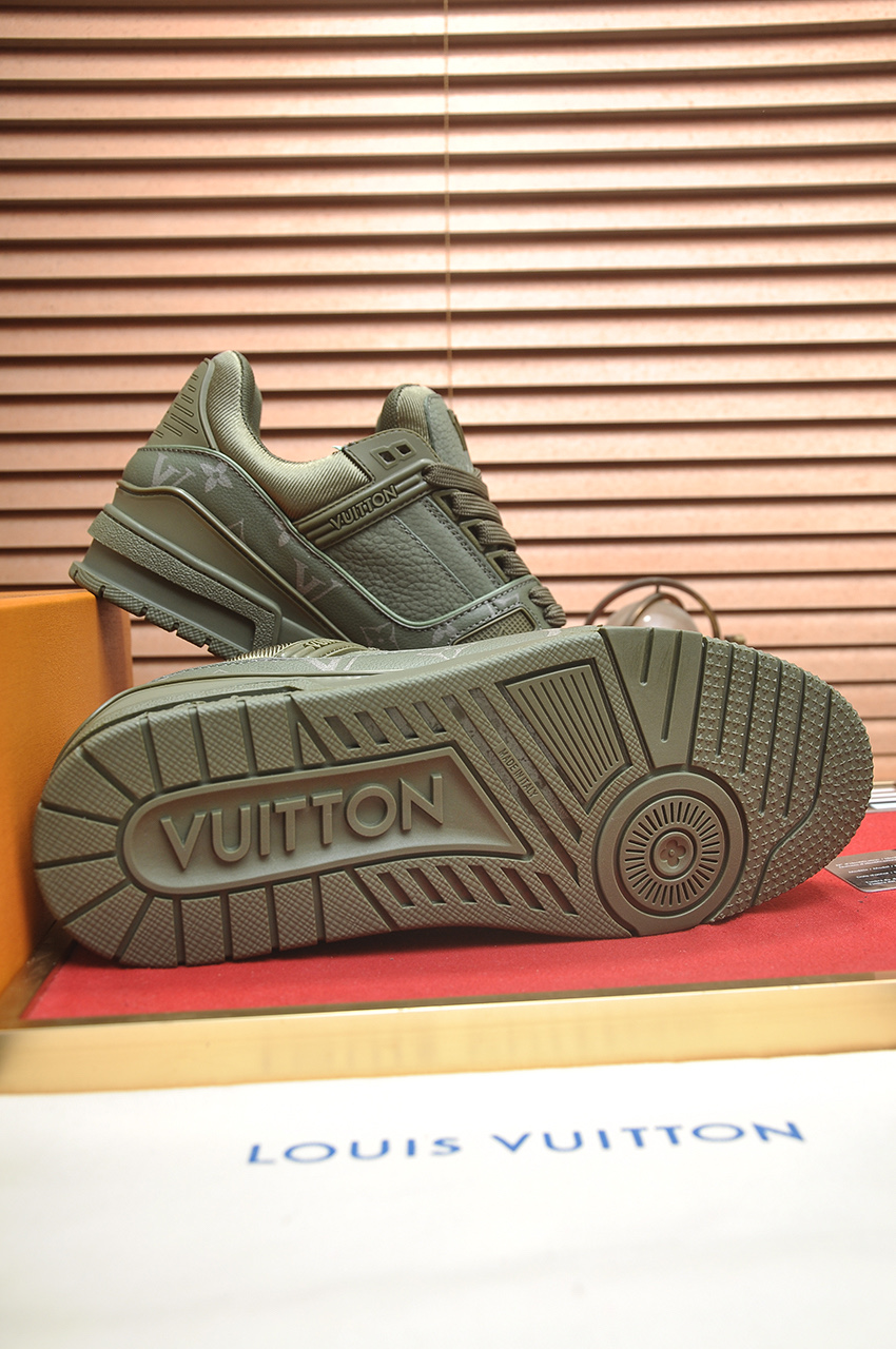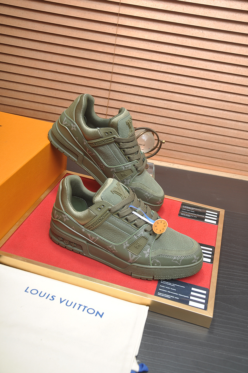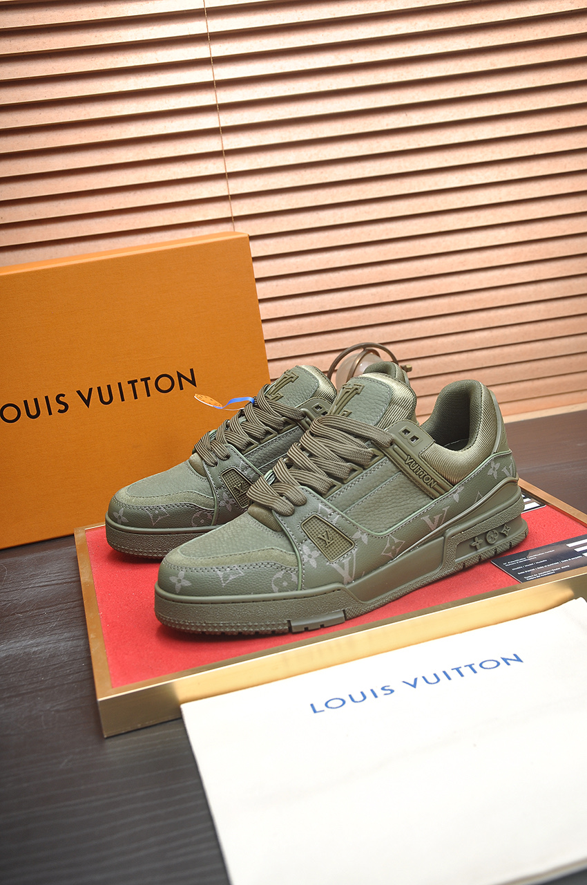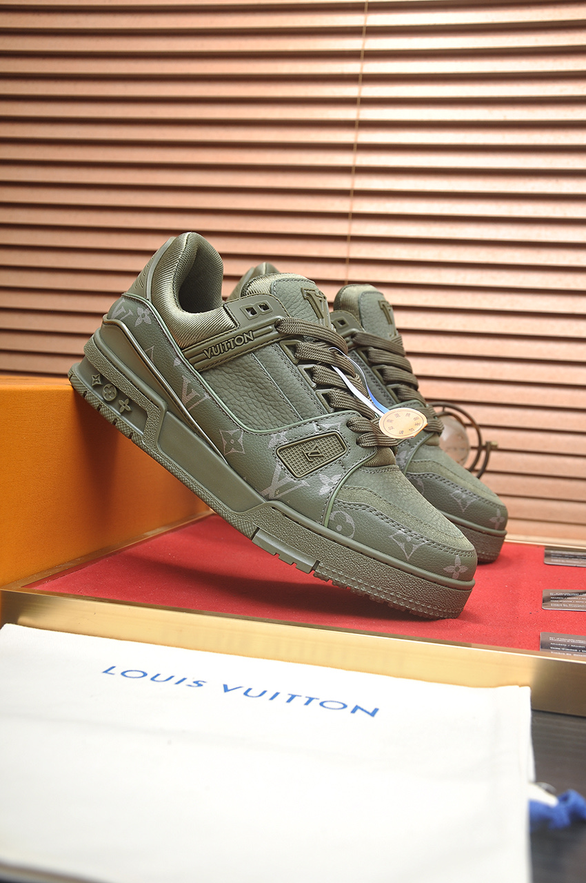 这款鞋子是AAAAA 1:1 质量 (非常棒). 使用了和原版一模一样的材料. 商标部分也保持了和路易威登/Louis Vuitton一样. 图片拍摄是实物鞋子拍摄, 您所收到的实物保证和我们图片一模一样.