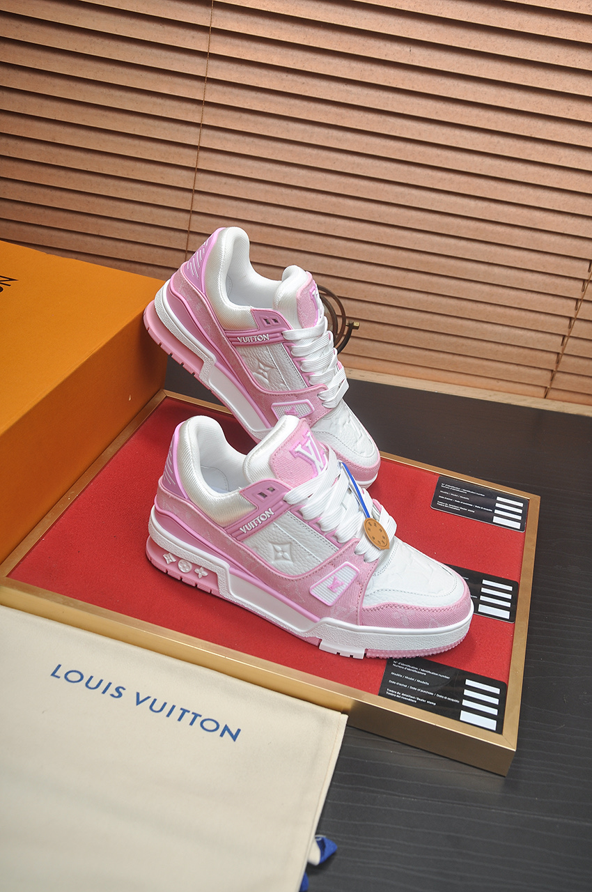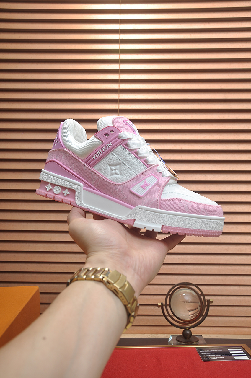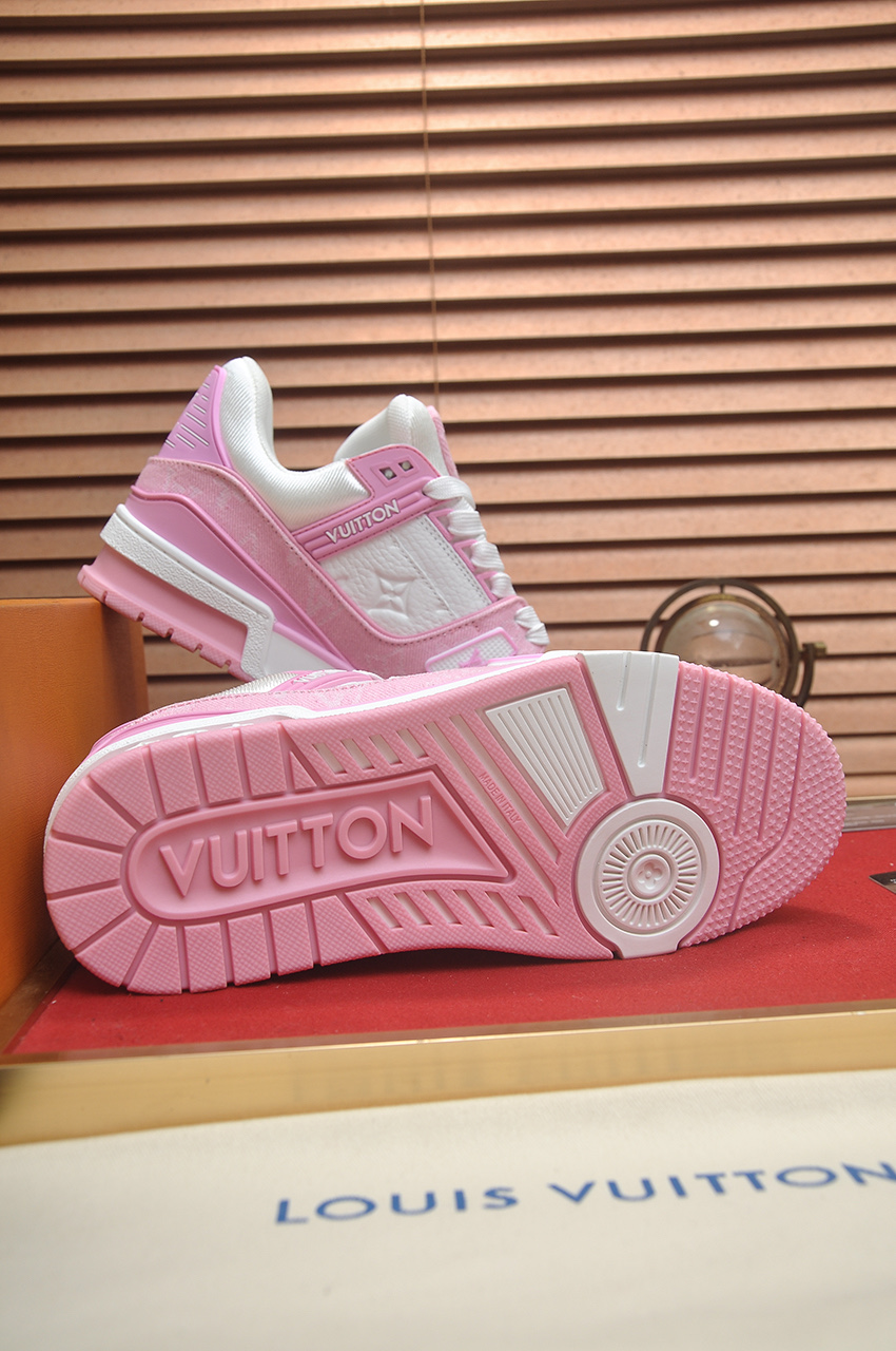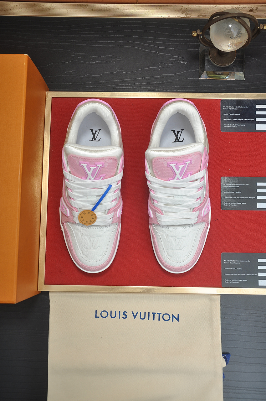 这款鞋子是AAAAA 1:1 质量 (非常棒). 使用了和原版一模一样的材料. 商标部分也保持了和路易威登/Louis Vuitton一样. 图片拍摄是实物鞋子拍摄, 您所收到的实物保证和我们图片一模一样.