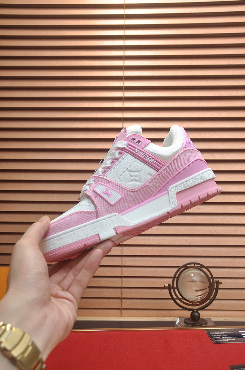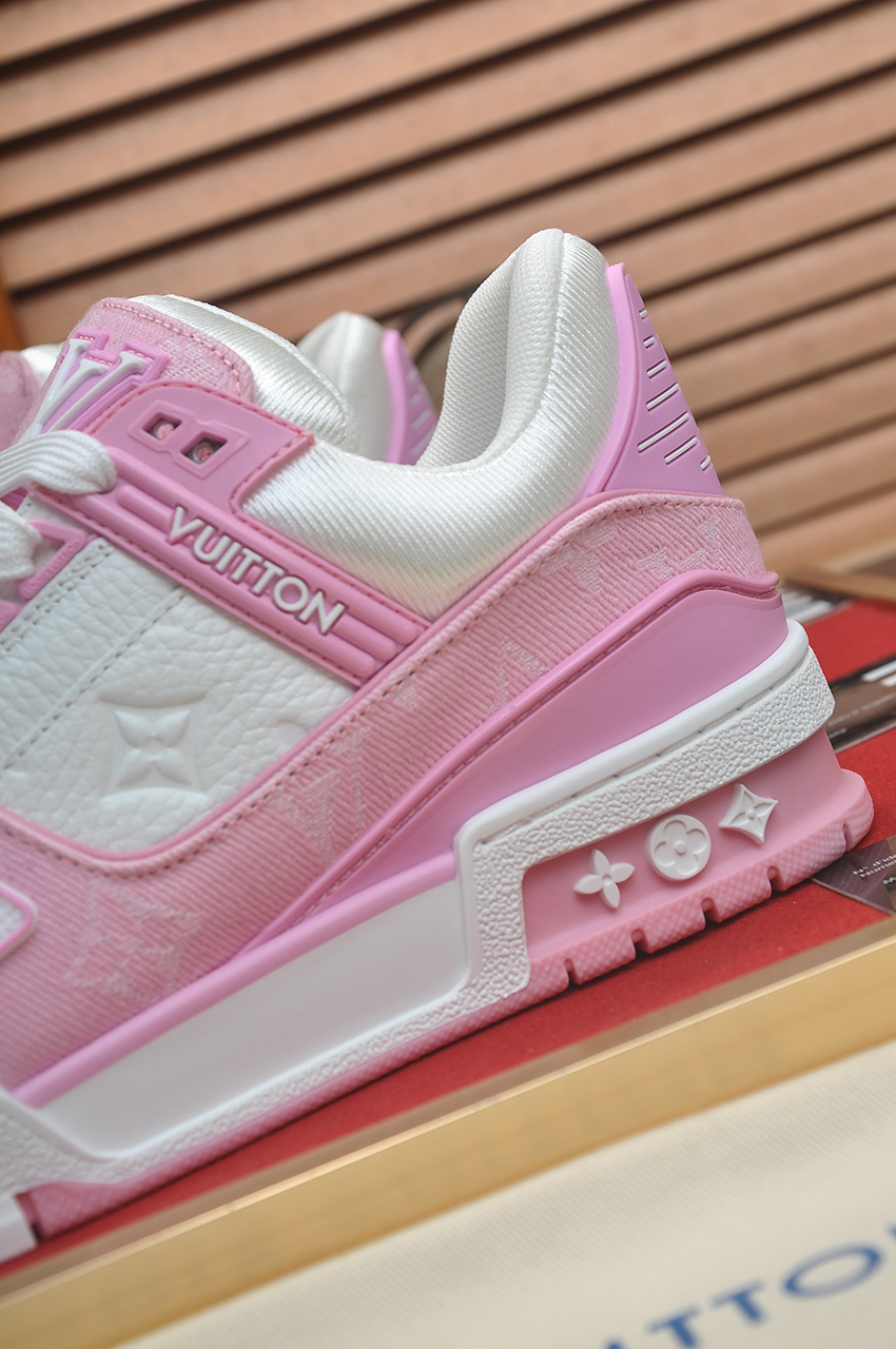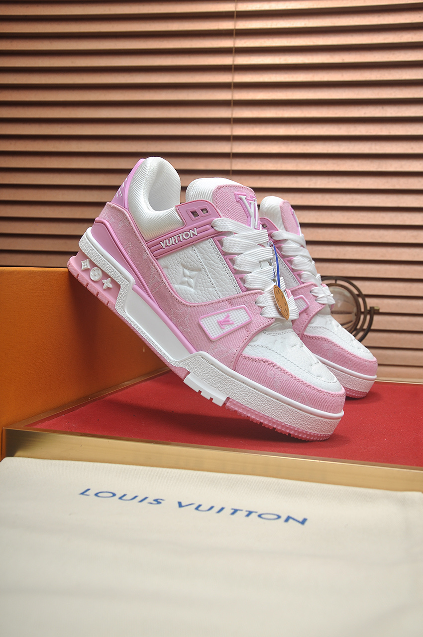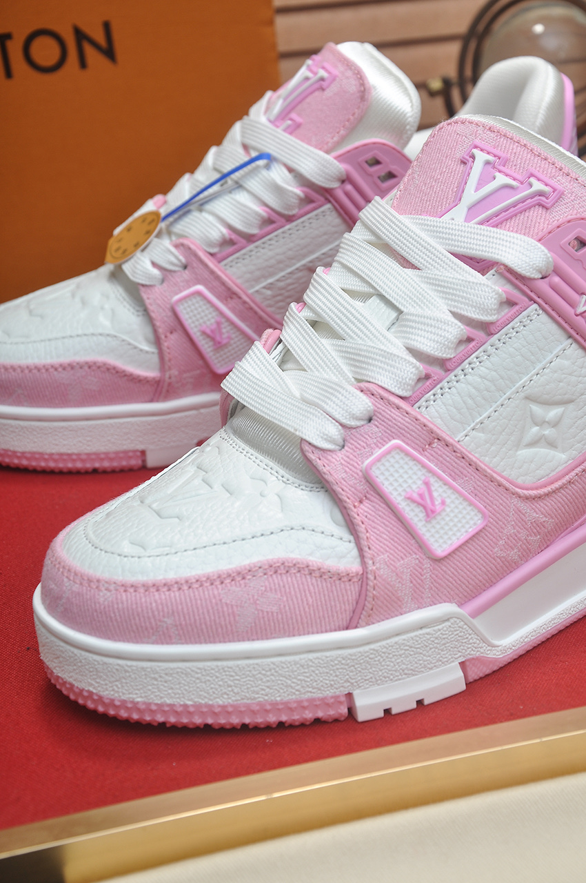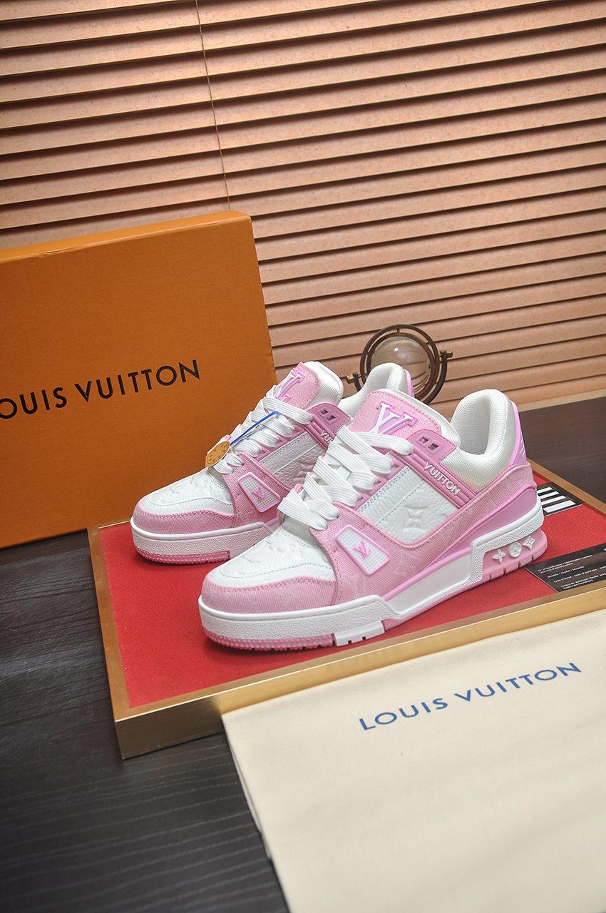 这款鞋子是AAAAA 1:1 质量 (非常棒). 使用了和原版一模一样的材料. 商标部分也保持了和路易威登/Louis Vuitton一样. 图片拍摄是实物鞋子拍摄, 您所收到的实物保证和我们图片一模一样.