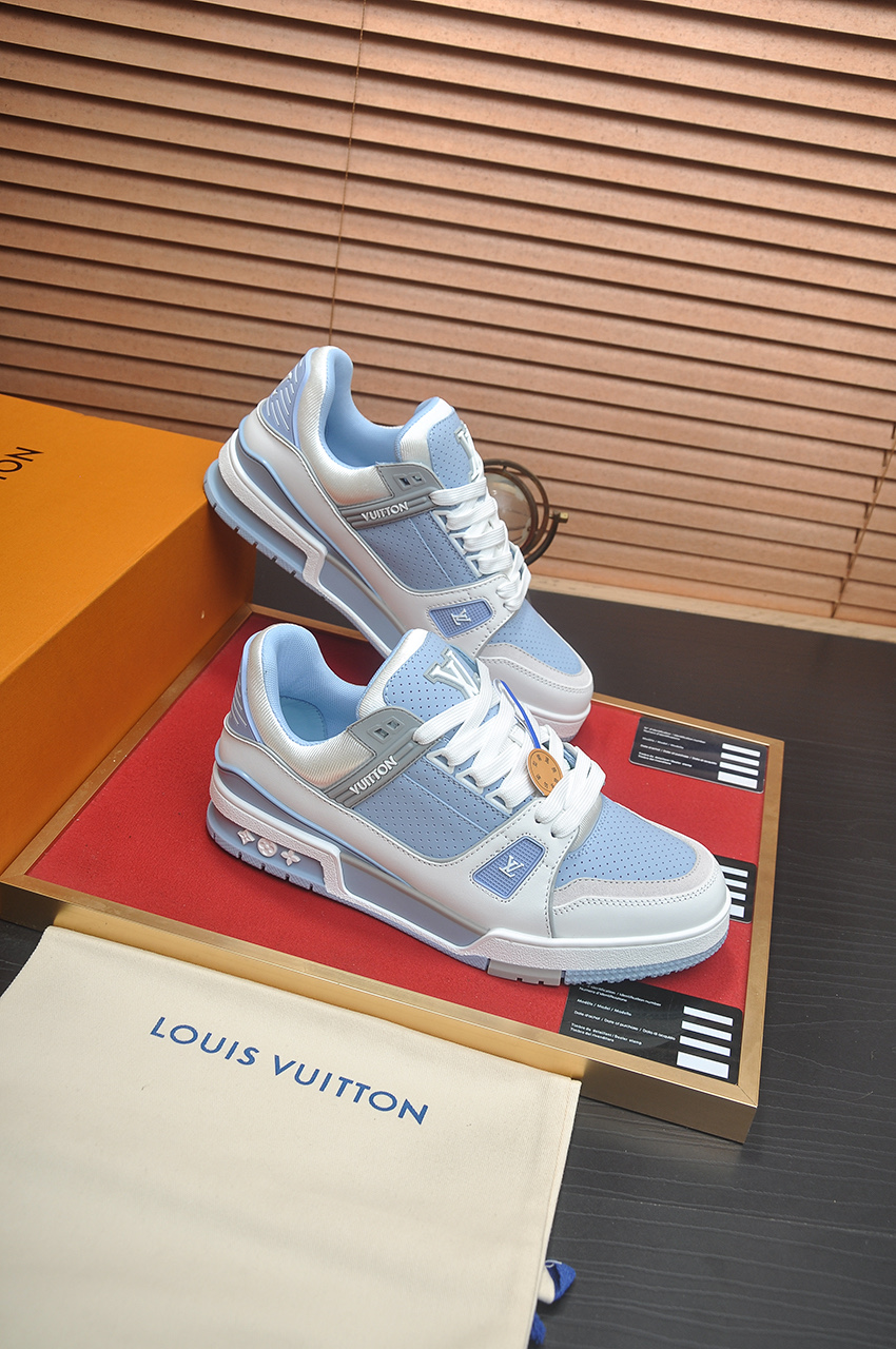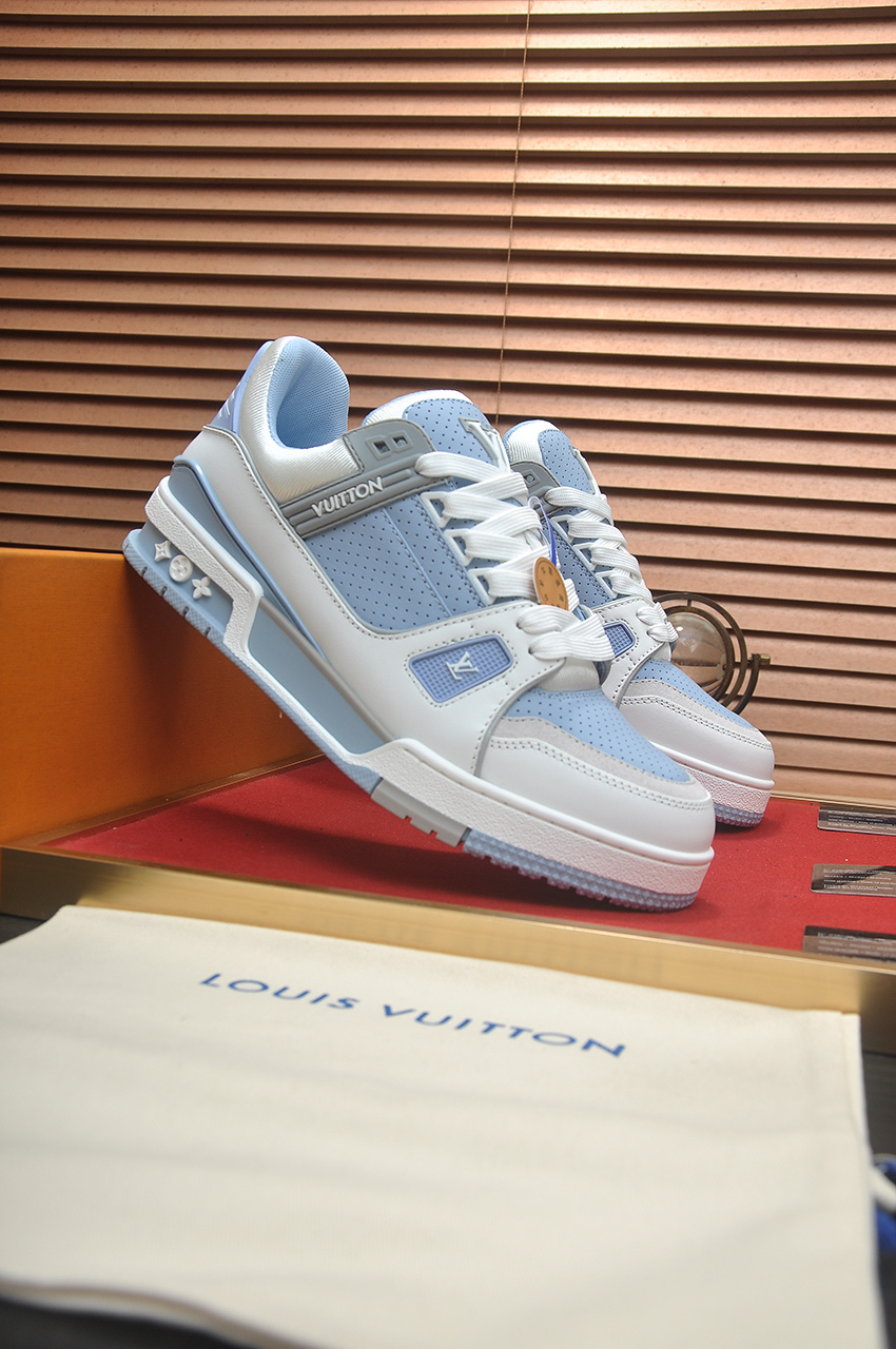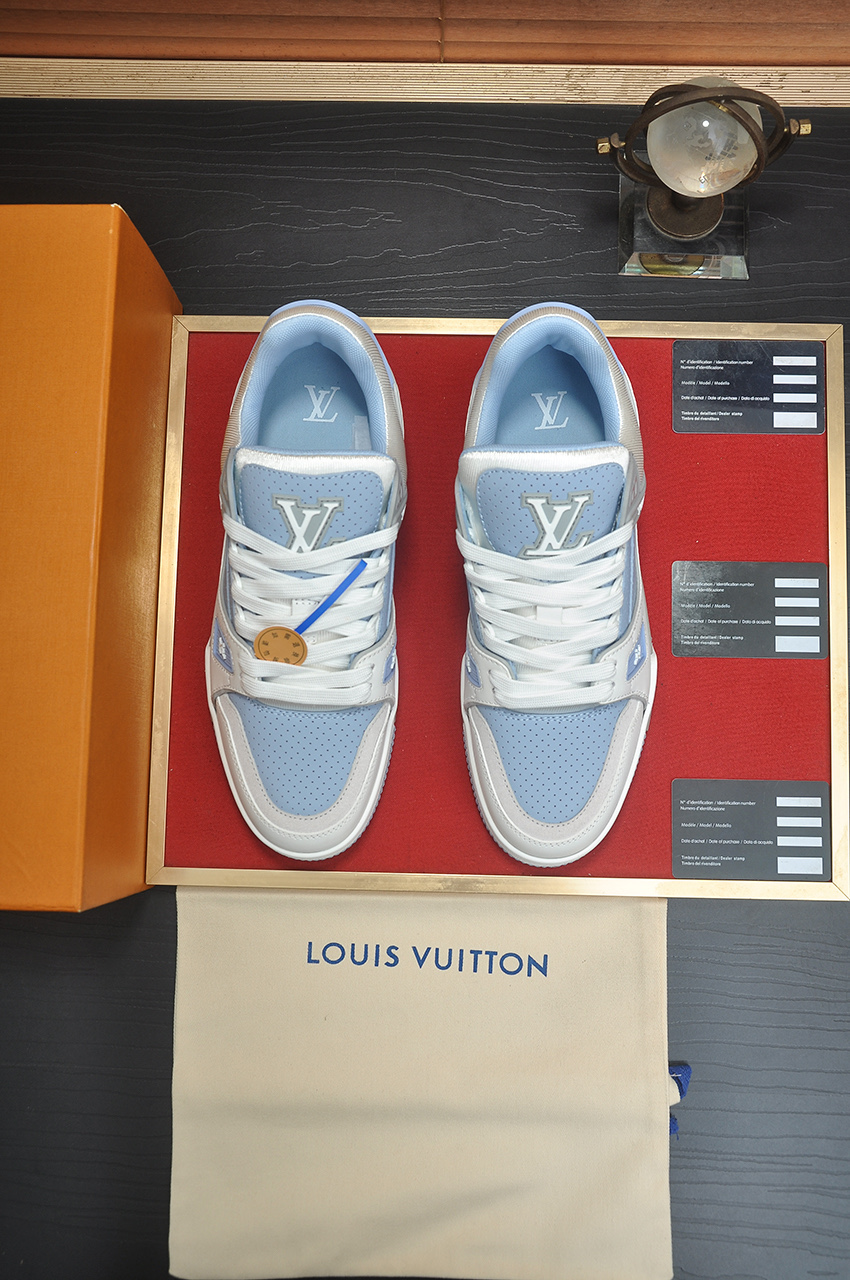 这款鞋子是AAAAA 1:1 质量 (非常棒). 使用了和原版一模一样的材料. 商标部分也保持了和路易威登/Louis Vuitton一样. 图片拍摄是实物鞋子拍摄, 您所收到的实物保证和我们图片一模一样.