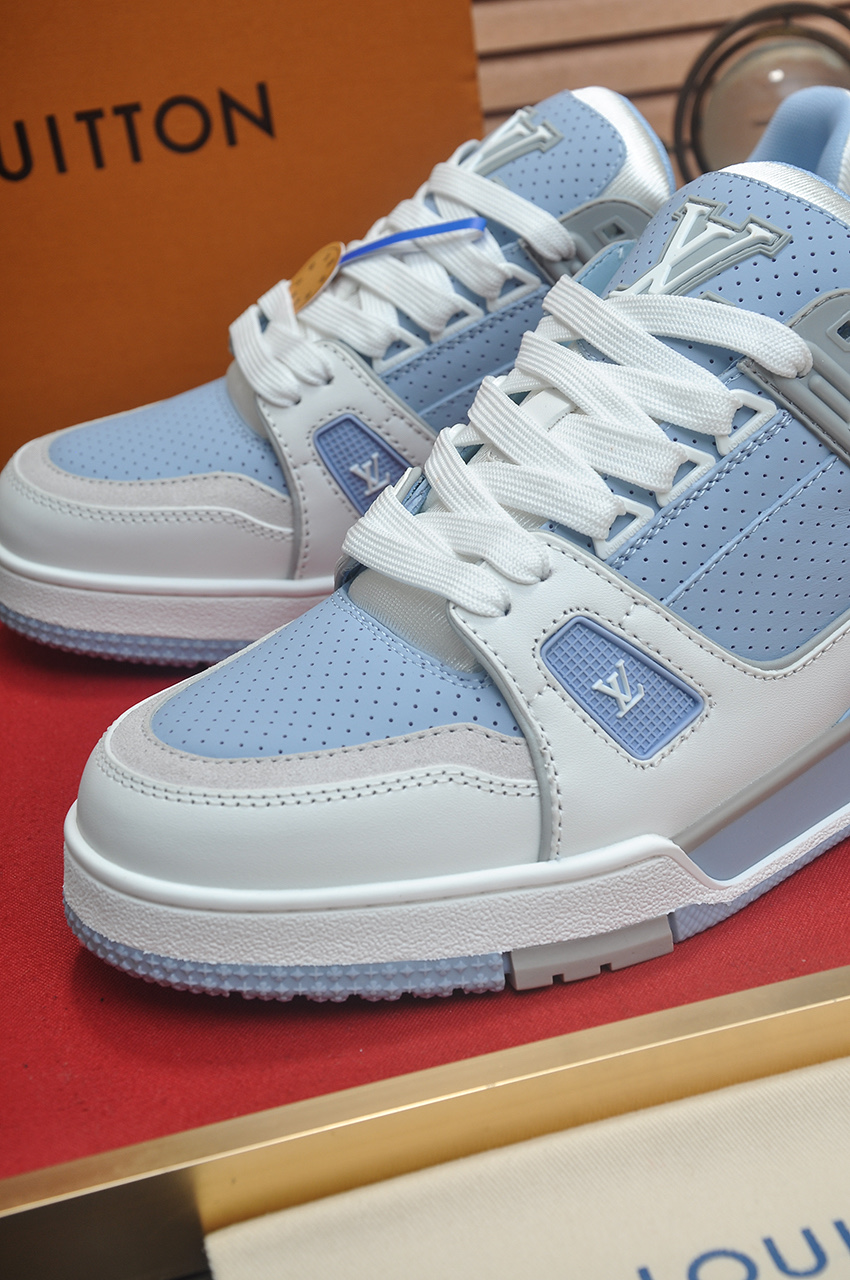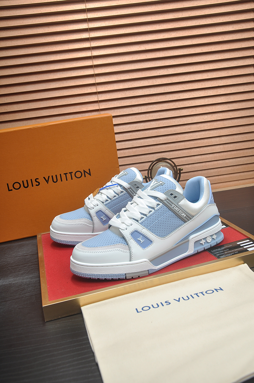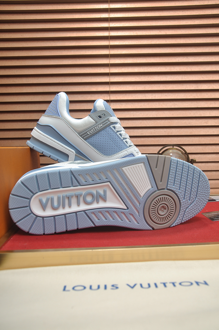 这款鞋子是AAAAA 1:1 质量 (非常棒). 使用了和原版一模一样的材料. 商标部分也保持了和路易威登/Louis Vuitton一样. 图片拍摄是实物鞋子拍摄, 您所收到的实物保证和我们图片一模一样.
