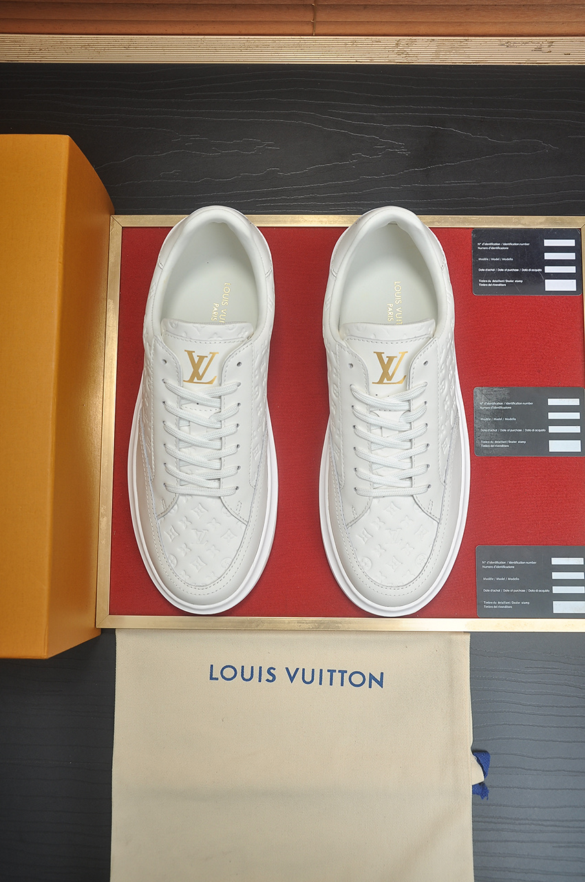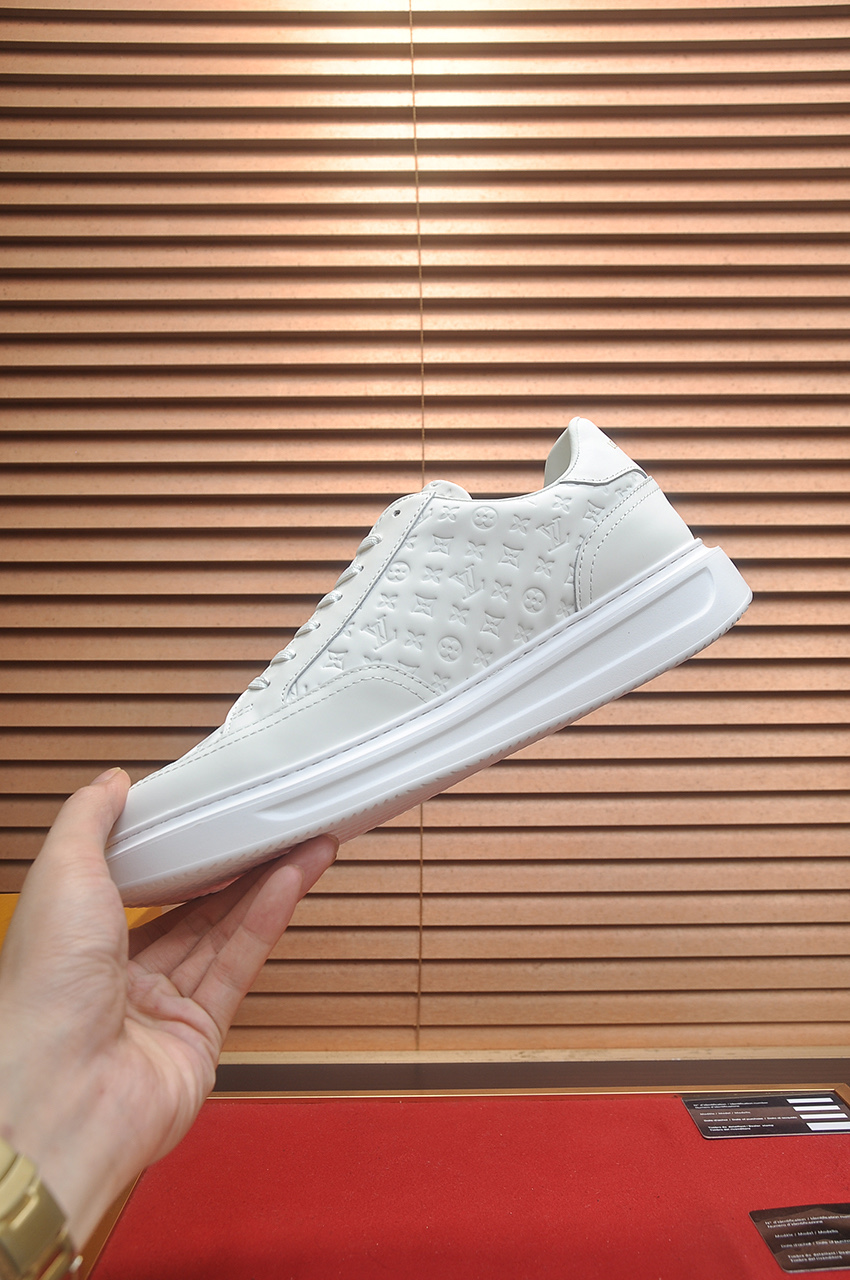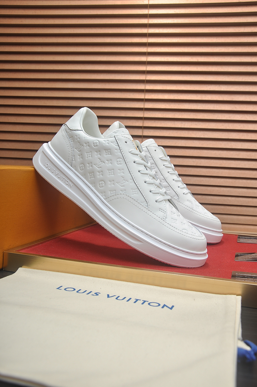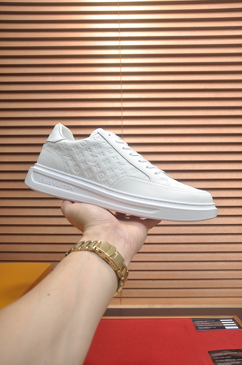 这款鞋子是AAAAA 1:1 质量 (非常棒). 使用了和原版一模一样的材料. 商标部分也保持了和路易威登/Louis Vuitton一样. 图片拍摄是实物鞋子拍摄, 您所收到的实物保证和我们图片一模一样.