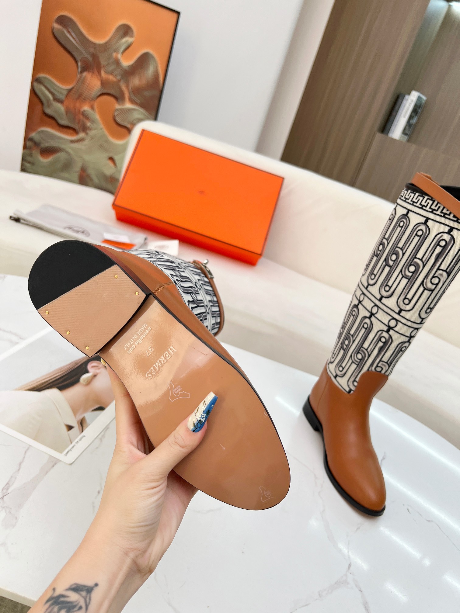 这款鞋子是AAAAA 1:1 质量 (非常棒). 使用了和原版一模一样的材料. 商标部分也保持了和爱马仕/Hermes一样. 图片拍摄是实物鞋子拍摄, 您所收到的实物保证和我们图片一模一样.