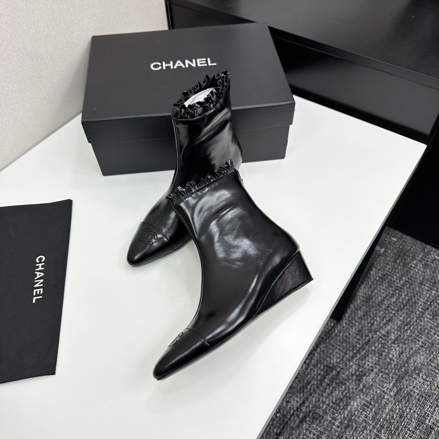 这款鞋子是AAAAA 1:1 质量 (非常棒). 使用了和原版一模一样的材料. 商标部分也保持了和香奈儿/Chanel一样. 图片拍摄是实物鞋子拍摄, 您所收到的实物保证和我们图片一模一样.