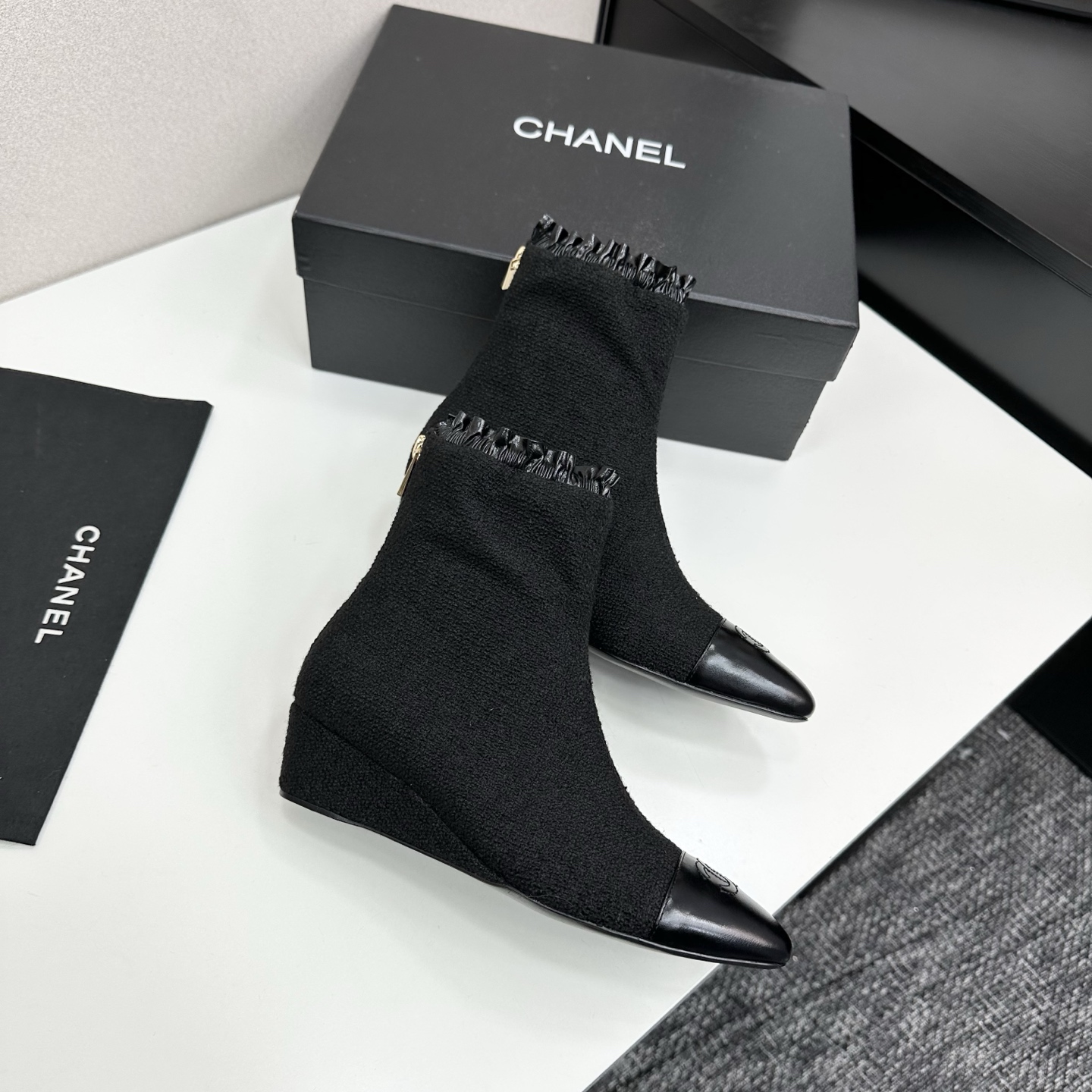 这款鞋子是AAAAA 1:1 质量 (非常棒). 使用了和原版一模一样的材料. 商标部分也保持了和香奈儿/Chanel一样. 图片拍摄是实物鞋子拍摄, 您所收到的实物保证和我们图片一模一样.