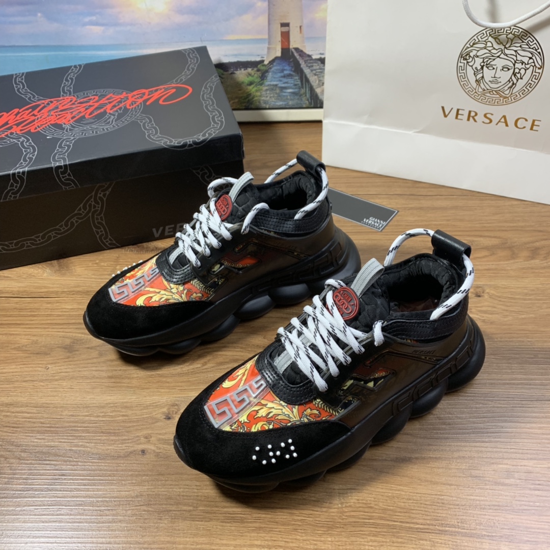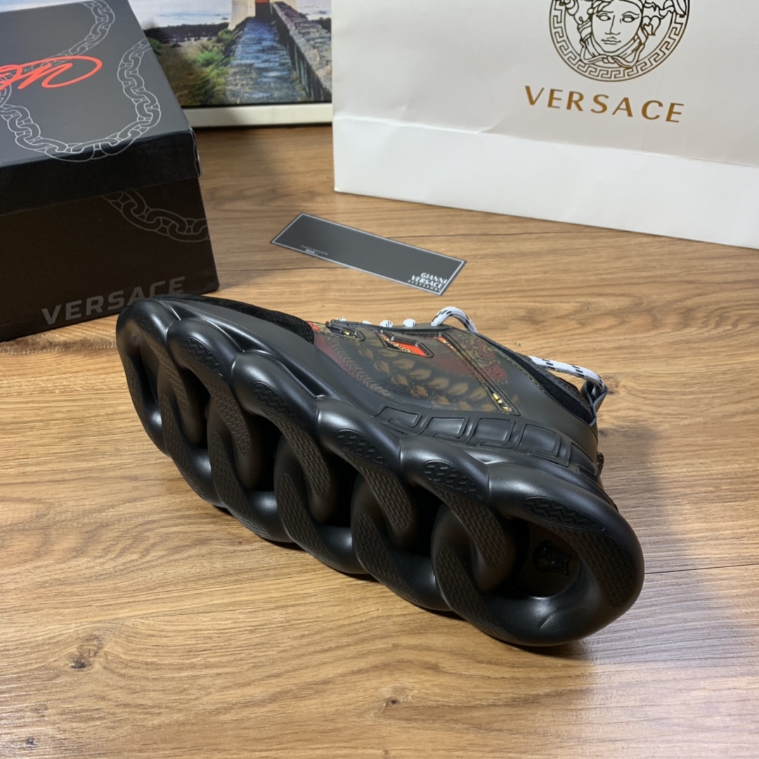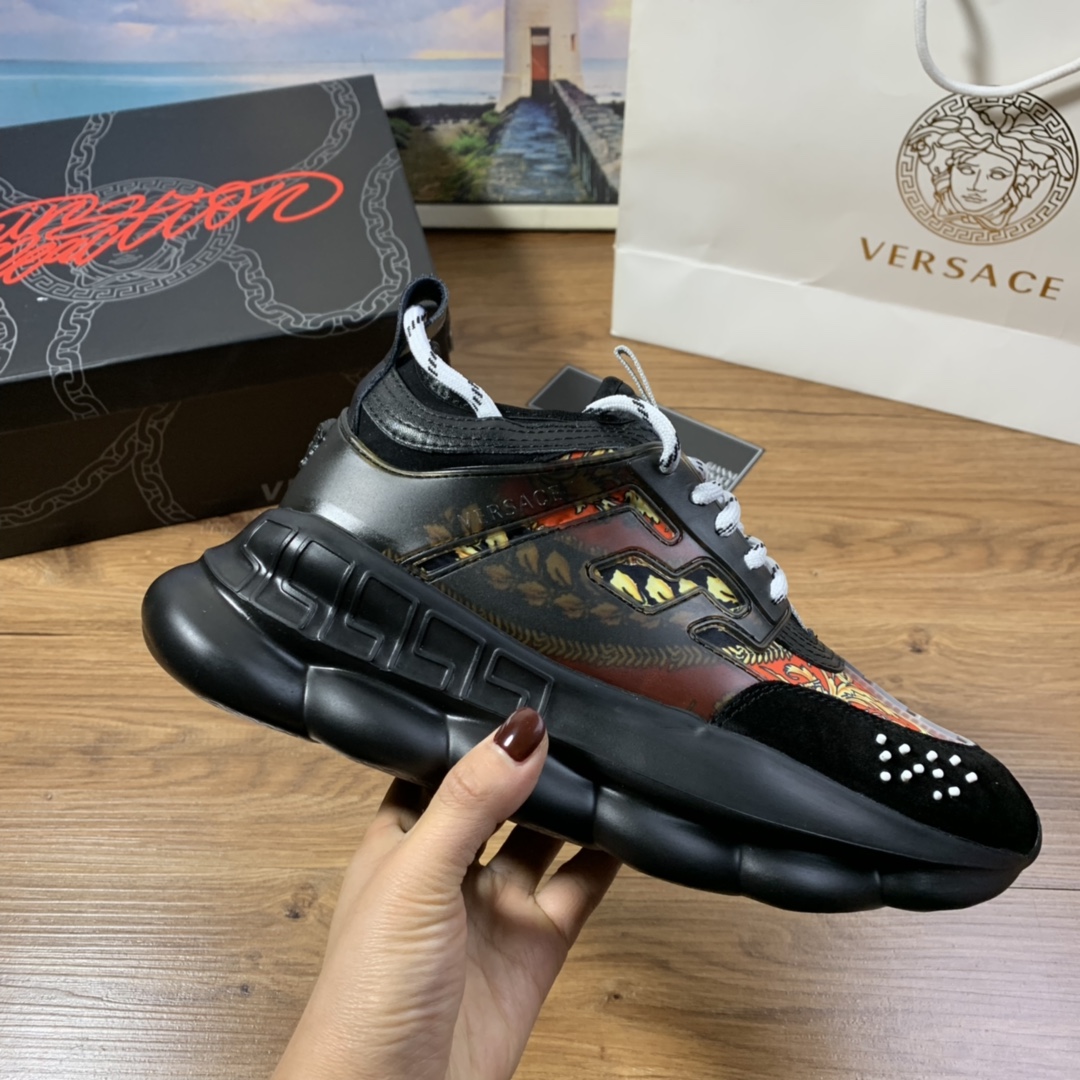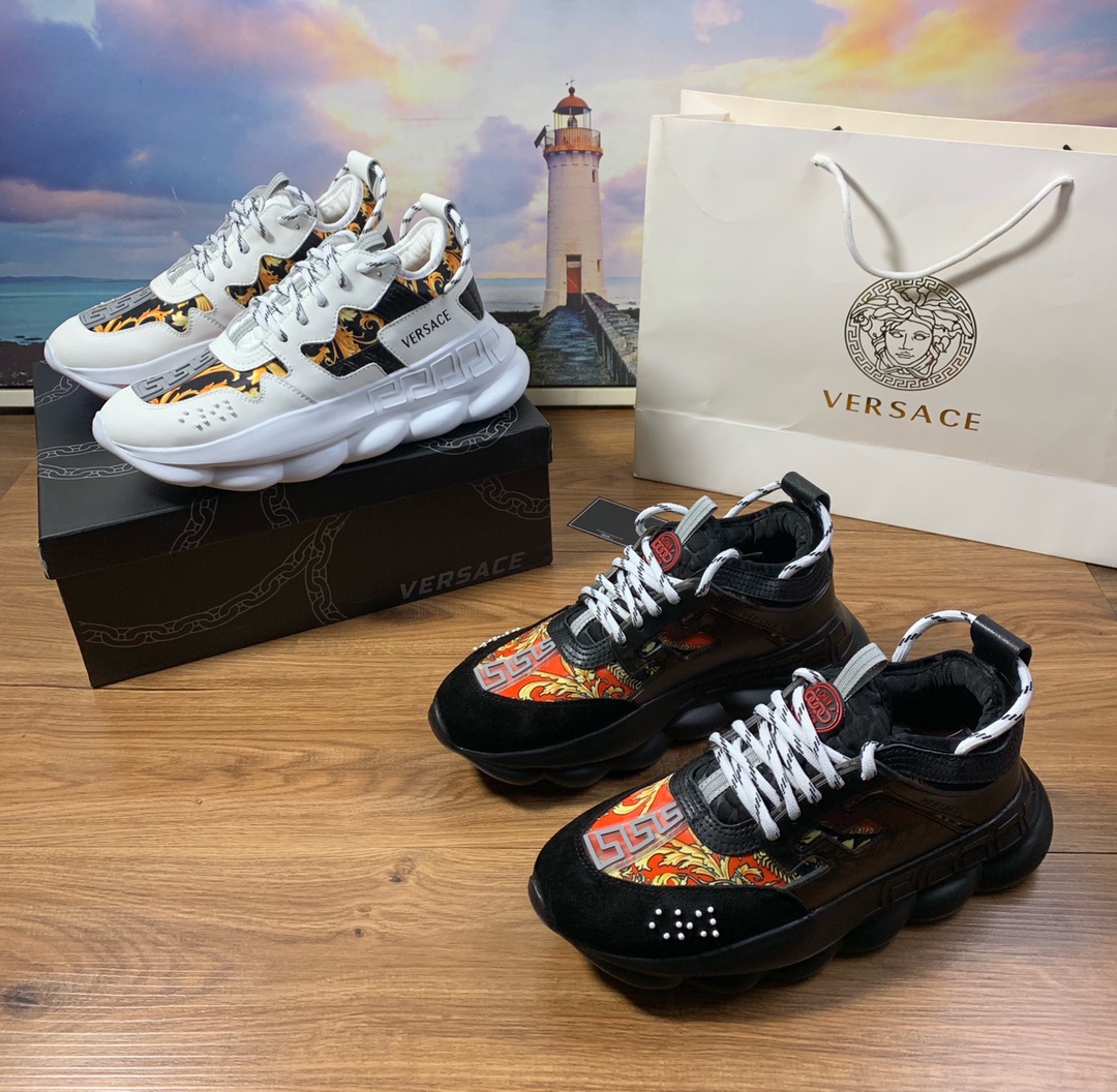 这款鞋子是AAAAA 1:1 质量 (非常棒). 使用了和原版一模一样的材料. 商标部分也保持了和范思哲/Versace一样. 图片拍摄是实物鞋子拍摄, 您所收到的实物保证和我们图片一模一样.