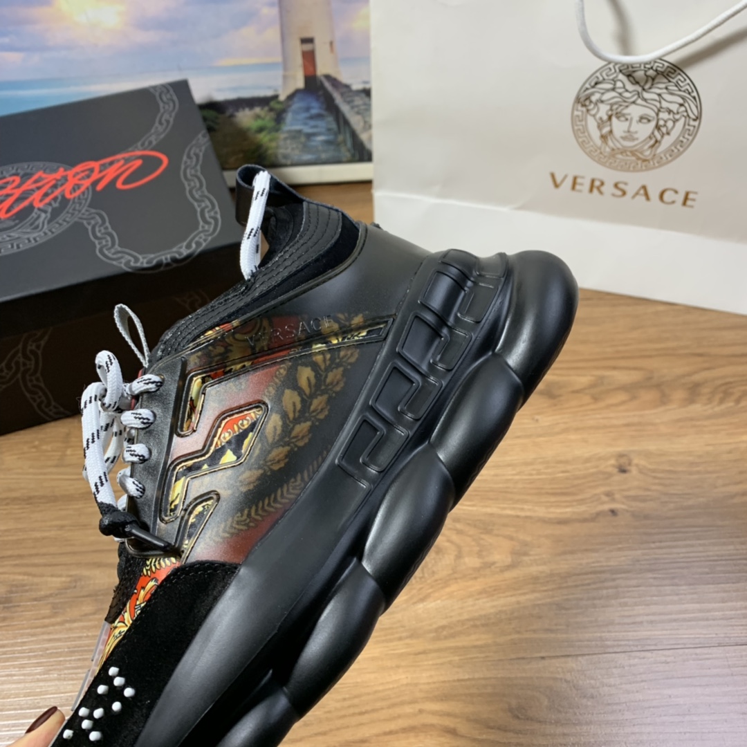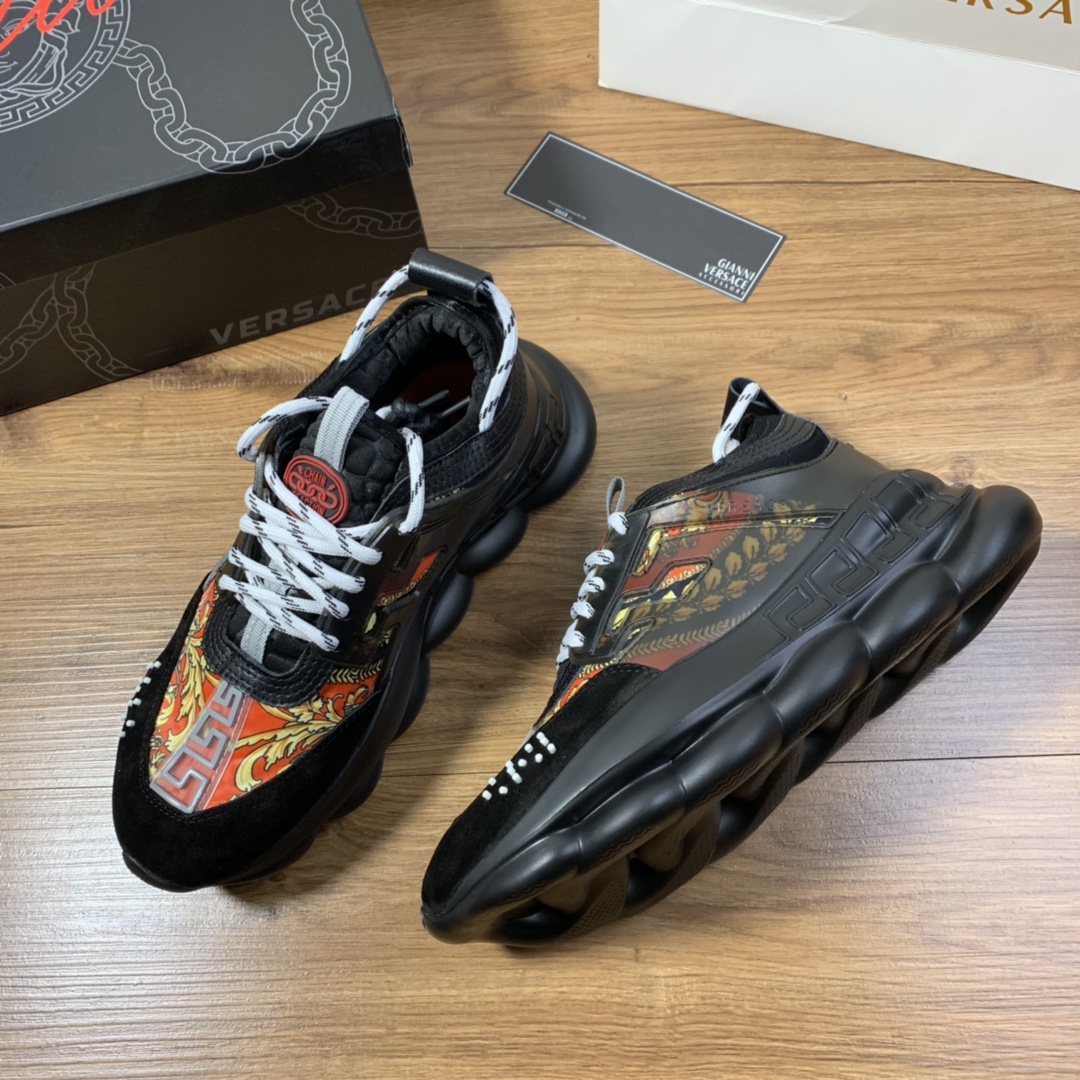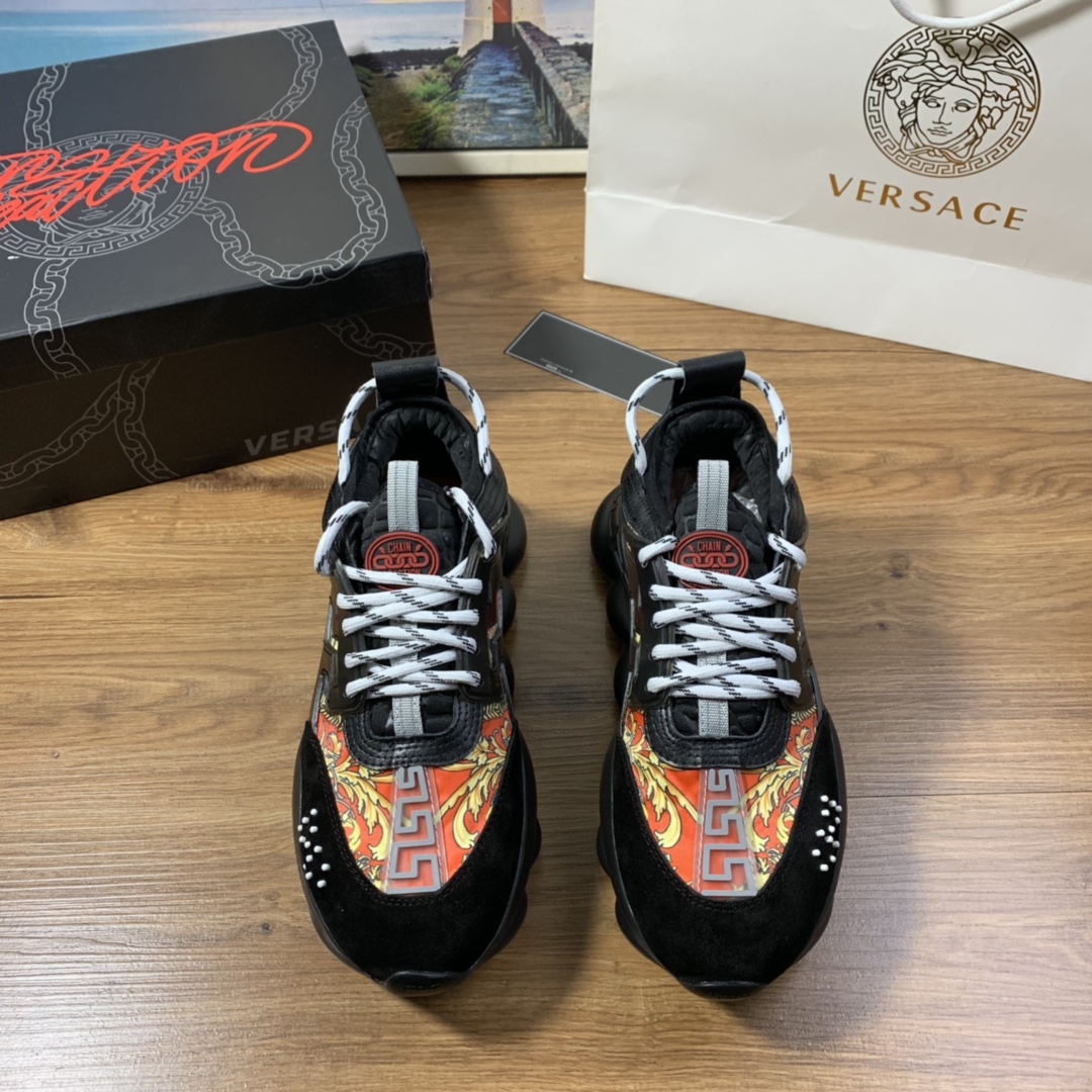 这款鞋子是AAAAA 1:1 质量 (非常棒). 使用了和原版一模一样的材料. 商标部分也保持了和范思哲/Versace一样. 图片拍摄是实物鞋子拍摄, 您所收到的实物保证和我们图片一模一样.