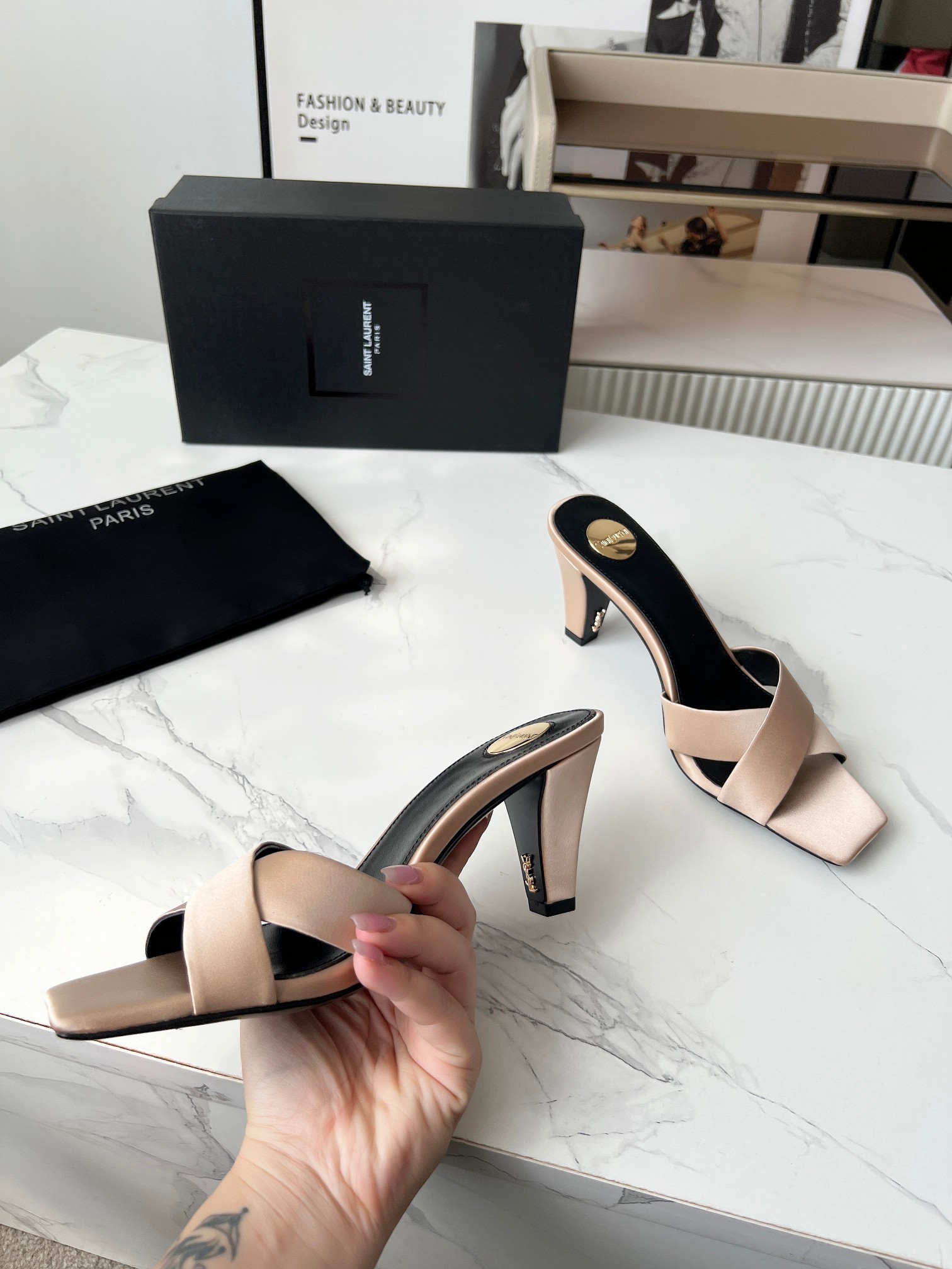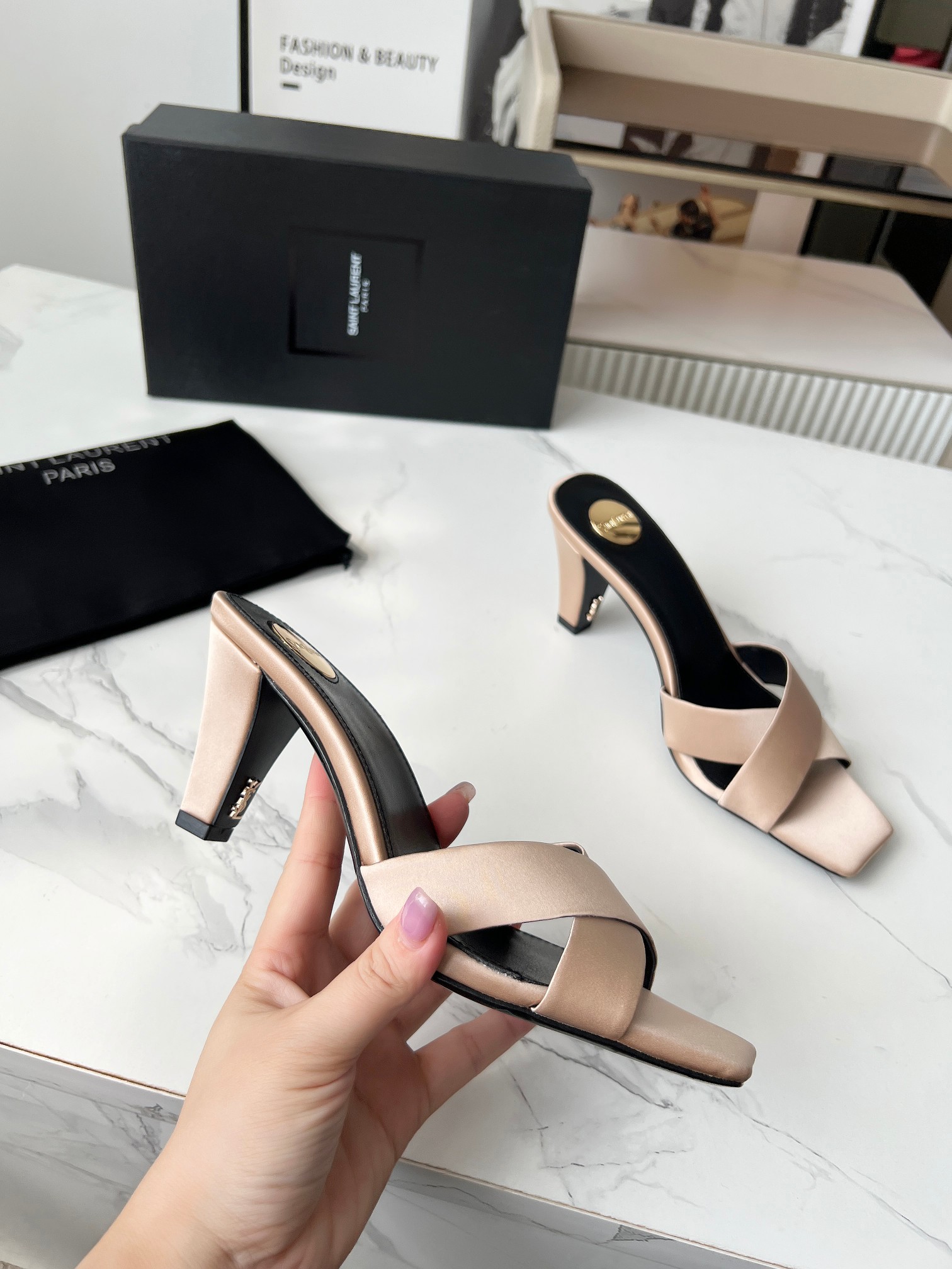 这款鞋子是AAAAA 1:1 质量 (非常棒). 使用了和原版一模一样的材料. 商标部分也保持了和圣罗兰/Saint Laurent一样. 图片拍摄是实物鞋子拍摄, 您所收到的实物保证和我们图片一模一样.