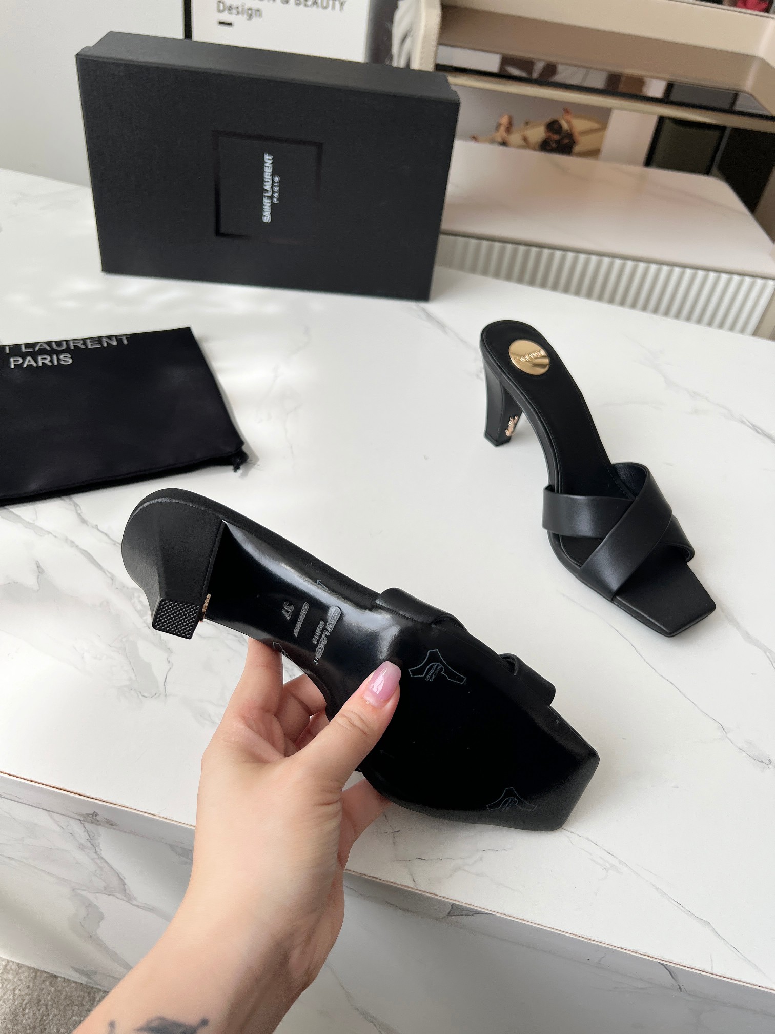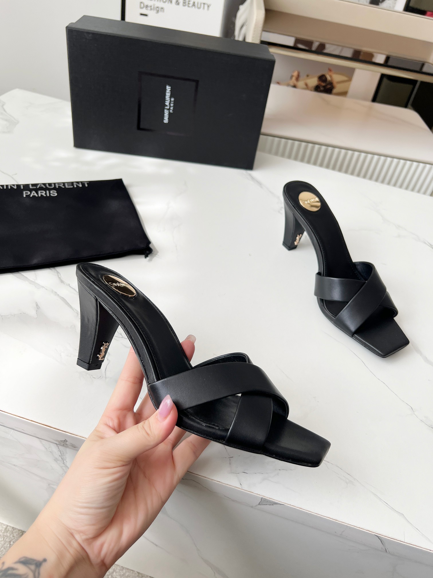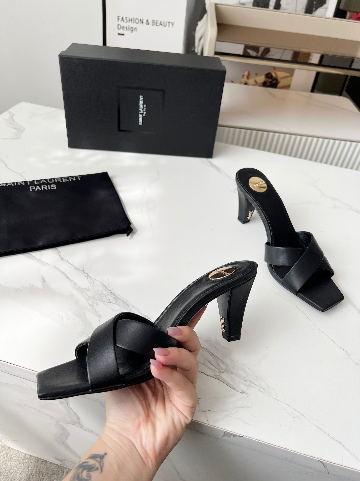 这款鞋子是AAAAA 1:1 质量 (非常棒). 使用了和原版一模一样的材料. 商标部分也保持了和圣罗兰/Saint Laurent一样. 图片拍摄是实物鞋子拍摄, 您所收到的实物保证和我们图片一模一样.