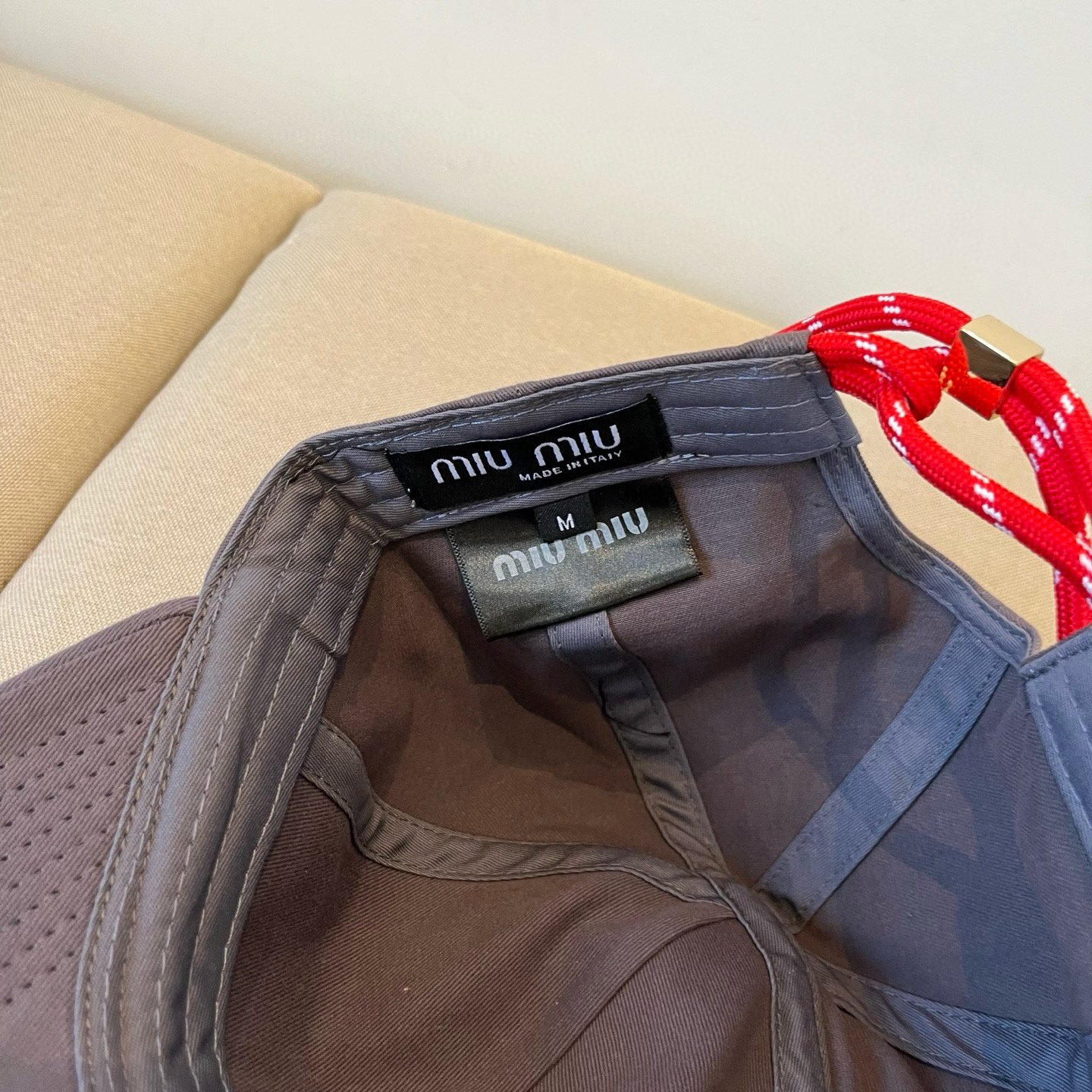 这款帽子是AAAAA 1:1 质量 (非常棒). 使用了和原版一模一样的材料. 商标部分也保持了和缪缪/Miu Miu一样. 图片拍摄是实物帽子拍摄, 您所收到的实物保证和我们图片一模一样.